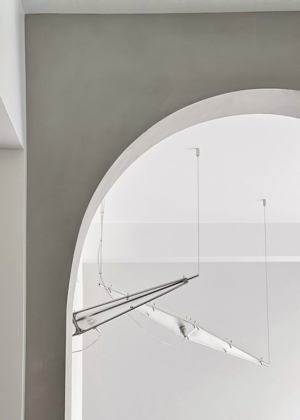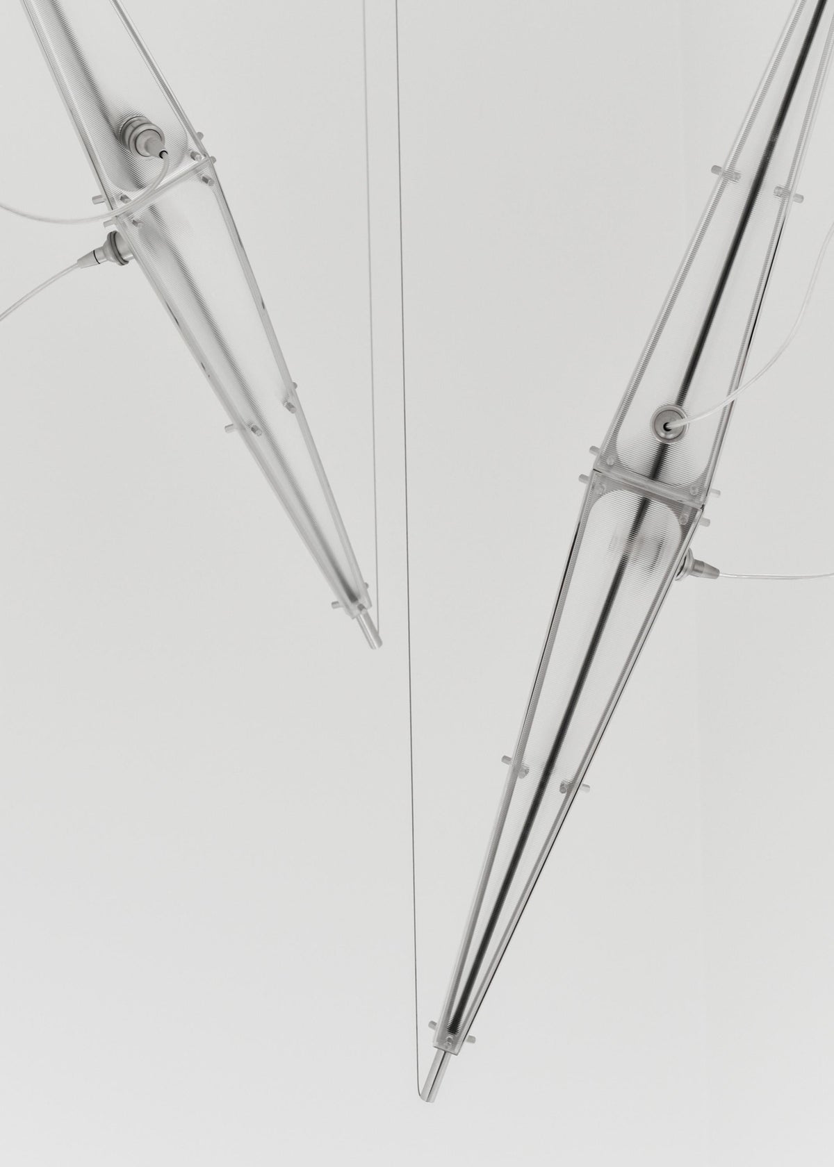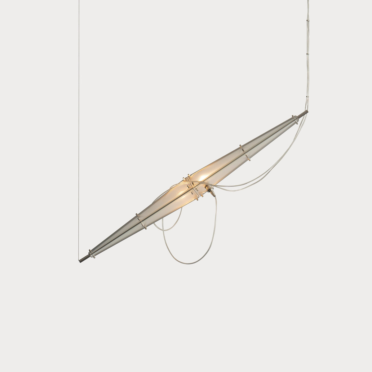 - Discover the perfect fusion of classical elegance and modern innovation with the Fragment #01/02 Pendant Light. Inspired by the interplay between timeless architectural forms and futuristic design, this pendant light redefines sophistication. Its structure is crafted from premium stainless steel, meticulously folded into an elongated cone that exudes tension and dynamism.