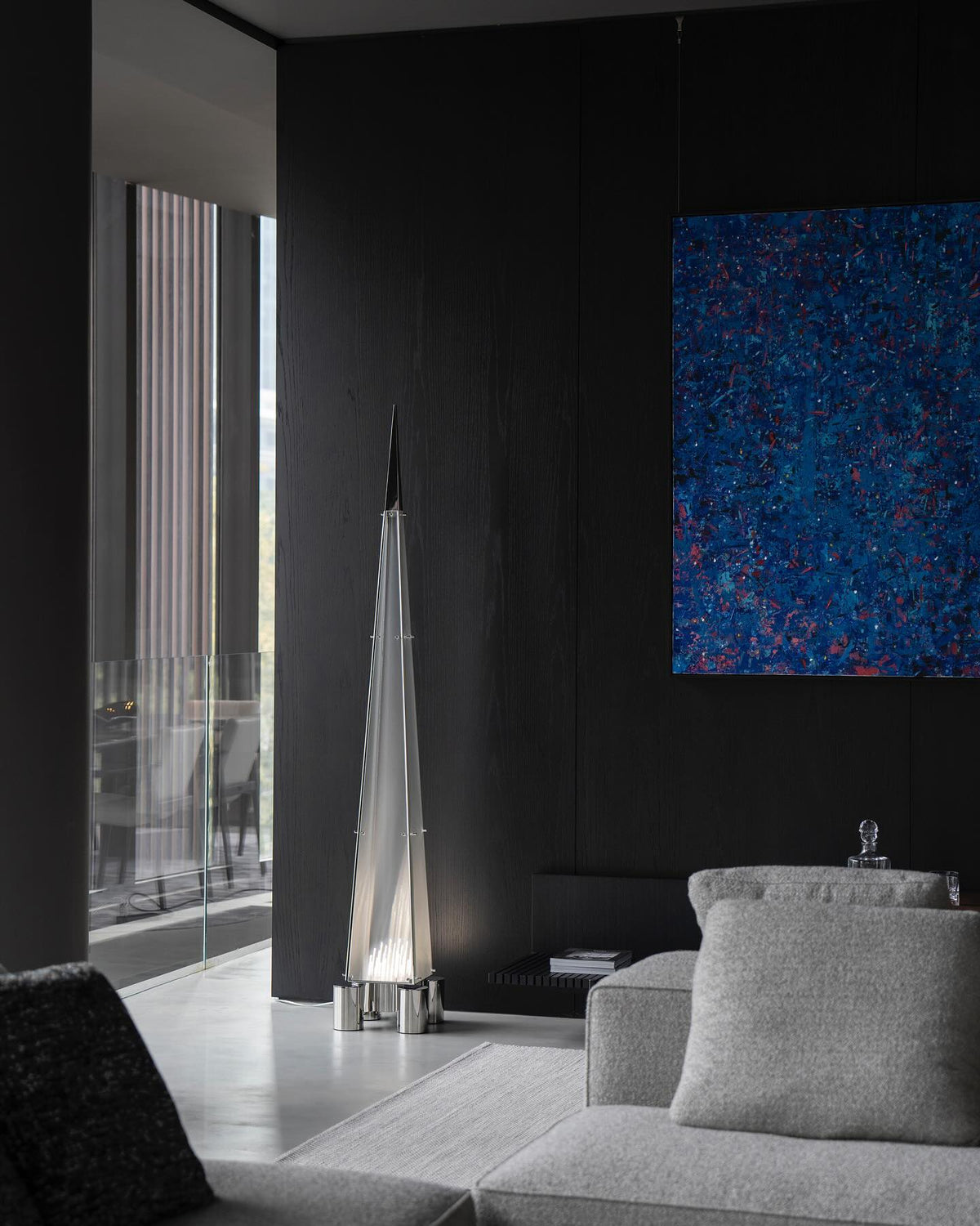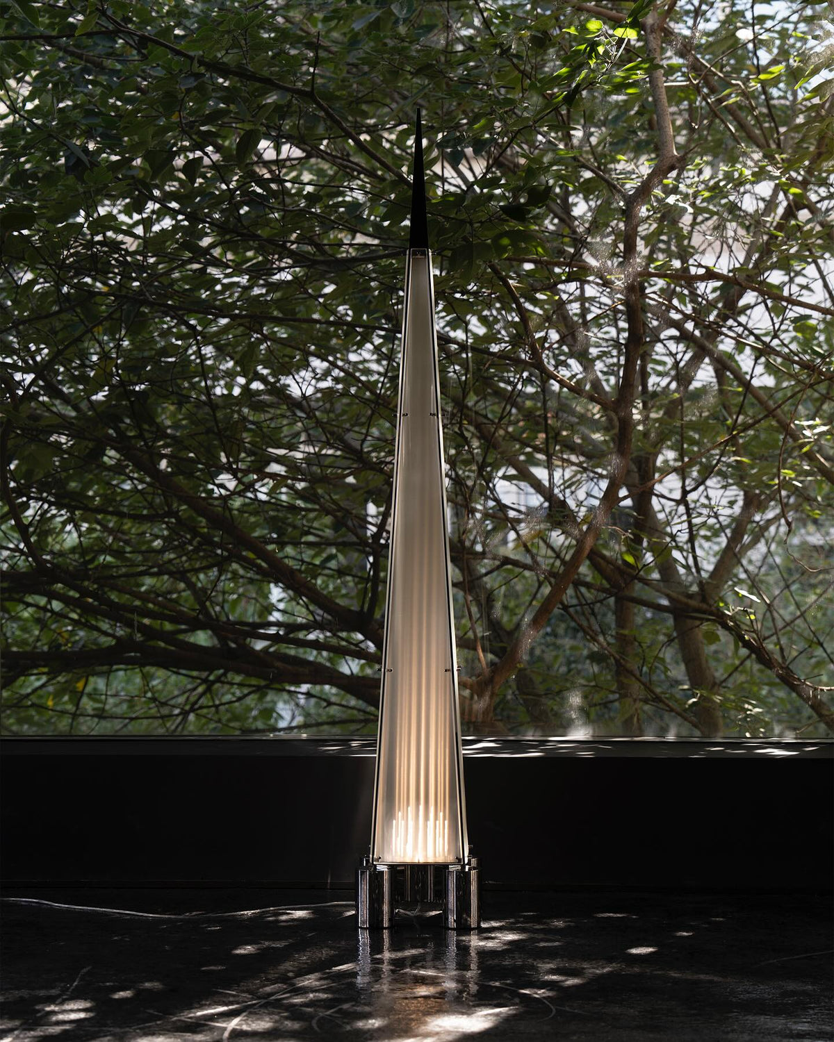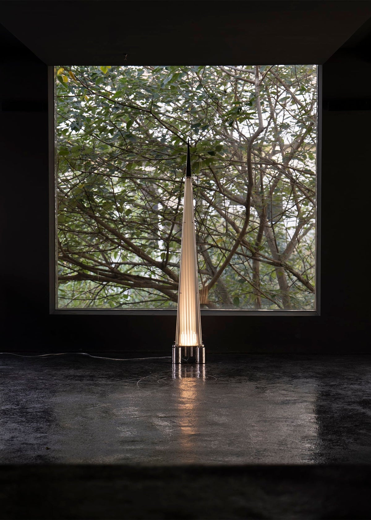 - With its vertical development of light and form, the Fragment #03 exudes a sense of sublime distance, standing in stark contrast to gentleness. It embodies a tension and precision akin to a string balanced on the edge of a hair, showcasing characteristics that softness cannot achieve. This floor lamp is not just a functional piece but a sculptural statement, a testament to the power of sensibility and design.