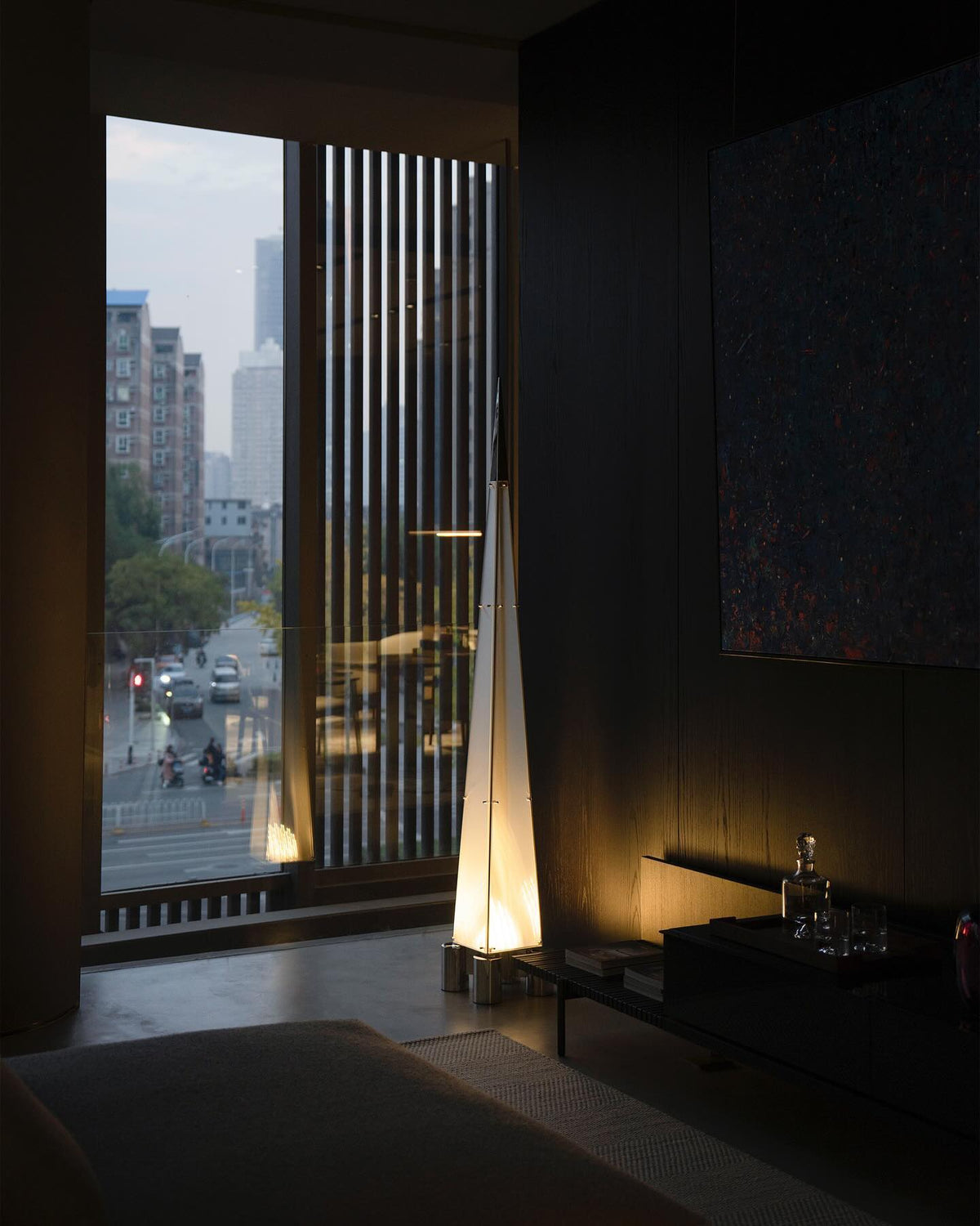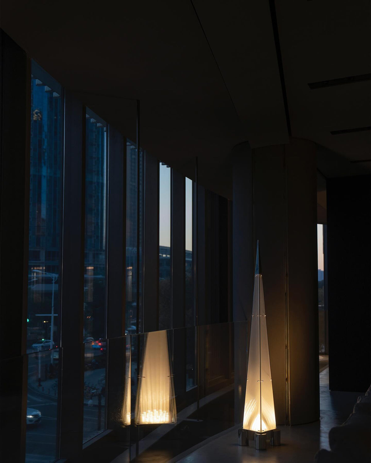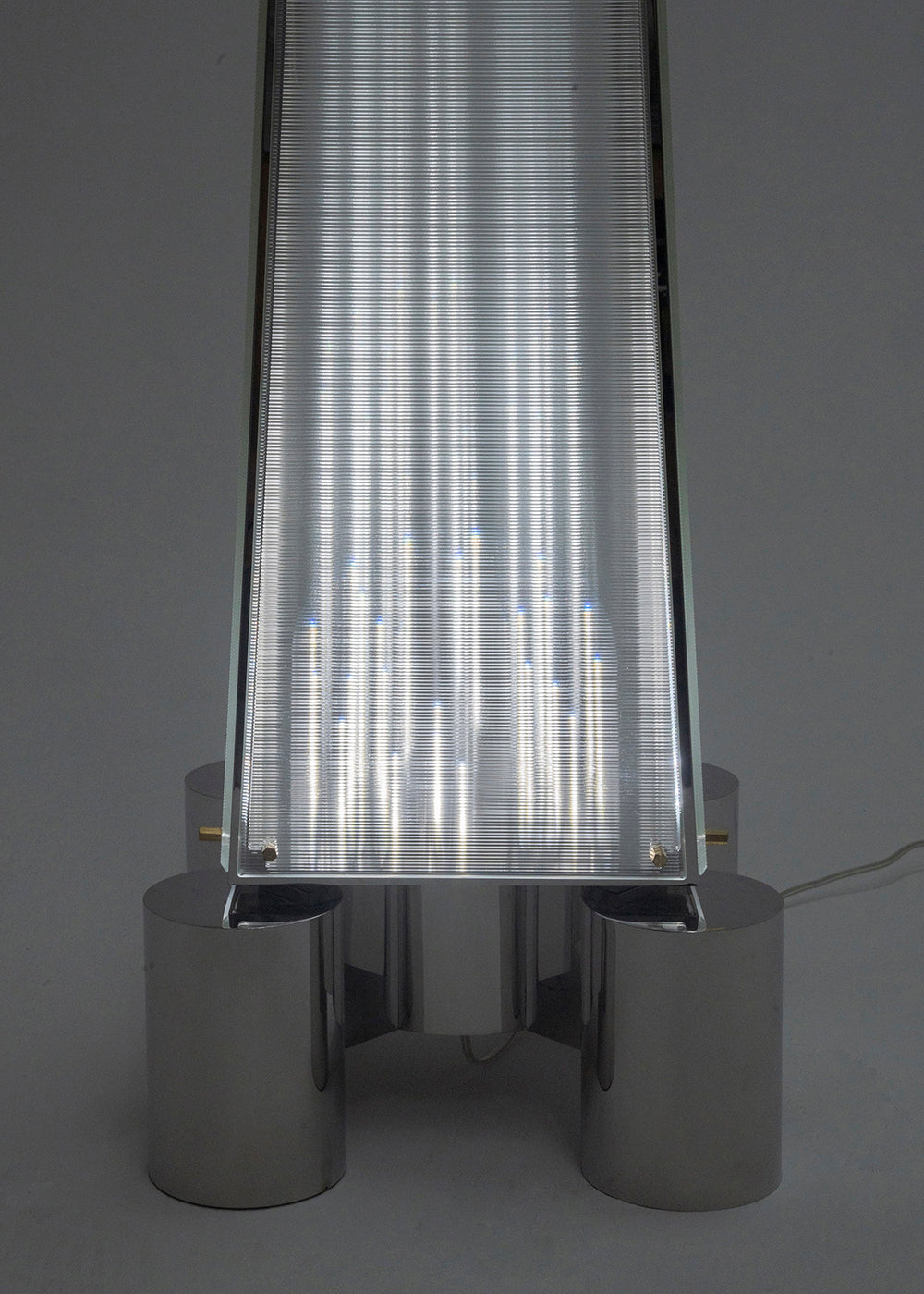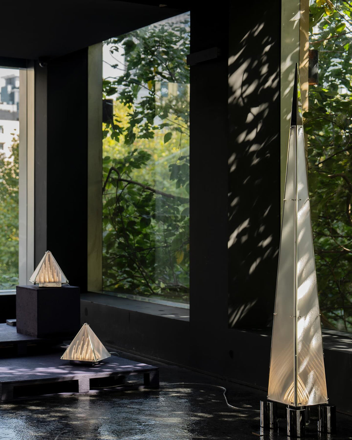 - With its vertical development of light and form, the Fragment #03 exudes a sense of sublime distance, standing in stark contrast to gentleness. It embodies a tension and precision akin to a string balanced on the edge of a hair, showcasing characteristics that softness cannot achieve. This floor lamp is not just a functional piece but a sculptural statement, a testament to the power of sensibility and design.