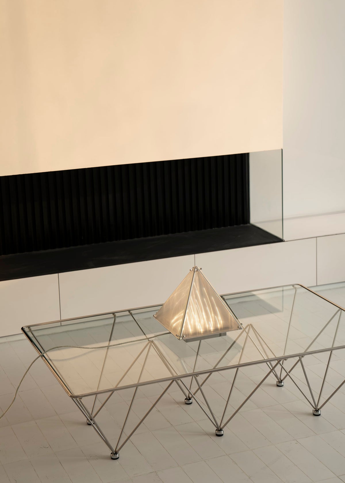 - Inspired by I.M. Pei's iconic Louvre Pyramid, the Fragment #04 Table Lamp is a striking fusion of modern innovation and timeless elegance. Just as the Louvre Pyramid challenged traditional aesthetics to become a celebrated masterpiece, this lamp redefines lighting design by seamlessly balancing the avant-garde with the classical.