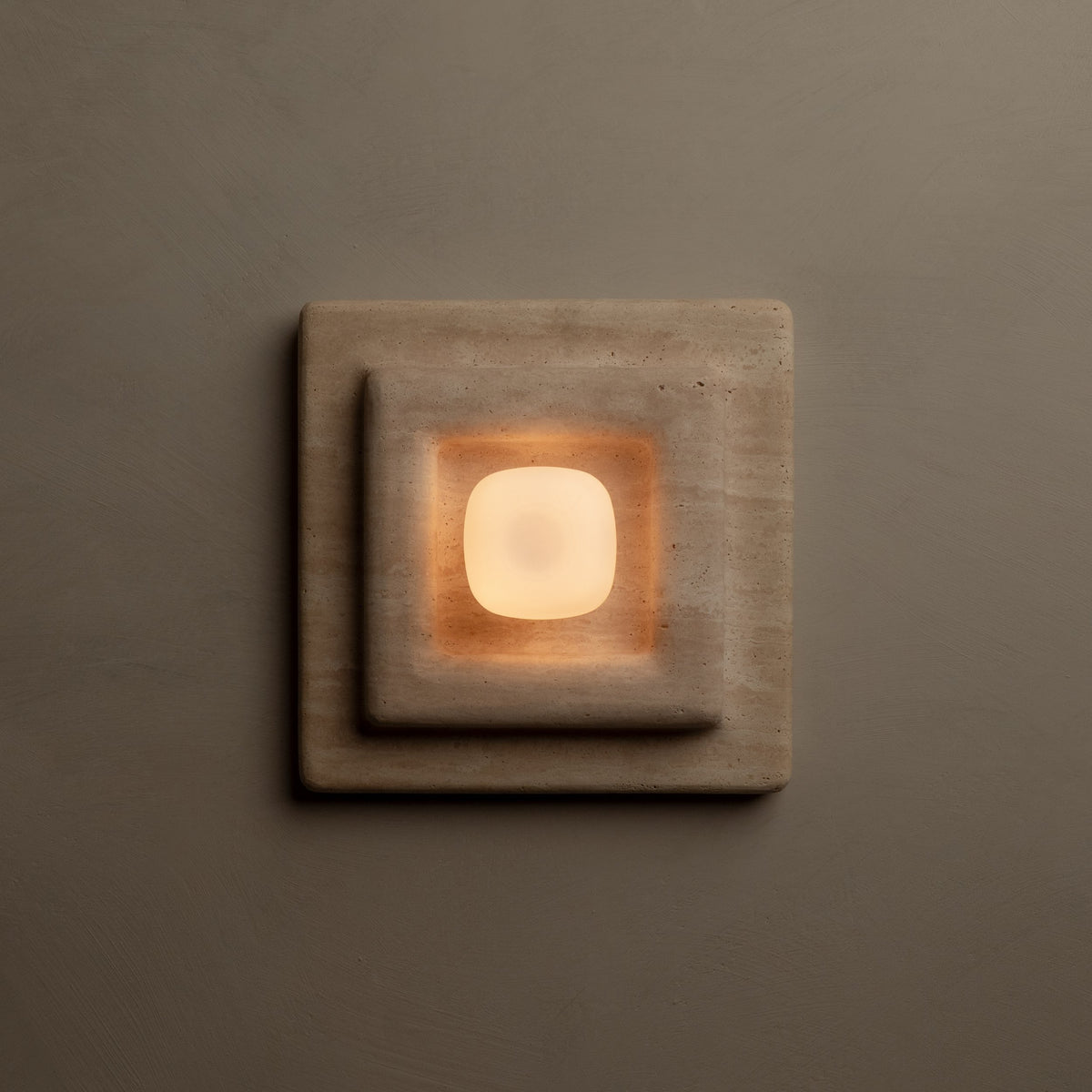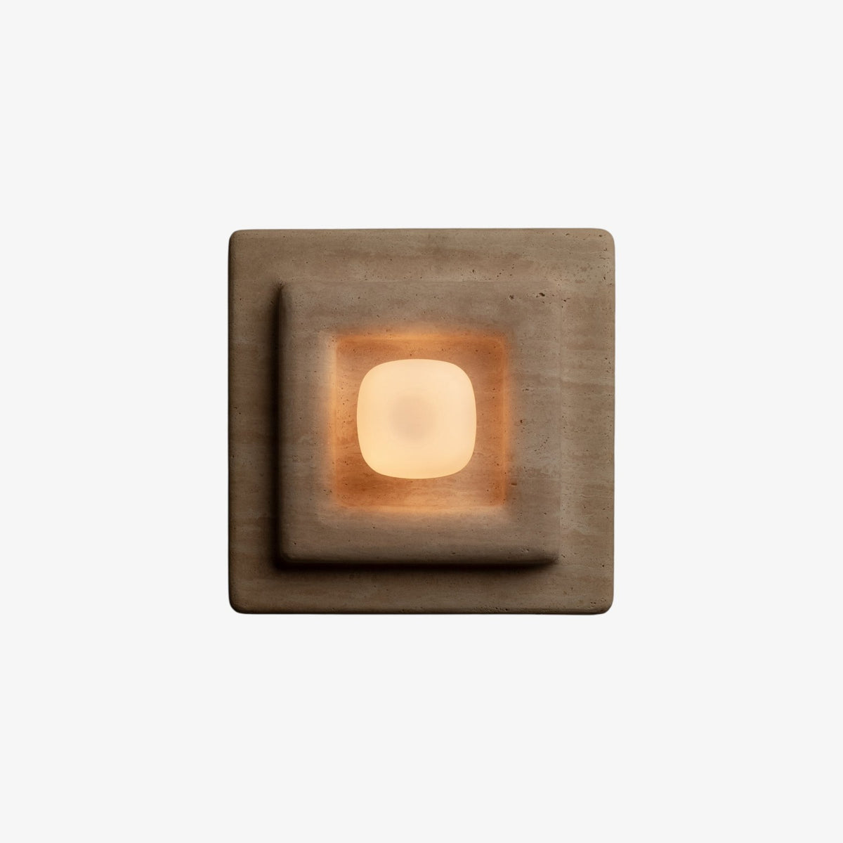 • Softly honed edges lend a quiet fluidity to the precise geometry, creating a tactile and visually soothing presence. At its heart, a cast glass shade echoes the foundational form—square in silhouette but gently rounded at its details, ensuring a soft, diffused glow.