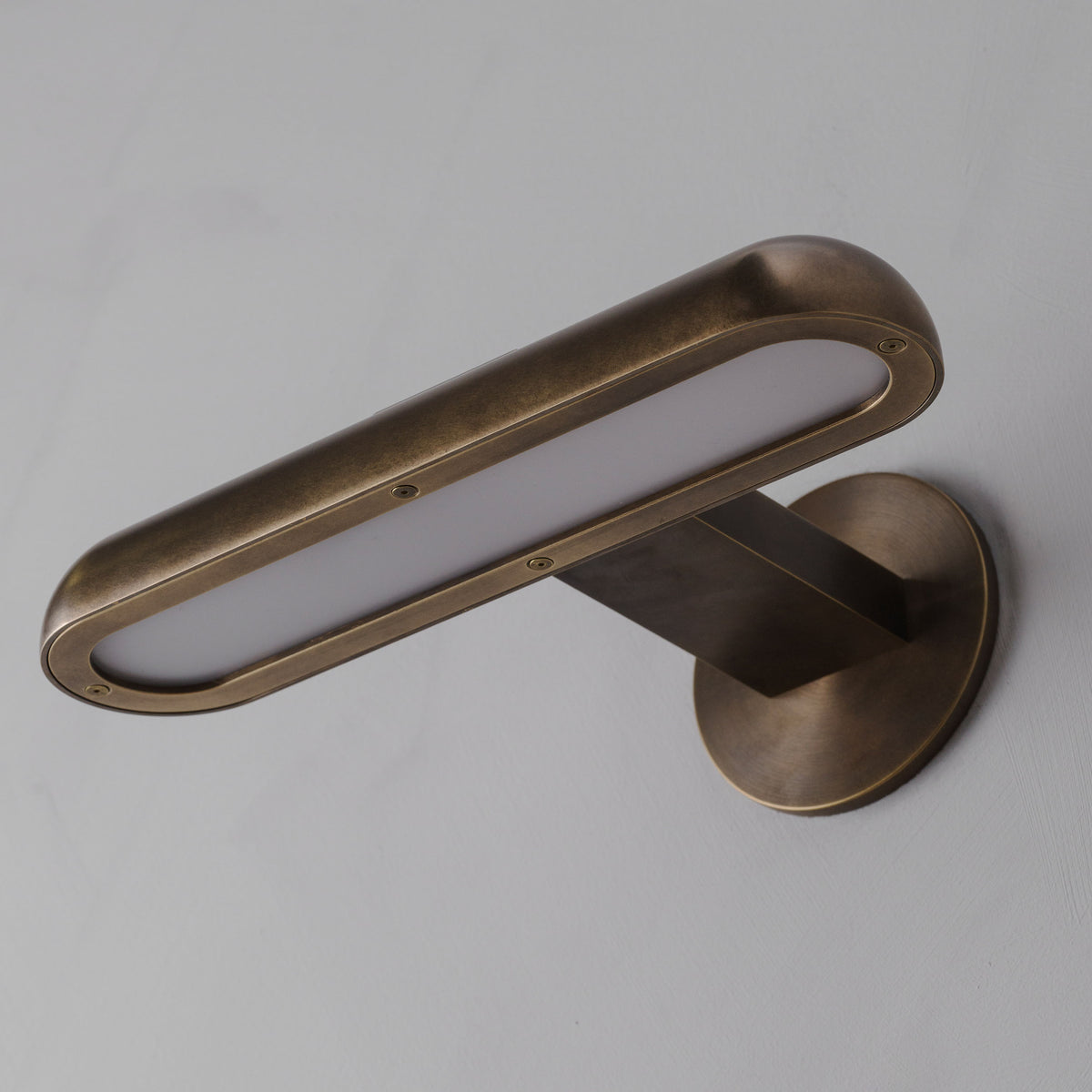 - Meet the Gesso Sconce versatile wall light designed to impress. It delivers a wide, flattering glow perfect for vanities and accent walls, thanks to its built-in frosted glass diffuser. Meticulously crafted from a single piece of solid brass, its standout feature is the adjustable swivel shade. Easily direct the light to reduce glare and create the perfect ambiance. Experience a blend of artful design and smart functionality.