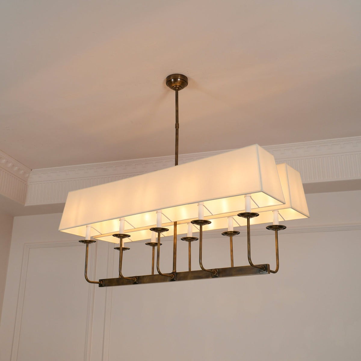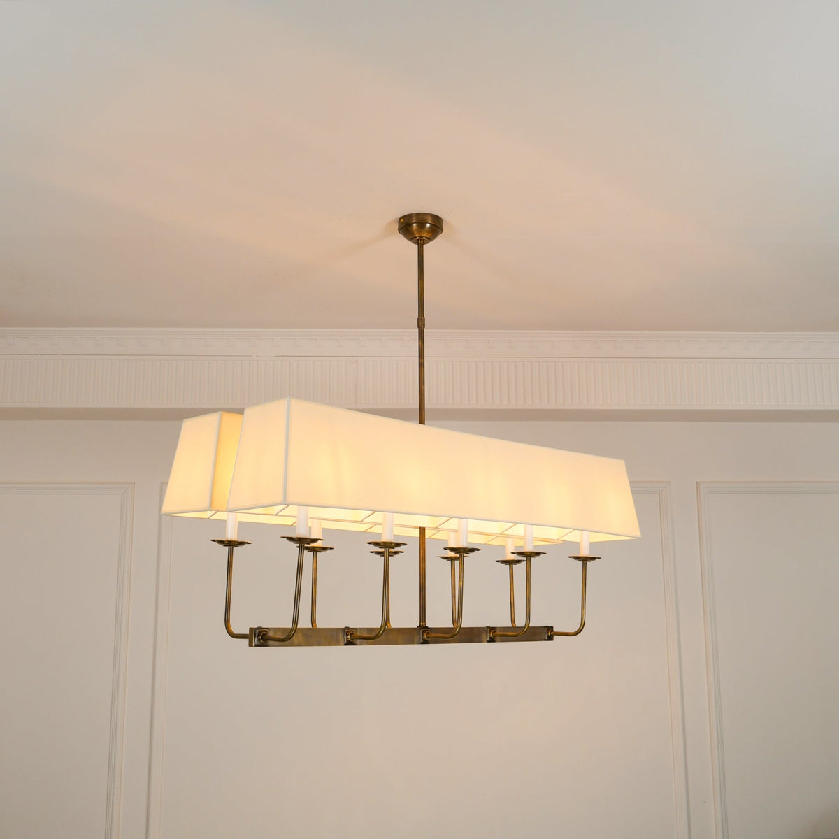 - This chandelier offers the unique option of customizable shades, giving you complete control over the mood and atmosphere