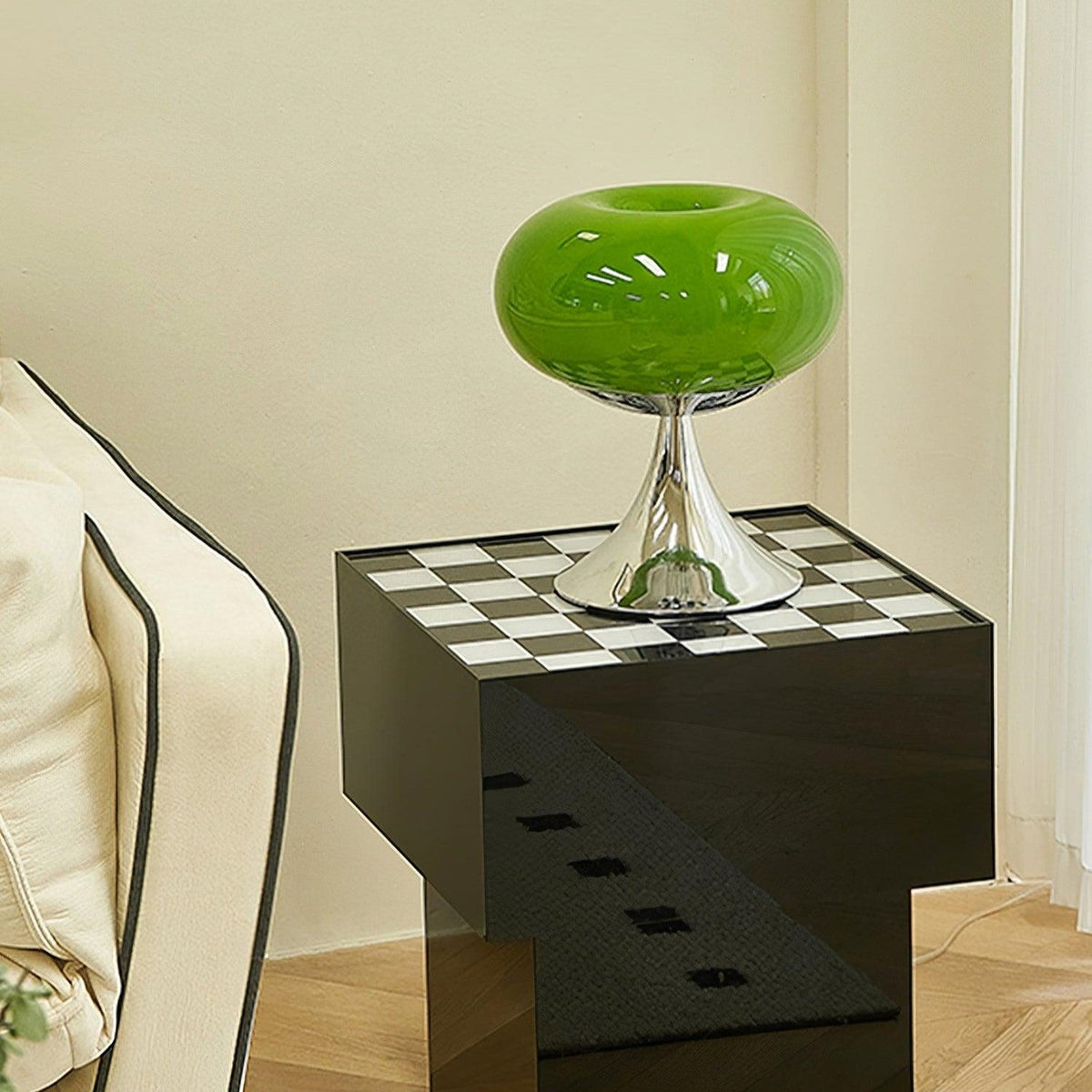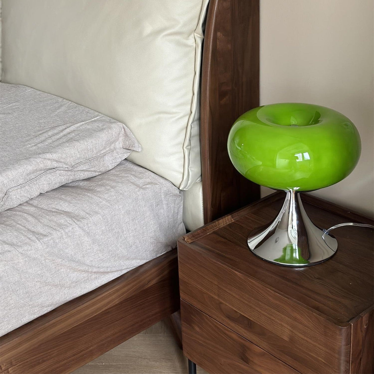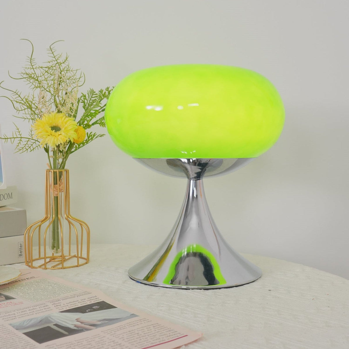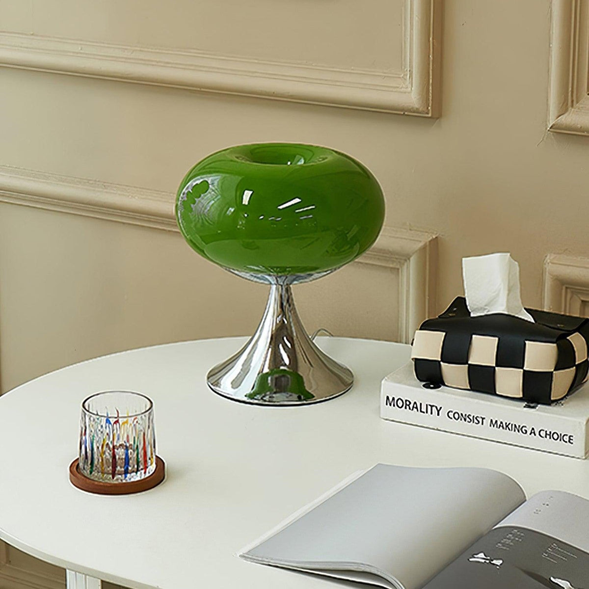 - Illuminate your space with the Green Genie Table Lamp, a stunning piece of art that merges elegance with a touch of mystique. This exquisite table lamp features a captivating green lampshade that casts a soothing glow, perfect for creating a serene atmosphere in any room. The lamp’s inverted flared base adds a unique architectural flair, making it not just a source of light, but a statement piece in your decor.