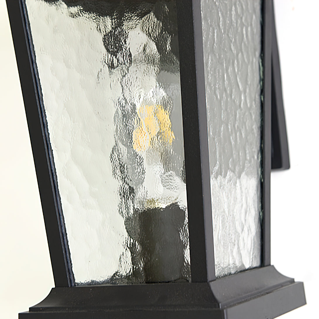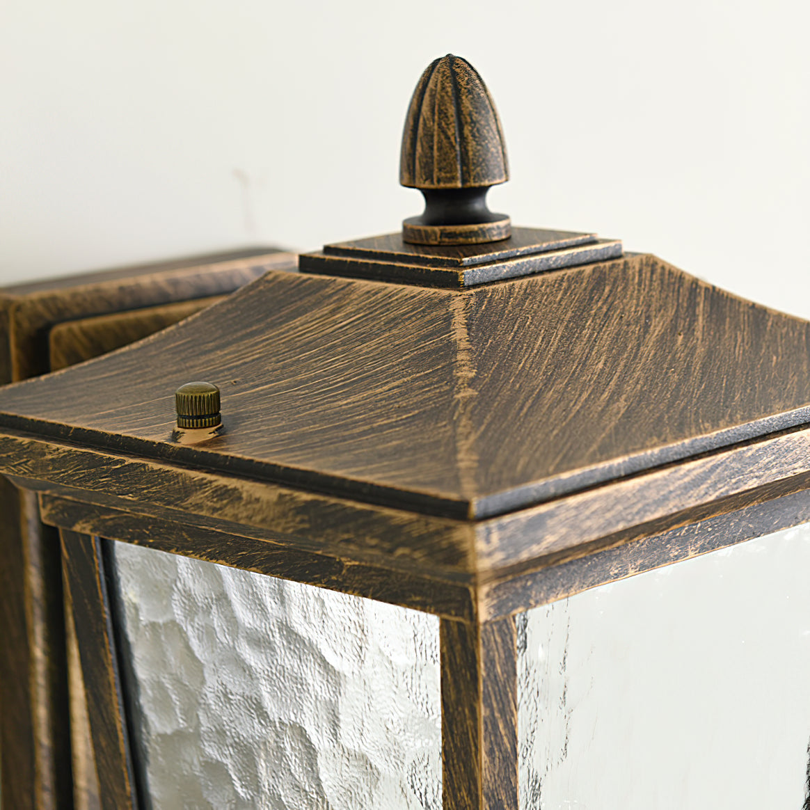 | Specifications1. Fixture Type: Outdoor Ligting2. Style: Vintage 3. Body Finishes: Black / Antique Bronze 4. Shade Finishes: Transparent / Frosted 5. Main Material: Glass(Shade), Aluminum(Body) 6. Scenes to be Used: Outdoor (IP65) 7. Light Source Base: E26 / E27 8. Bulb Included: Yes 9. Kelvin Range: 3000K 10. Dimmable: No 11. Remote Control: No 12. Voltage: 95V-265V AC 13. Warranty: Two Years 14. Assembly Required: No 15. Installation Required: Yes |