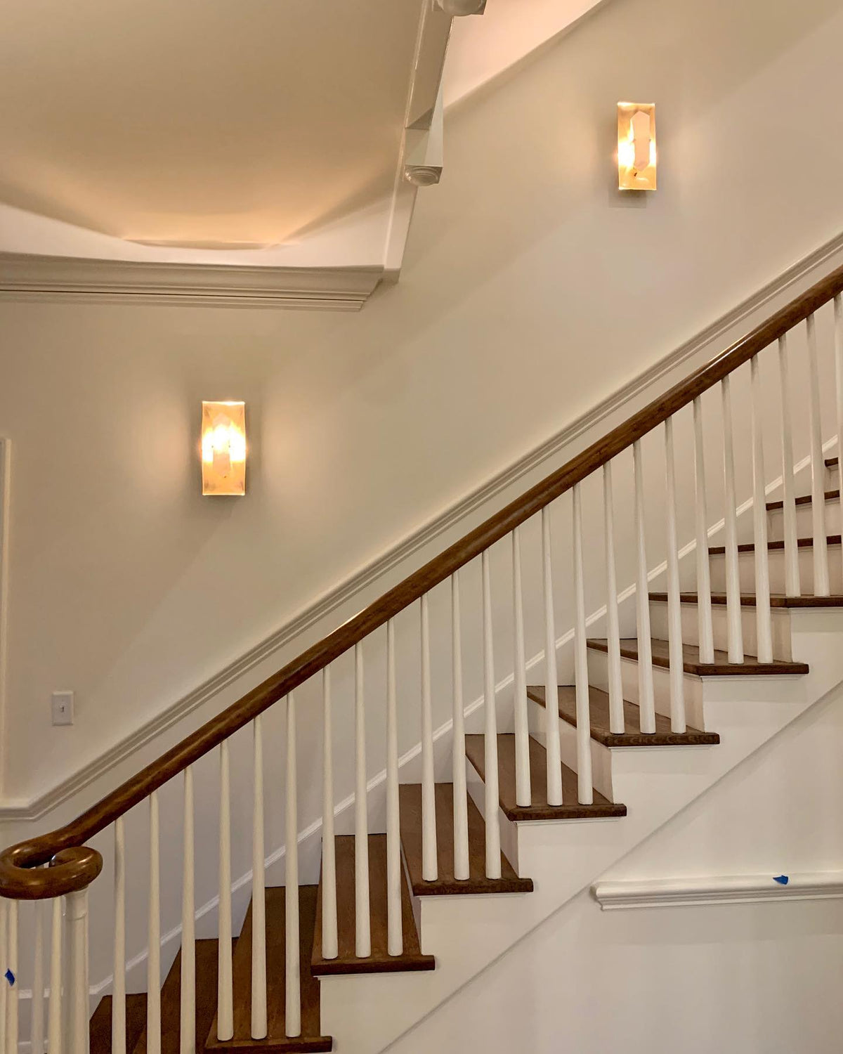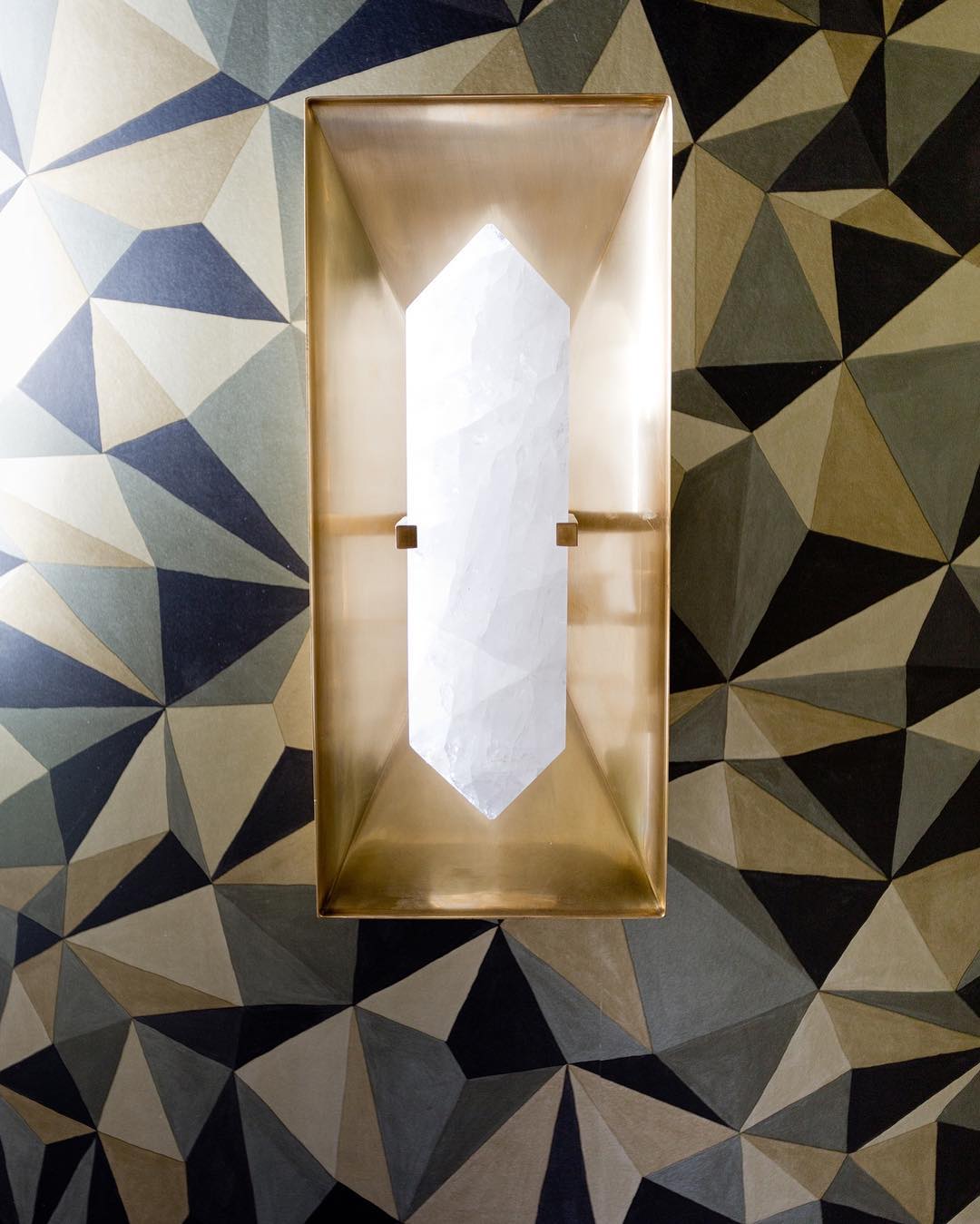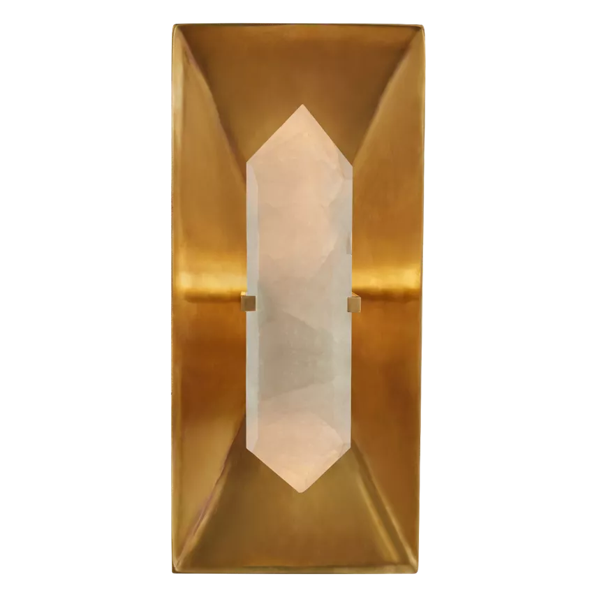 - Crafted for the discerning homeowner, the Halcyon Rectangle Sconce features a sturdy, faceted frame in warm, antiqued brass. This architectural form is expertly paired with a softly diffusing shade of natural alabaster, an organic material known for its subtle, veined beauty. The result is a captivating contrast—where the strength of metal meets the delicate, ethereal glow of stone.