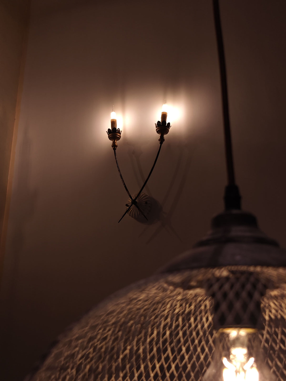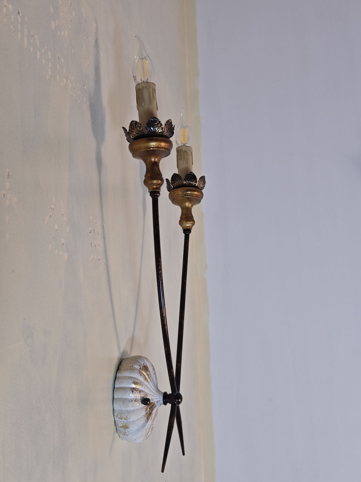 - The Hasselt Wall Sconce is a testament to the beauty of understated design. This striking piece features two elegantly crossed iron arms that extend from a hand-carved wooden base. The base, expertly crafted and finished in a calming Paris White, provides a warm and inviting contrast to the cool, metallic tones of the iron.
