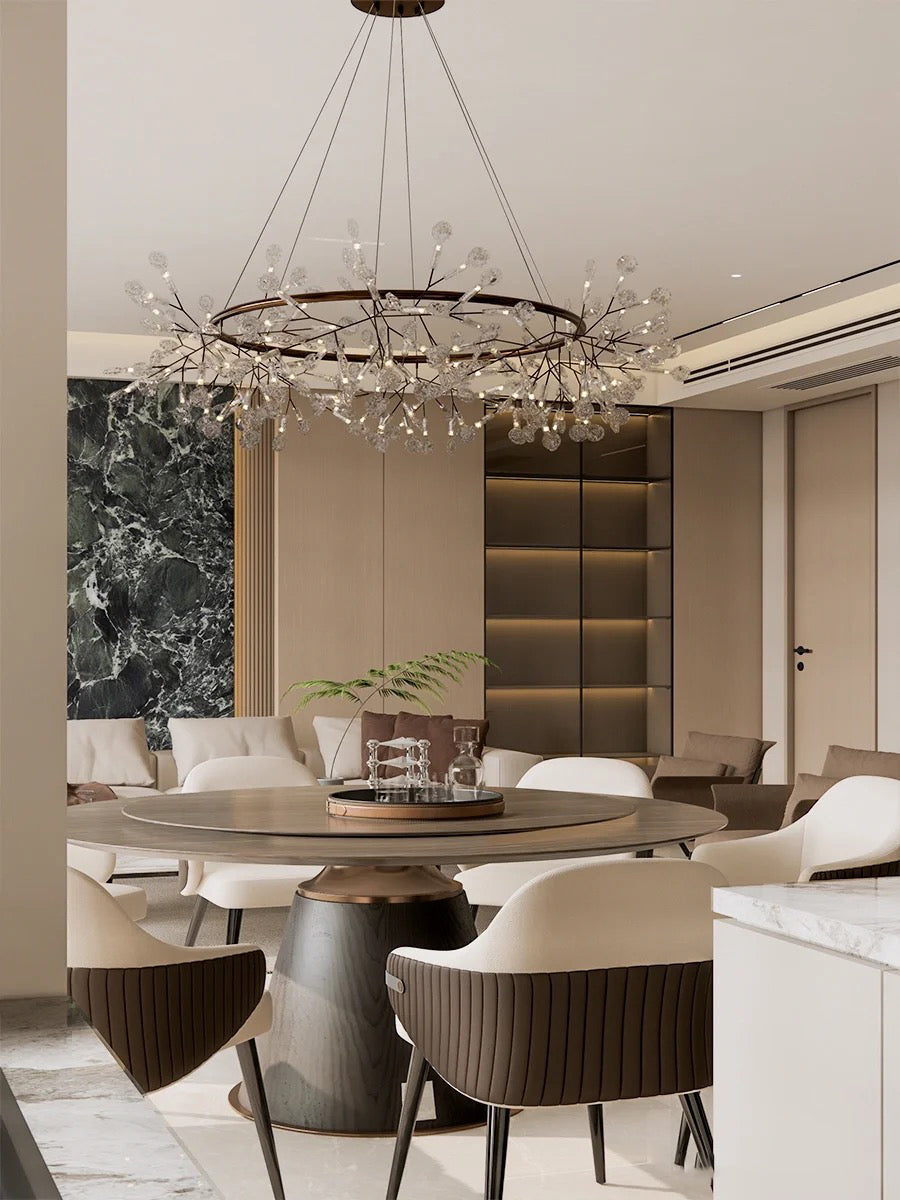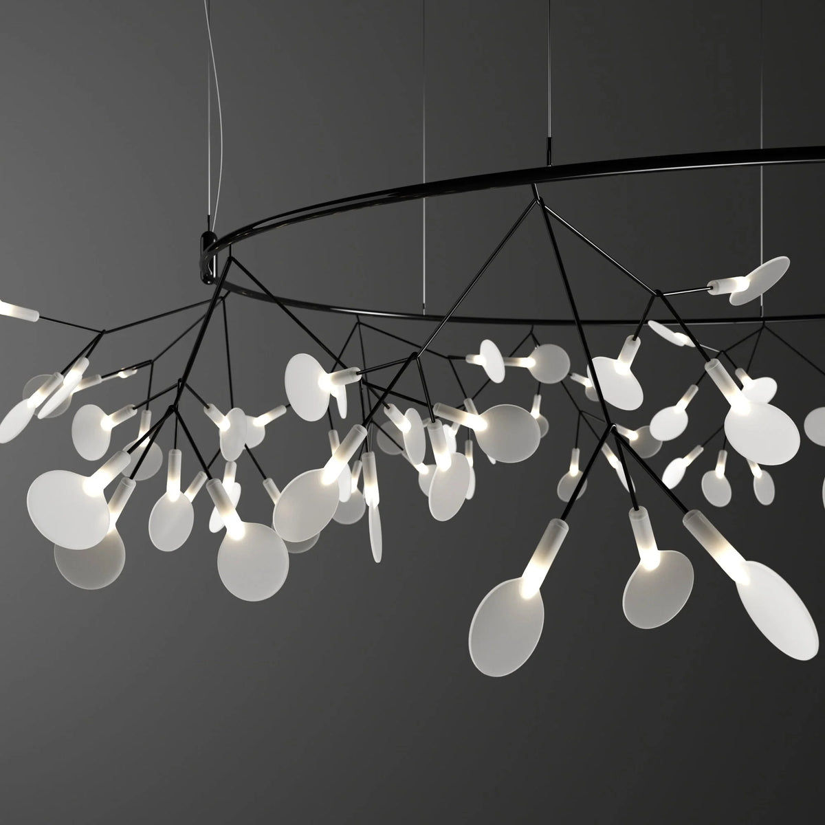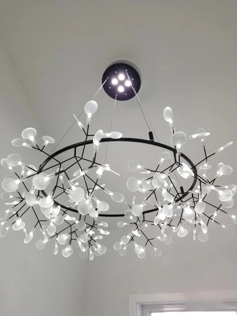 Delicately crafted with slender, branch-like arms and graceful leaf-shaped lenses, The Big O brings the organic elegance of the outdoors into your interiors. Whether suspended above a dining table, in a grand foyer, or as a statement piece in a modern living space, its sculptural design adds sophistication and warmth to any setting.