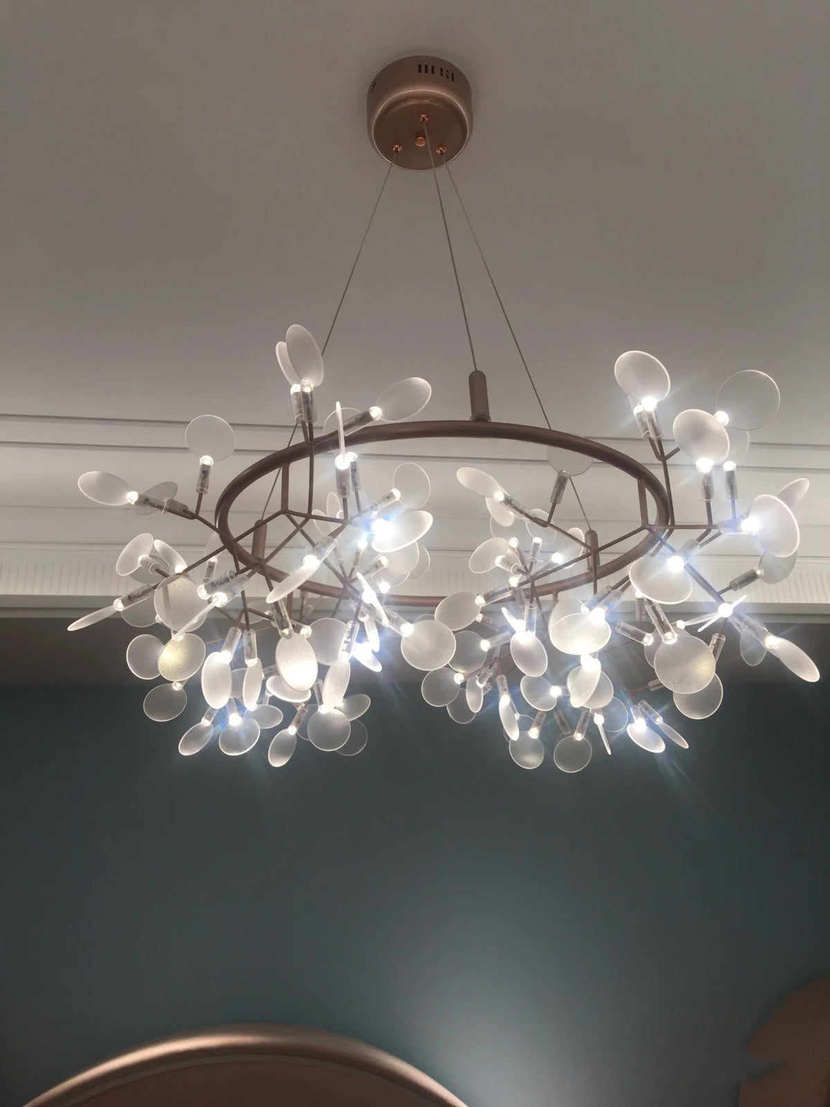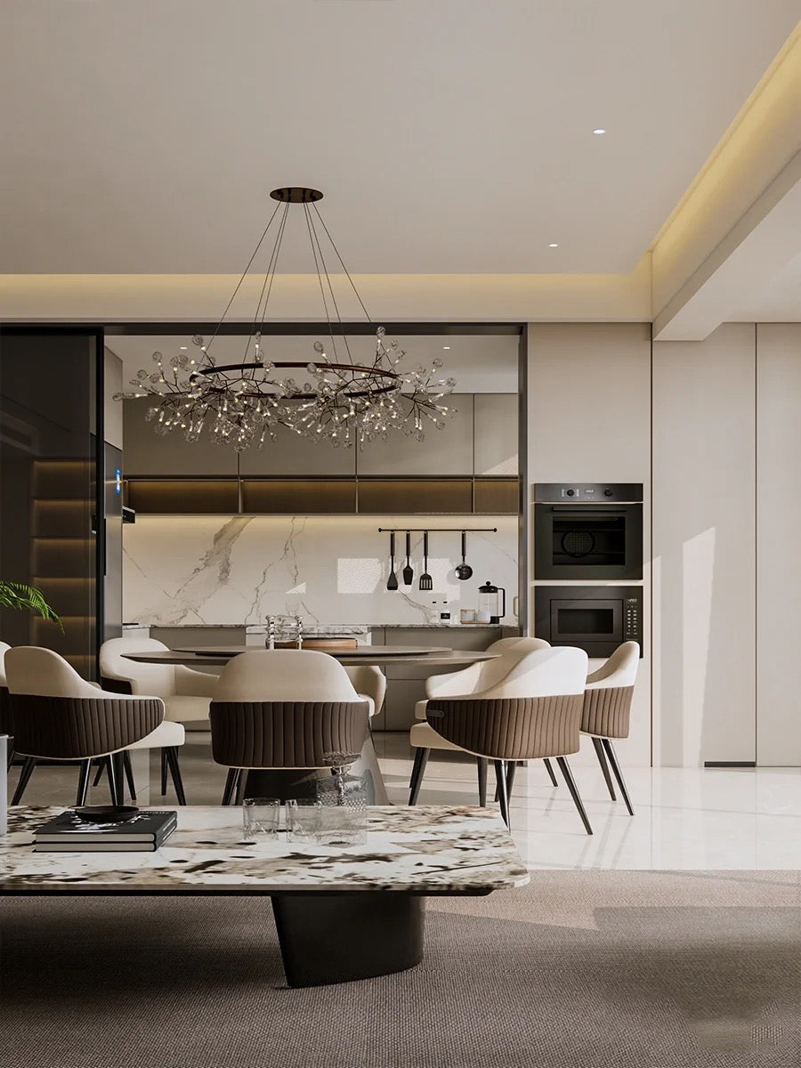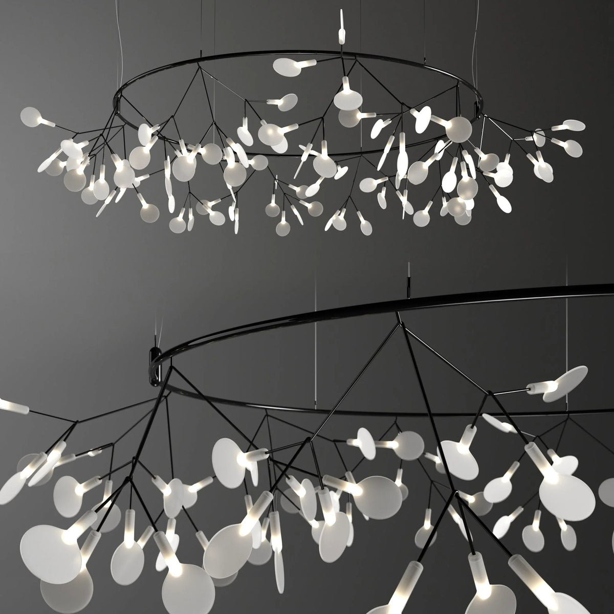Delicately crafted with slender, branch-like arms and graceful leaf-shaped lenses, The Big O brings the organic elegance of the outdoors into your interiors. Whether suspended above a dining table, in a grand foyer, or as a statement piece in a modern living space, its sculptural design adds sophistication and warmth to any setting.