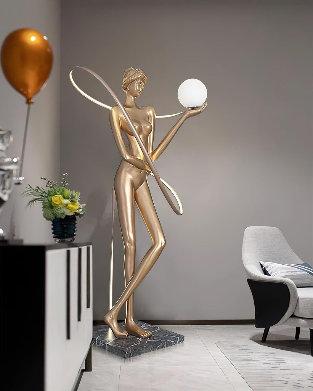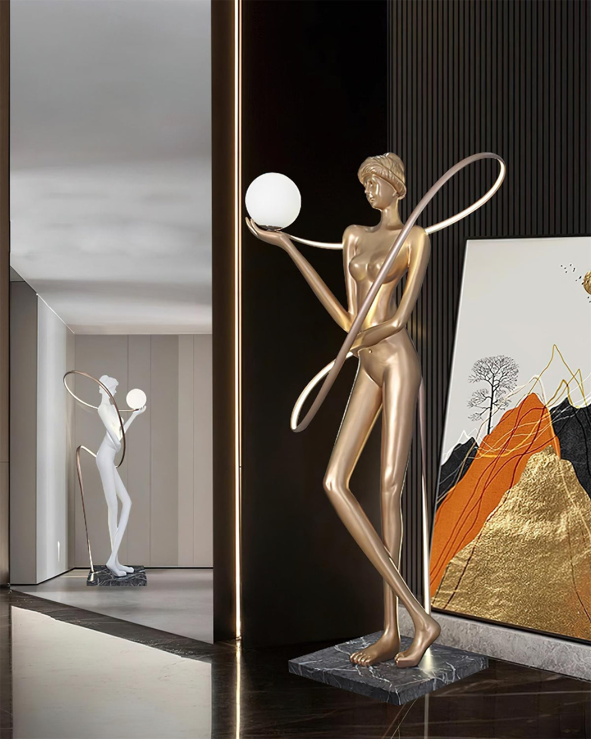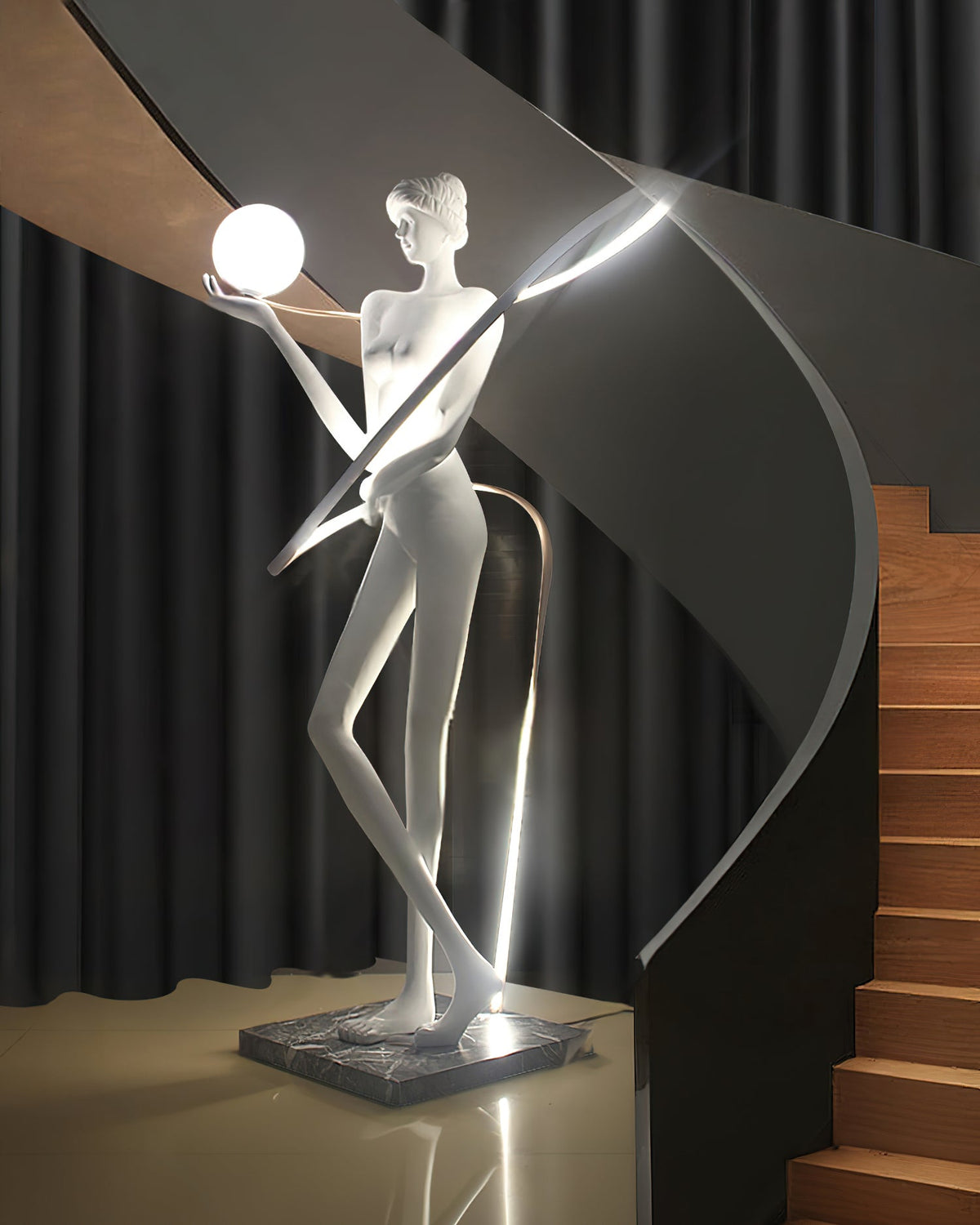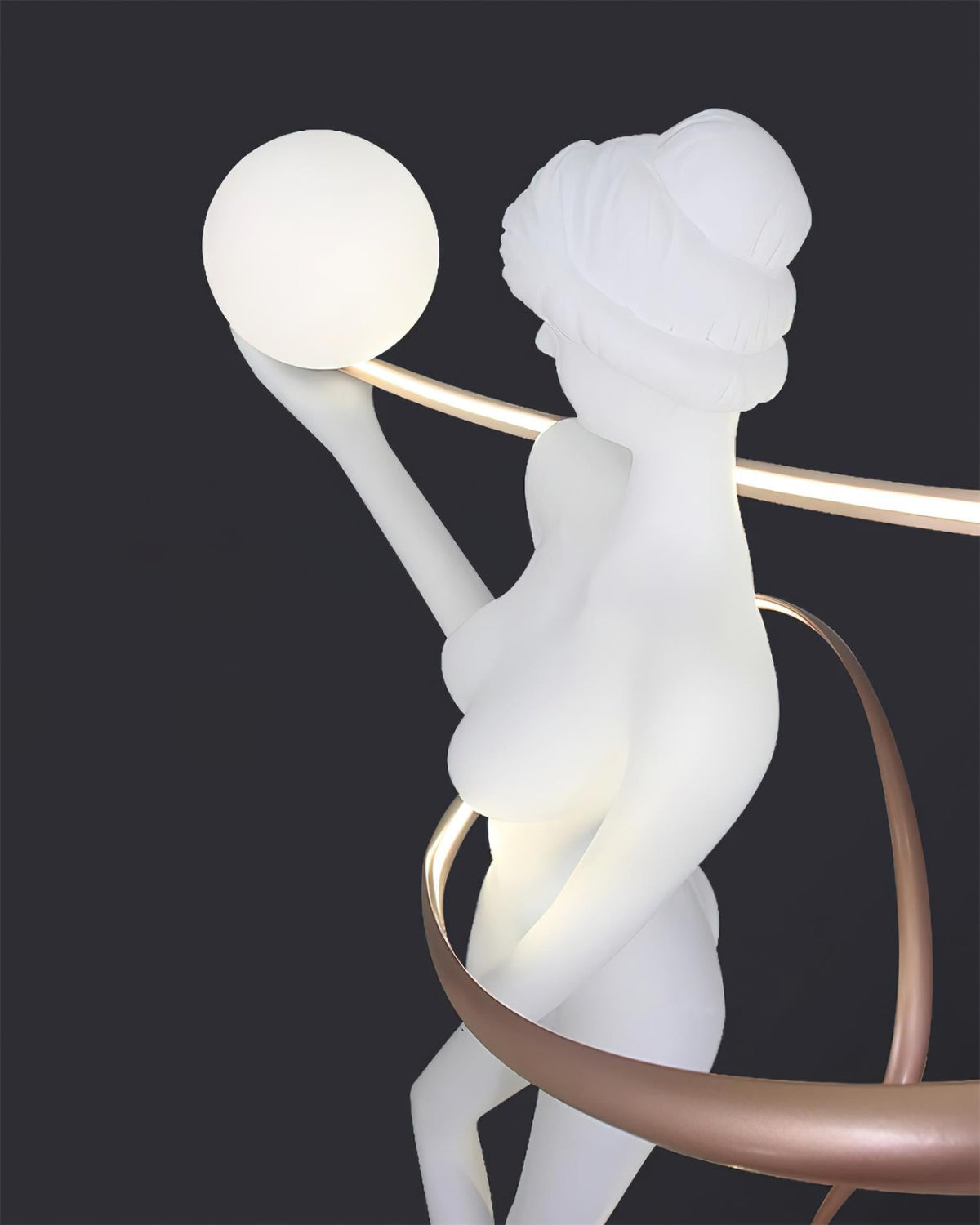 - Embrace the warmth and serenity of the Greek goddess Hestia with this stunning floor lamp. Crafted with meticulous detail, the sculpture captures the essence of the Hestia goddess, radiating a soft, inviting glow. The LED aura surrounding Hestia creates a mesmerizing ambiance, transforming any space into a sanctuary of tranquility.