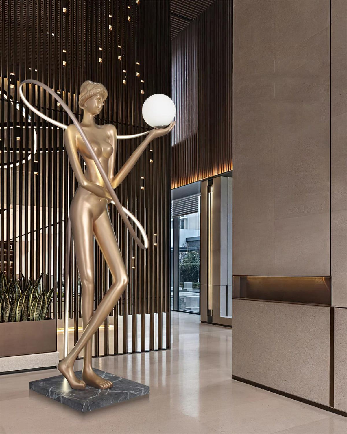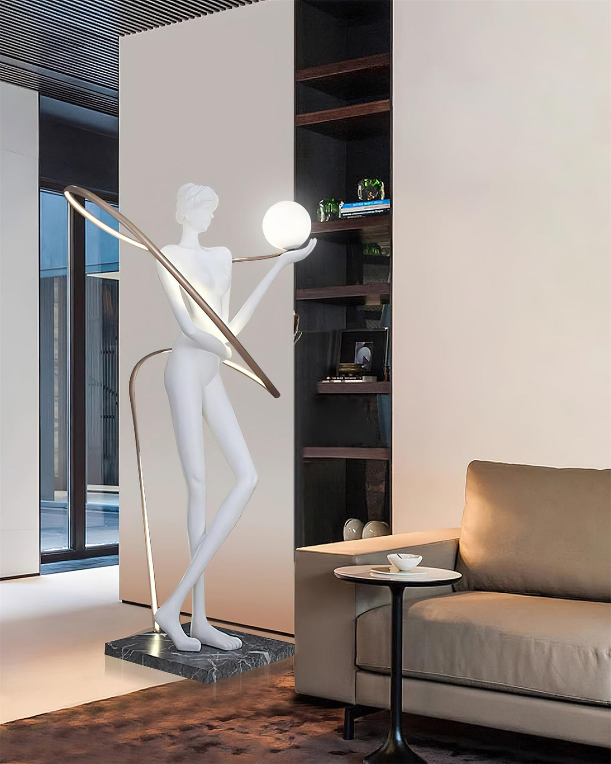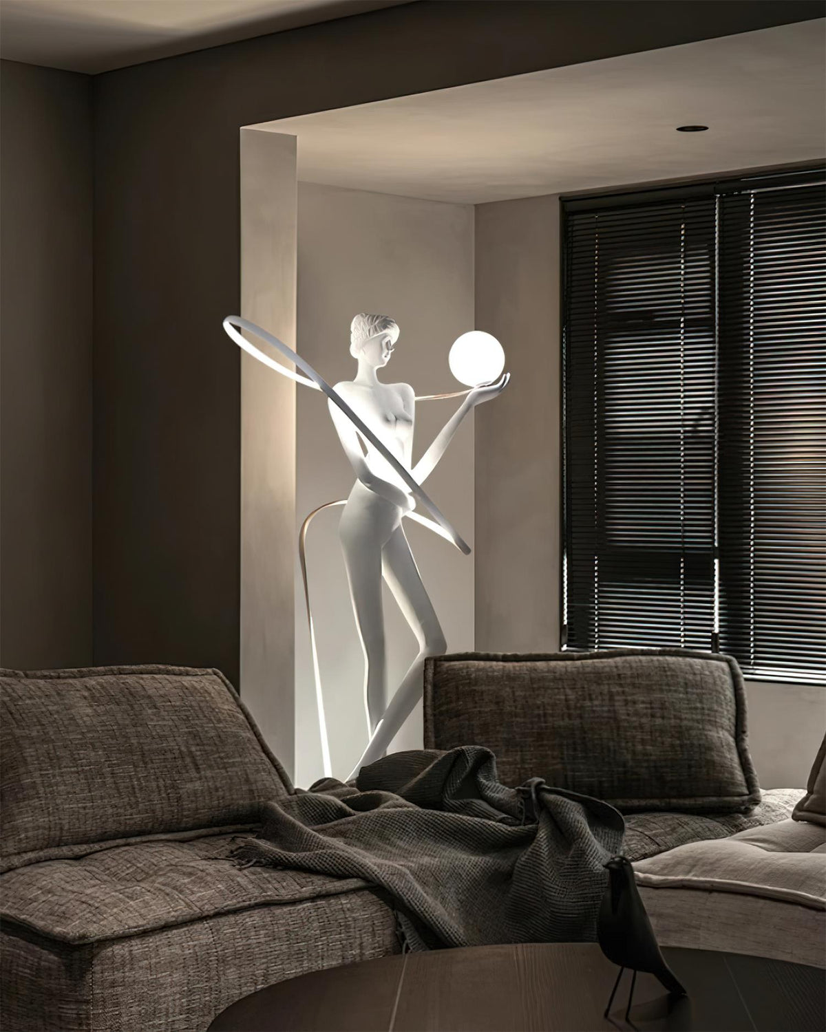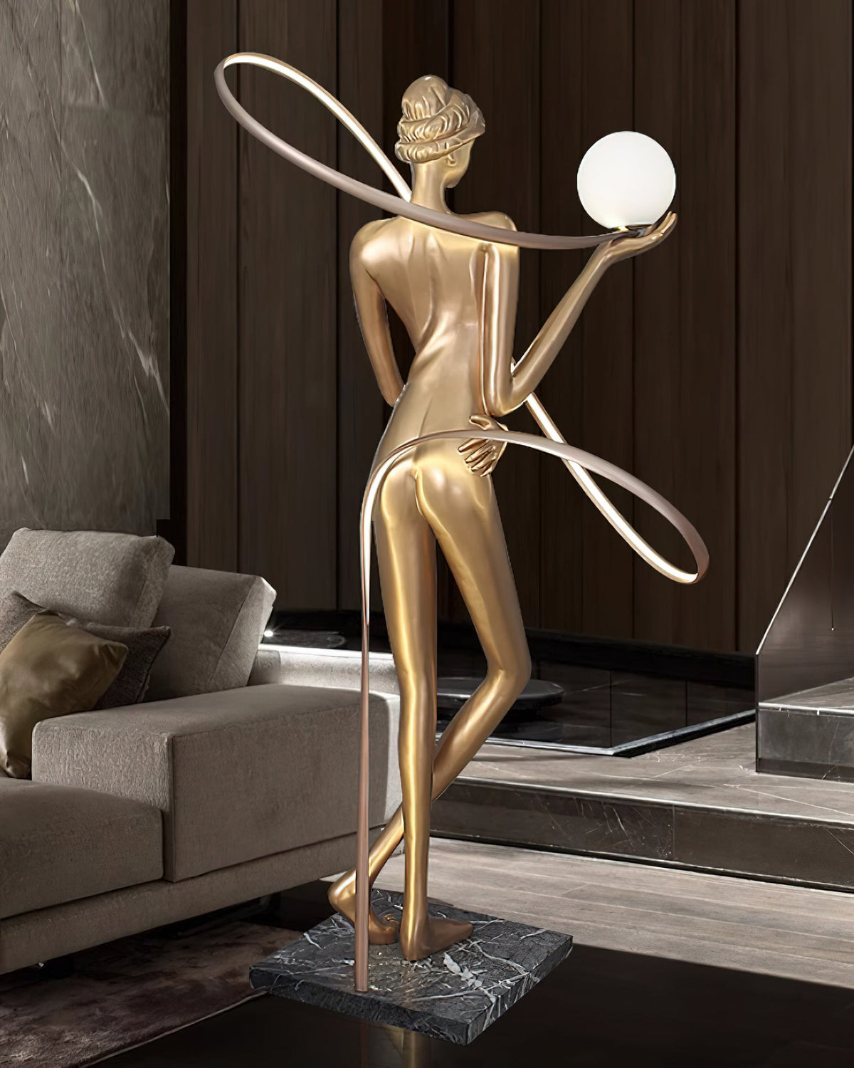 - Embrace the warmth and serenity of the Greek goddess Hestia with this stunning floor lamp. Crafted with meticulous detail, the sculpture captures the essence of the Hestia goddess, radiating a soft, inviting glow. The LED aura surrounding Hestia creates a mesmerizing ambiance, transforming any space into a sanctuary of tranquility.
