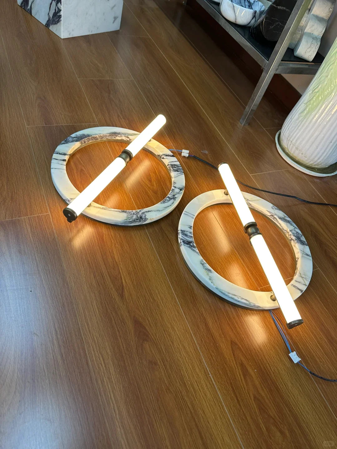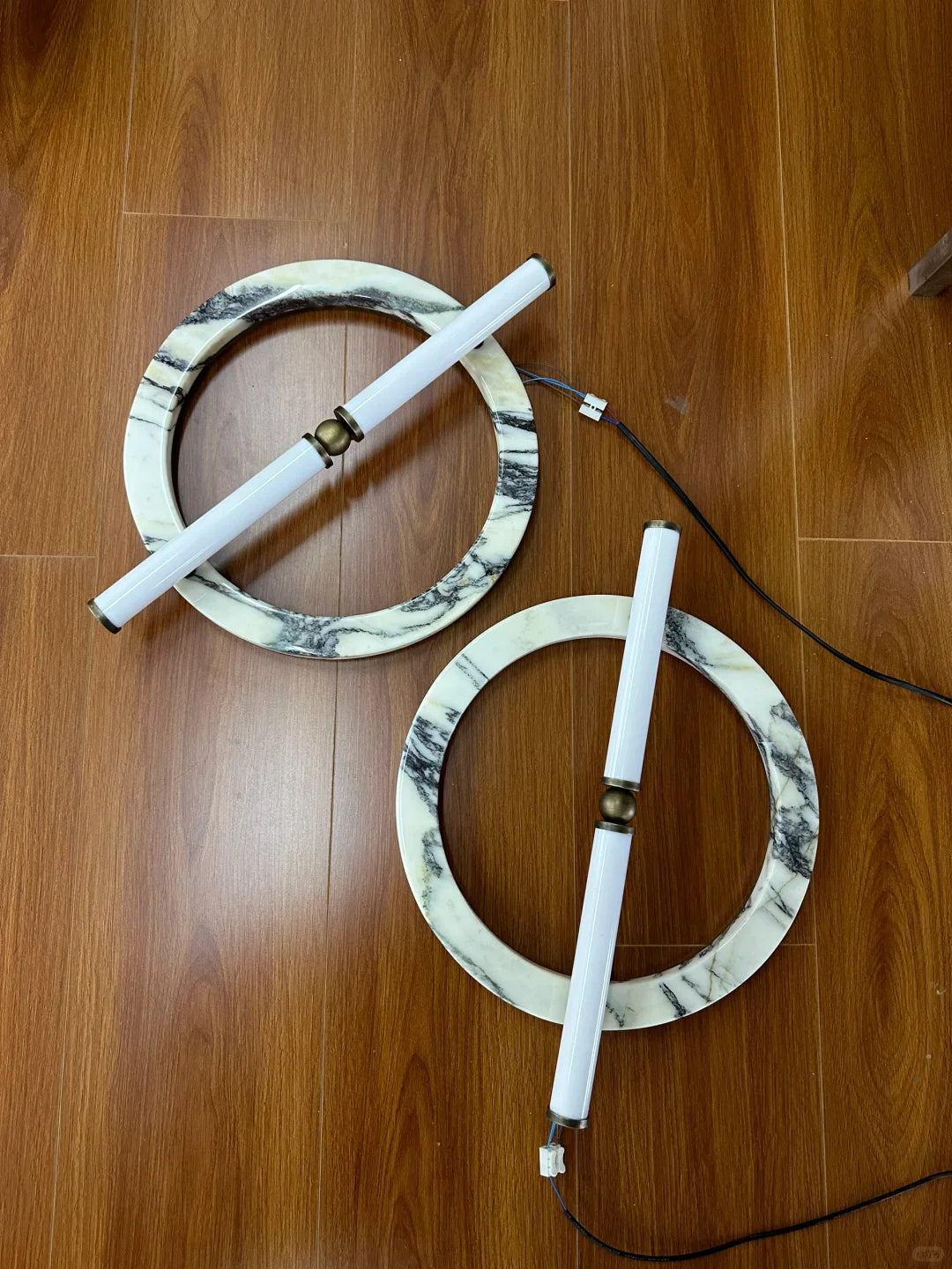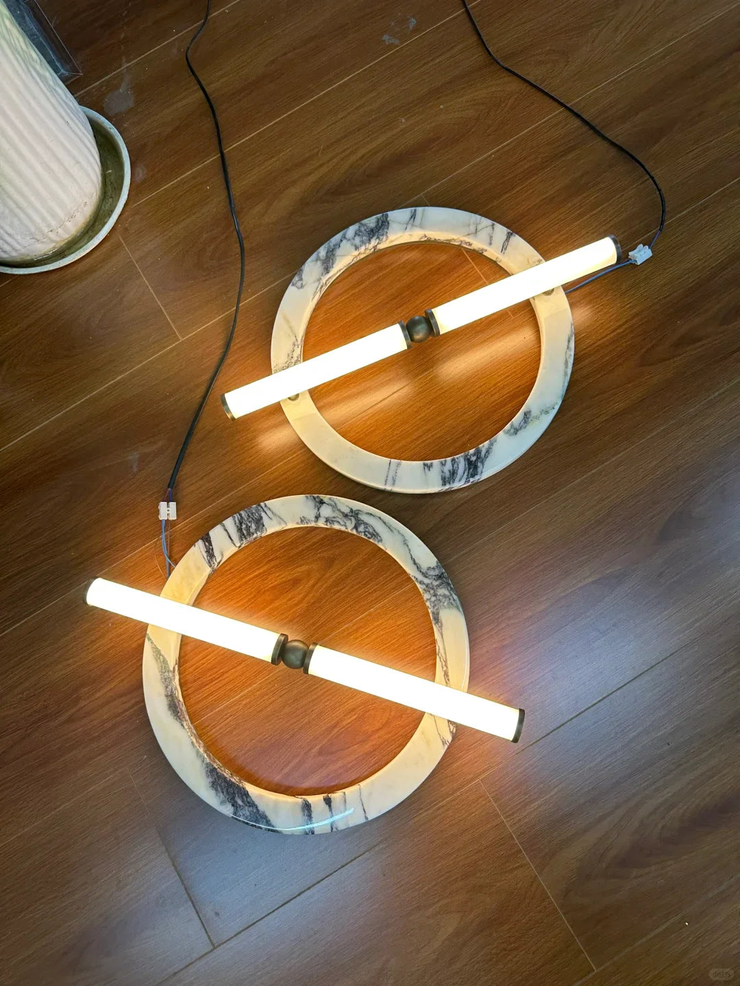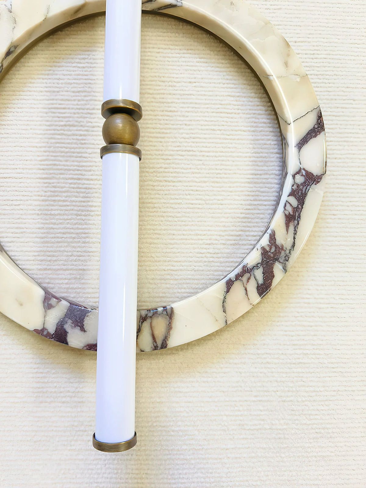 - Elevate your space with the Ice IV Wall Sconce, a striking fusion of modern design and artisanal craftsmanship. Featuring softly illuminated frosted opal glass rods resting gracefully on a hand-finished circular marble frame, this sconce exudes understated luxury. Delicate antique brass detailing adds a touch of timeless sophistication, creating a warm, refined glow