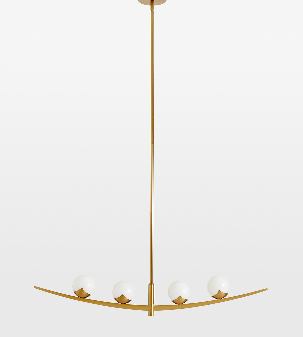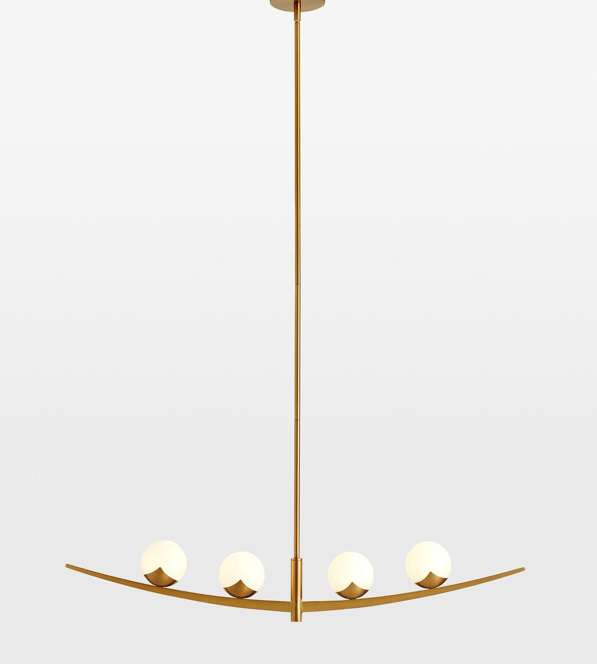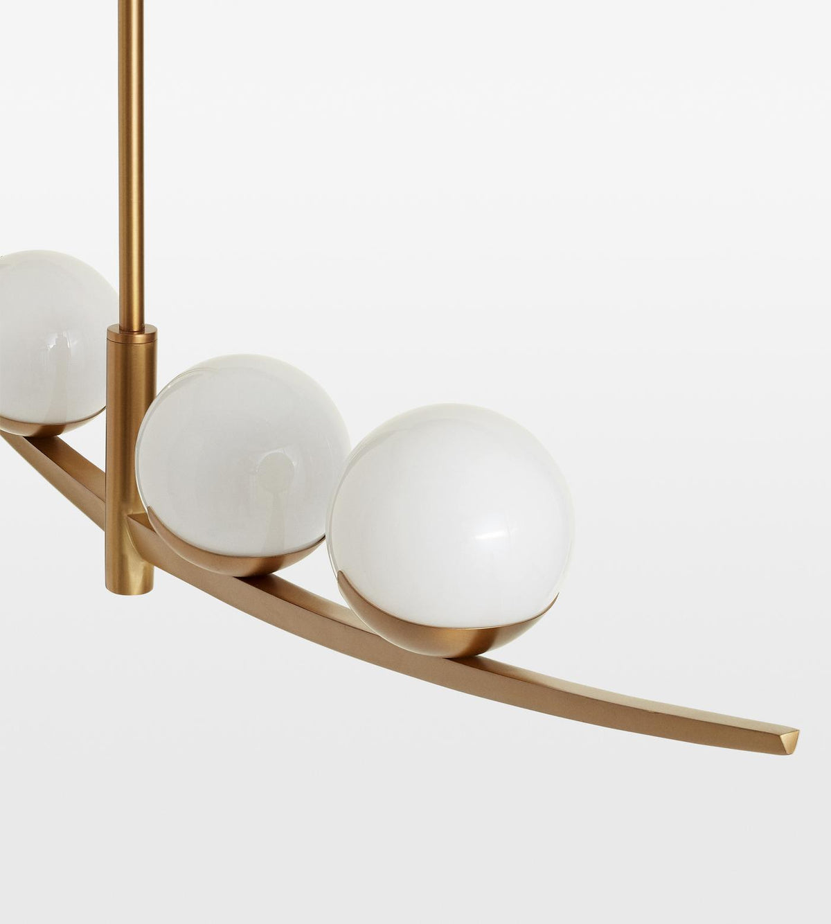 - Suspended from this elegant frame are four substantial Opaque Glass Orbs. Each orb is hand-blown for subtle variations, ensuring your piece is uniquely yours. Their milky, white opacity is the secret to Ida’s enchanting glow. They act as luminous lanterns, perfectly diffusing the light from within to eliminate harsh shadows and glare. The result is a soft, welcoming, and uniformly radiant ambiance that flatters both your space and your guests, casting a light that is both generous and intimate.