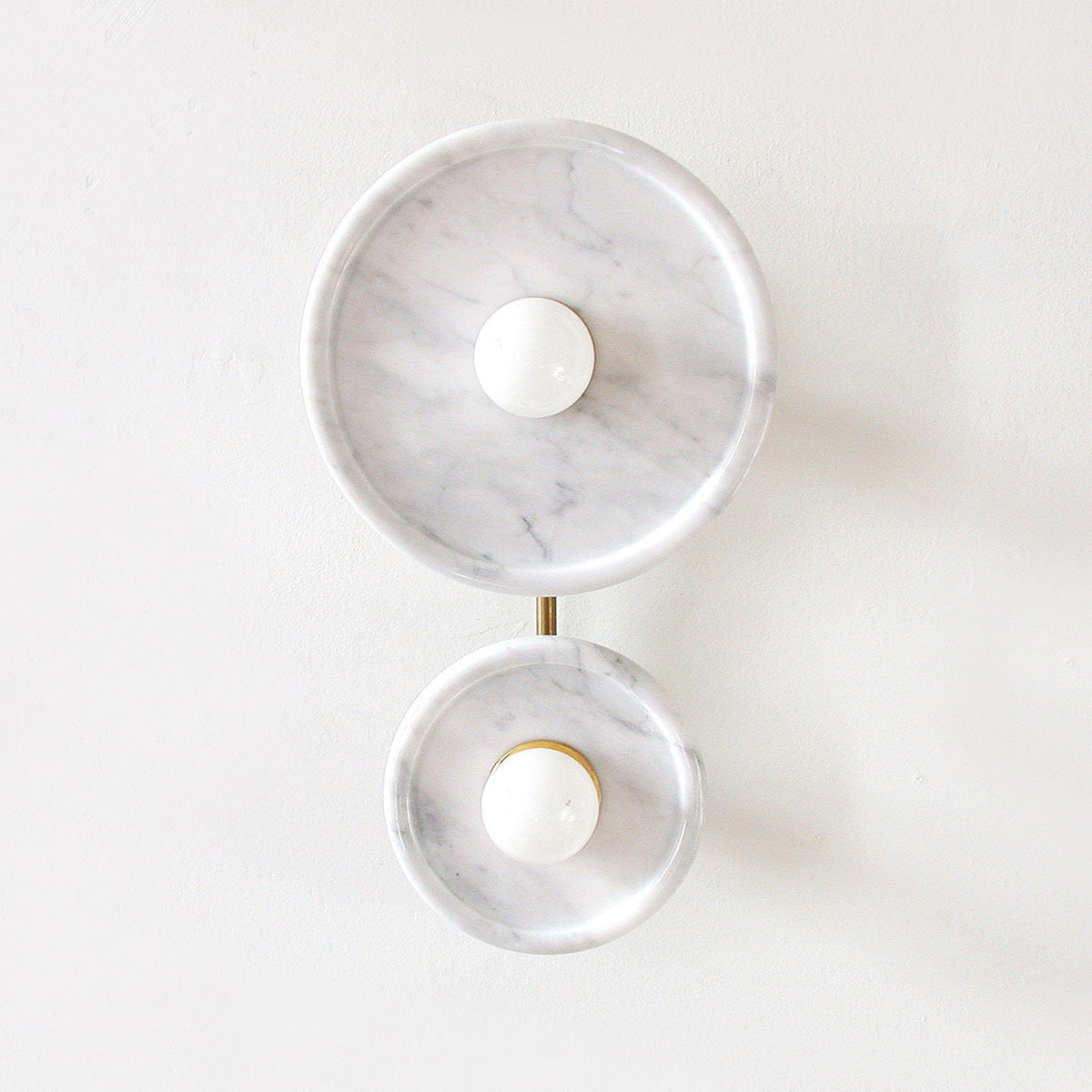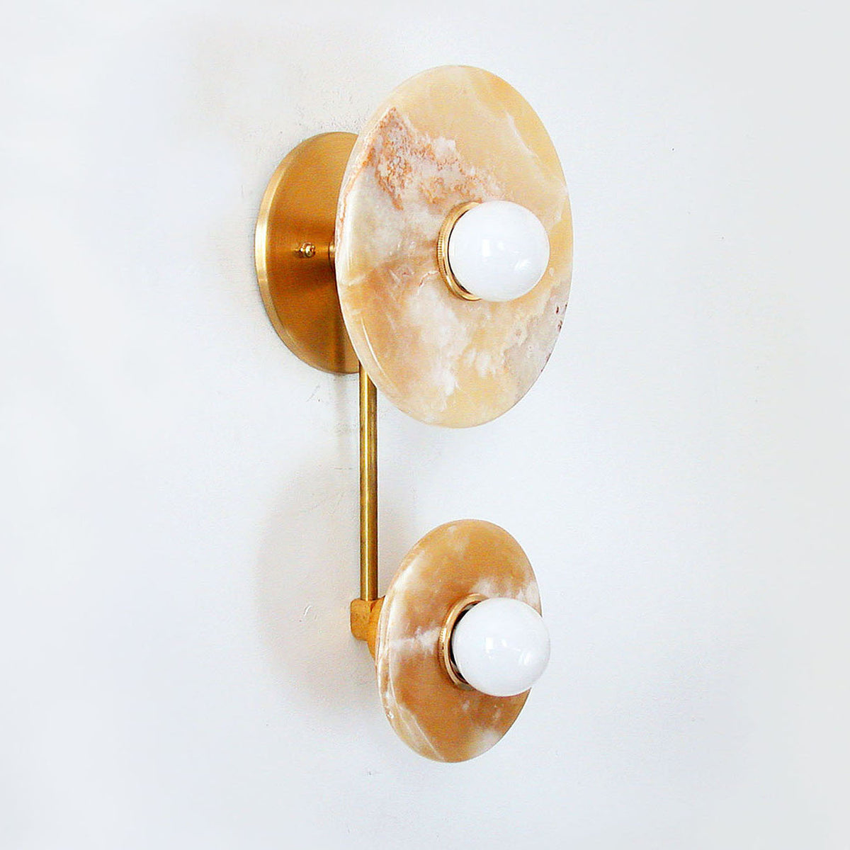 - Elevate your space with our exquisite Marble or jade& Brass Double Wall Sconce—a stunning fusion of timeless craftsmanship and contemporary design. Handmade with passion in our studio, each sconce is meticulously crafted from sustainable marble and brass, ensuring a unique piece that blends luxury with eco-conscious artistry.
