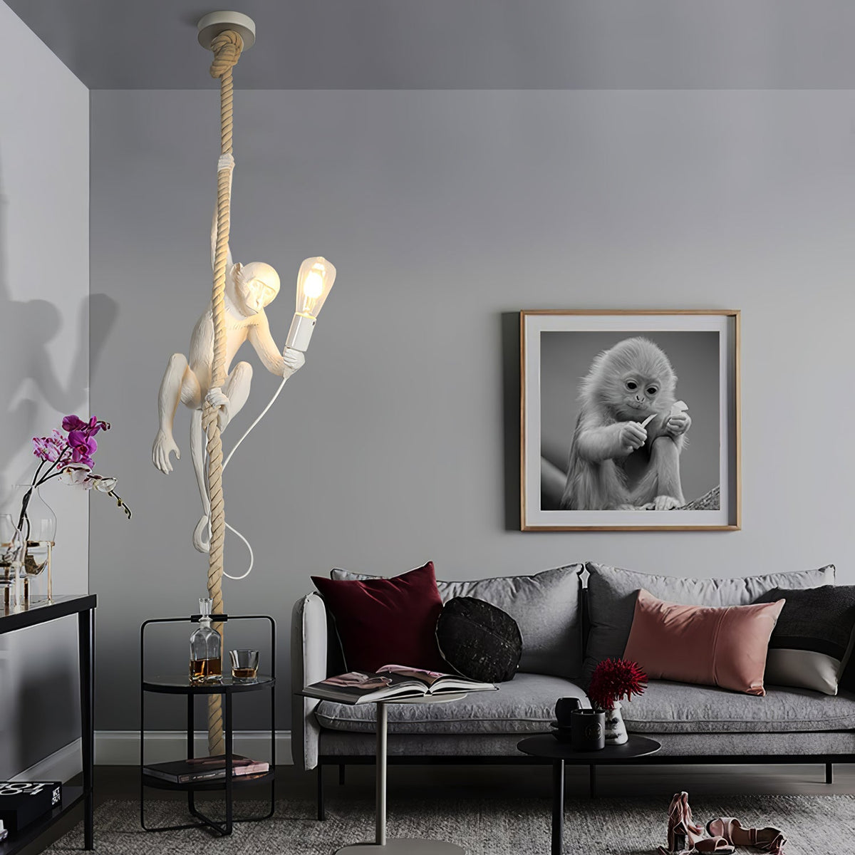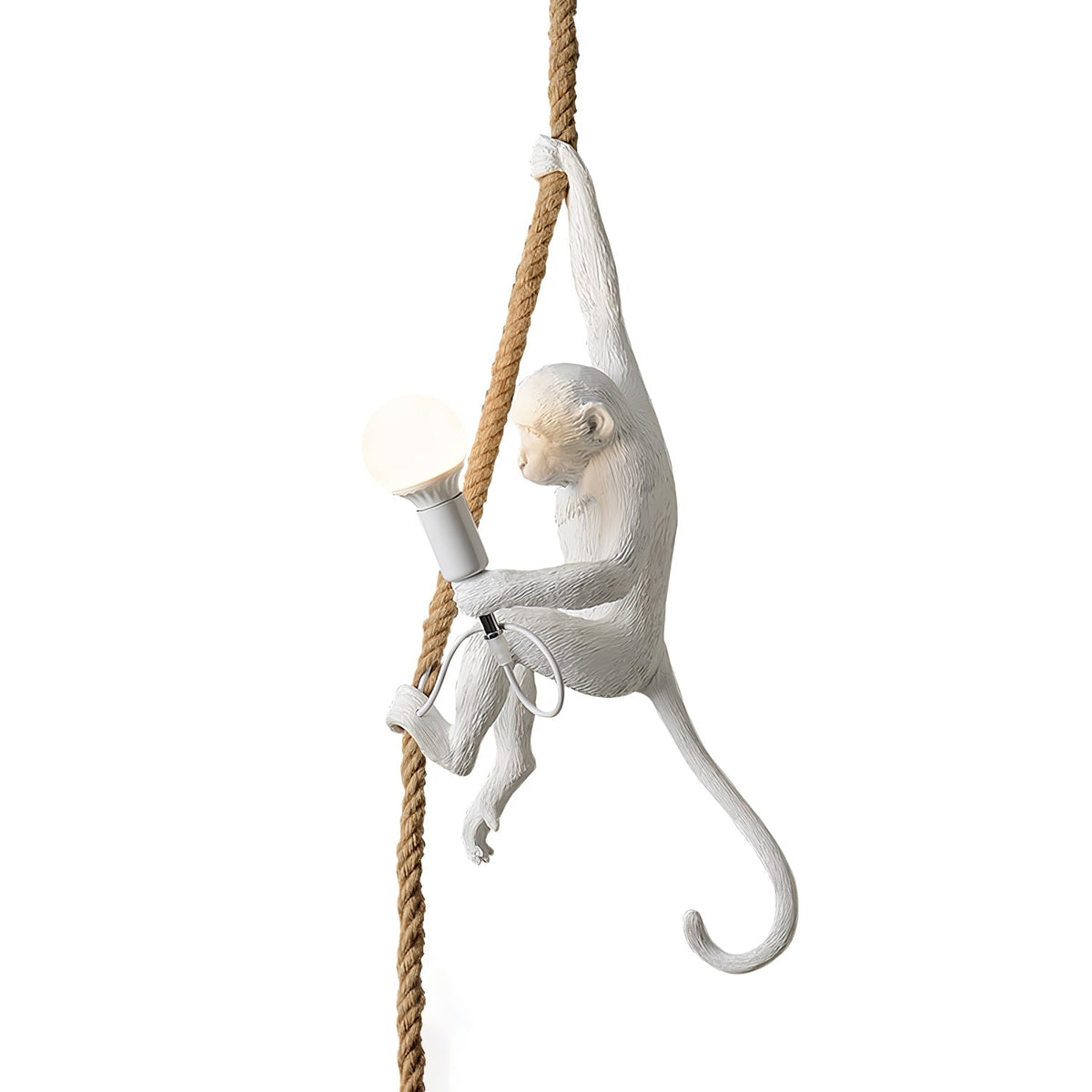 - A little monkey holding a light bulb in one hand and grabbing a rope in the other, the lively design allows you to feel the natural scenery. You can replace the bulb with different appearance, if you have unique needs for the bulb, please note your favorite bulb on the order page, but the base of the bulb must be E26 / E27.