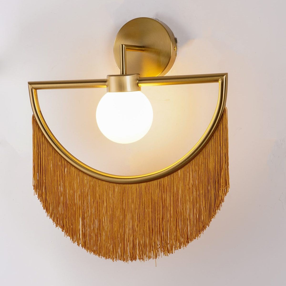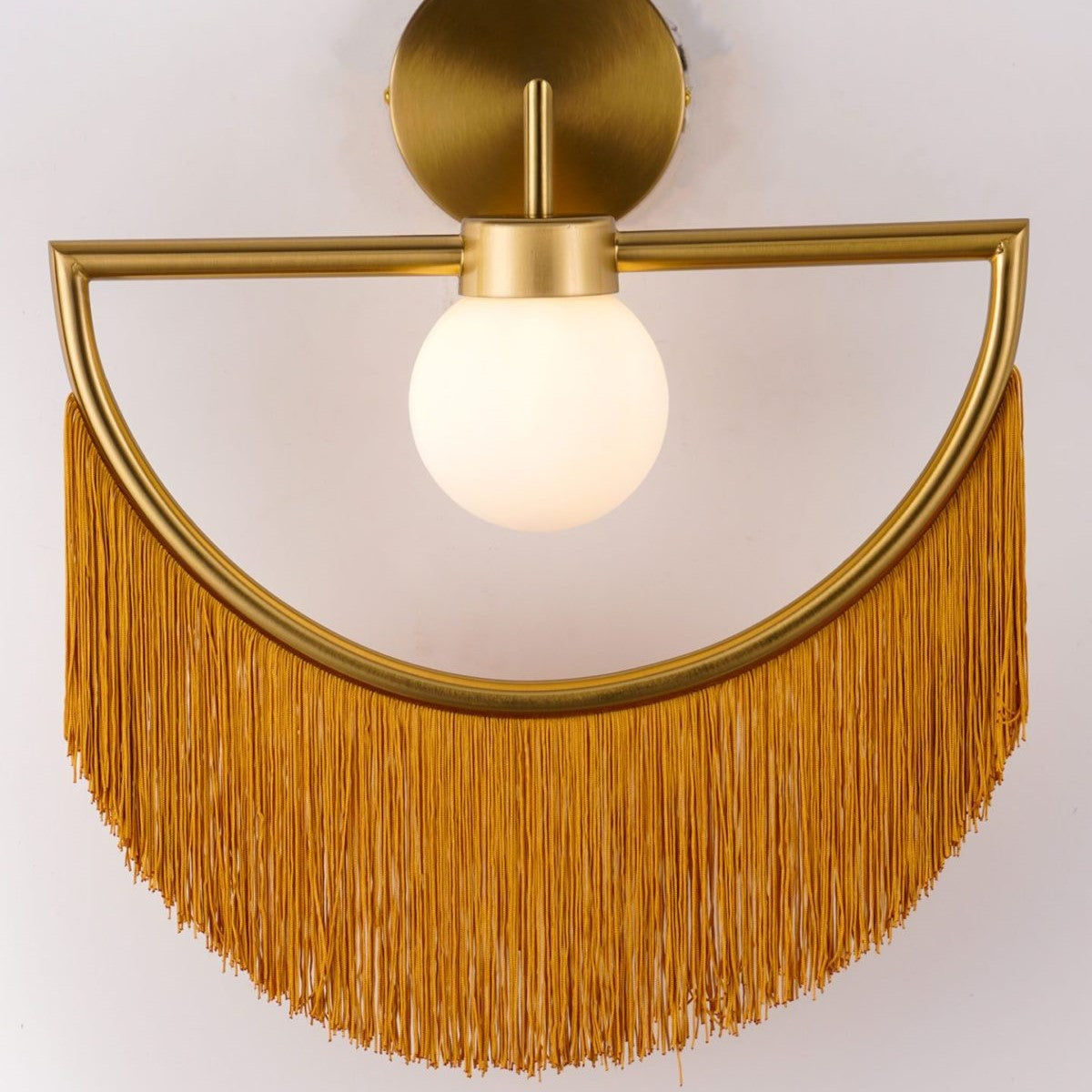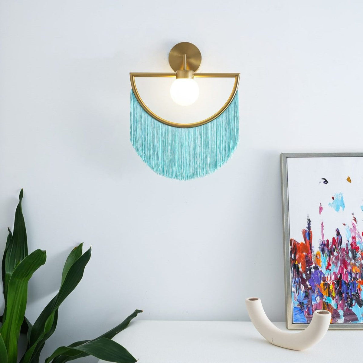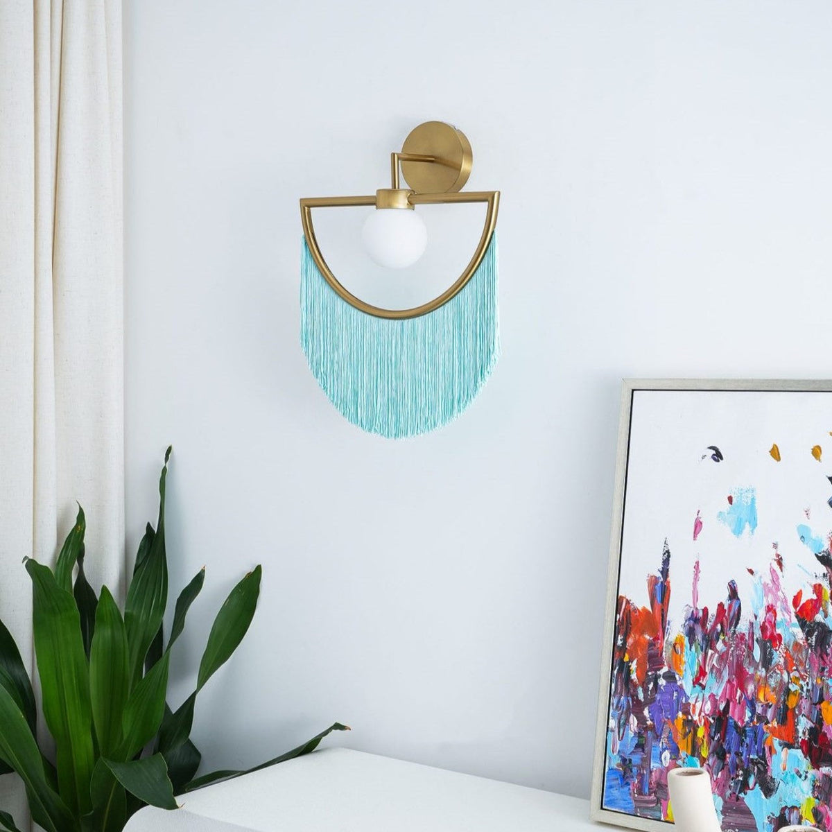 - The tassel lamp shade of the Emerson B Wall Sconce not only enhances its aesthetic appeal but also diffuses light softly, creating a warm and inviting atmosphere. With its versatile design, this fixture complements a variety of decor styles, from modern and minimalist to bohemian and eclectic.