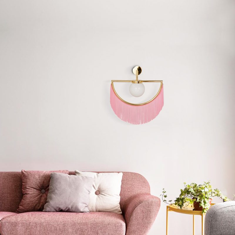 | Specifications1. Fixture Type: Wall Sconces2. Style: Fashion 3. Body Finishes: Brass 4. Shade Finishes: Saffron / Wheat / Cyan / Sakura Pink / Yellow / Black 5. Main Material: Tassel(Shade), Brass(Body) 6. Scenes to be Used: Indoor Only (IP20) 7. Light Source Base: E26 / E27 8. Bulb Included: Yes 9. Number of Bulbs Required: 1 10. Kelvin Range: 3000K 11. Dimmable: Customized 12. Remote Control: Customized 13. Voltage: AC 110V-240V 14. Warranty: Two Years 15. Assembly Required: Yes 16. Installation Required: Yes 17. Sloped Ceiling Compatible: N/A 18. Adjustable Length: No 19. Wiring: Hardwired 20. Product Care: Wipe clean with dry cloth |