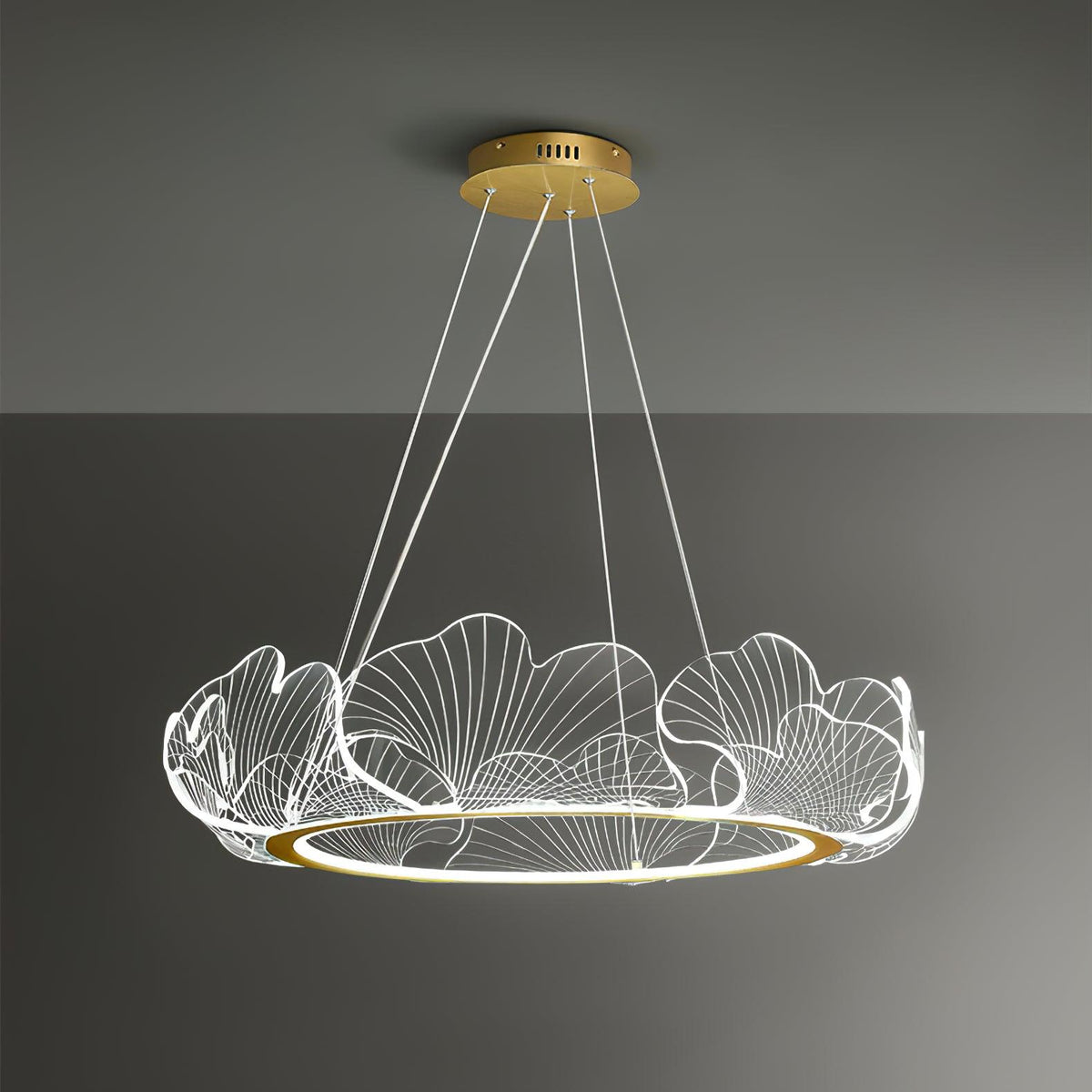 - Lavern Wavy Chandelier has LED strips mounted on a metal ring with an acrylic light guide to direct the light up to the ceiling. Athough it doesn't have any shades, the light is still very soft.