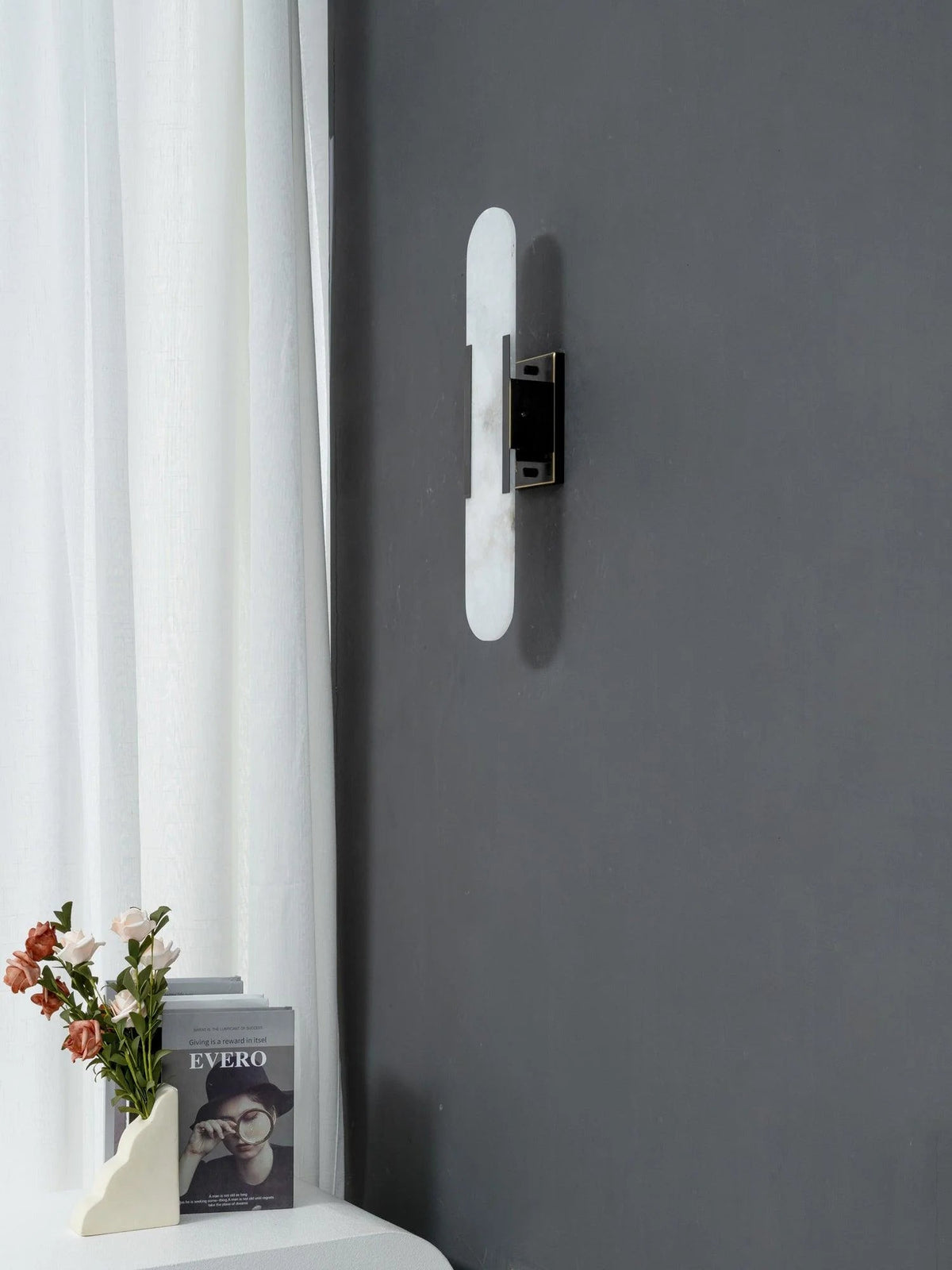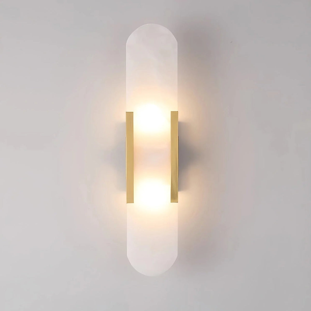 - The Lawernce Elongated Sconce casts a warm, diffused glow through its hand-carved alabaster shades, creating a soft, ethereal ambiance on surrounding walls and surfaces. The elegant, elongated form gracefully softens the edges of angular or minimalist spaces, adding a touch of refined sophistication.