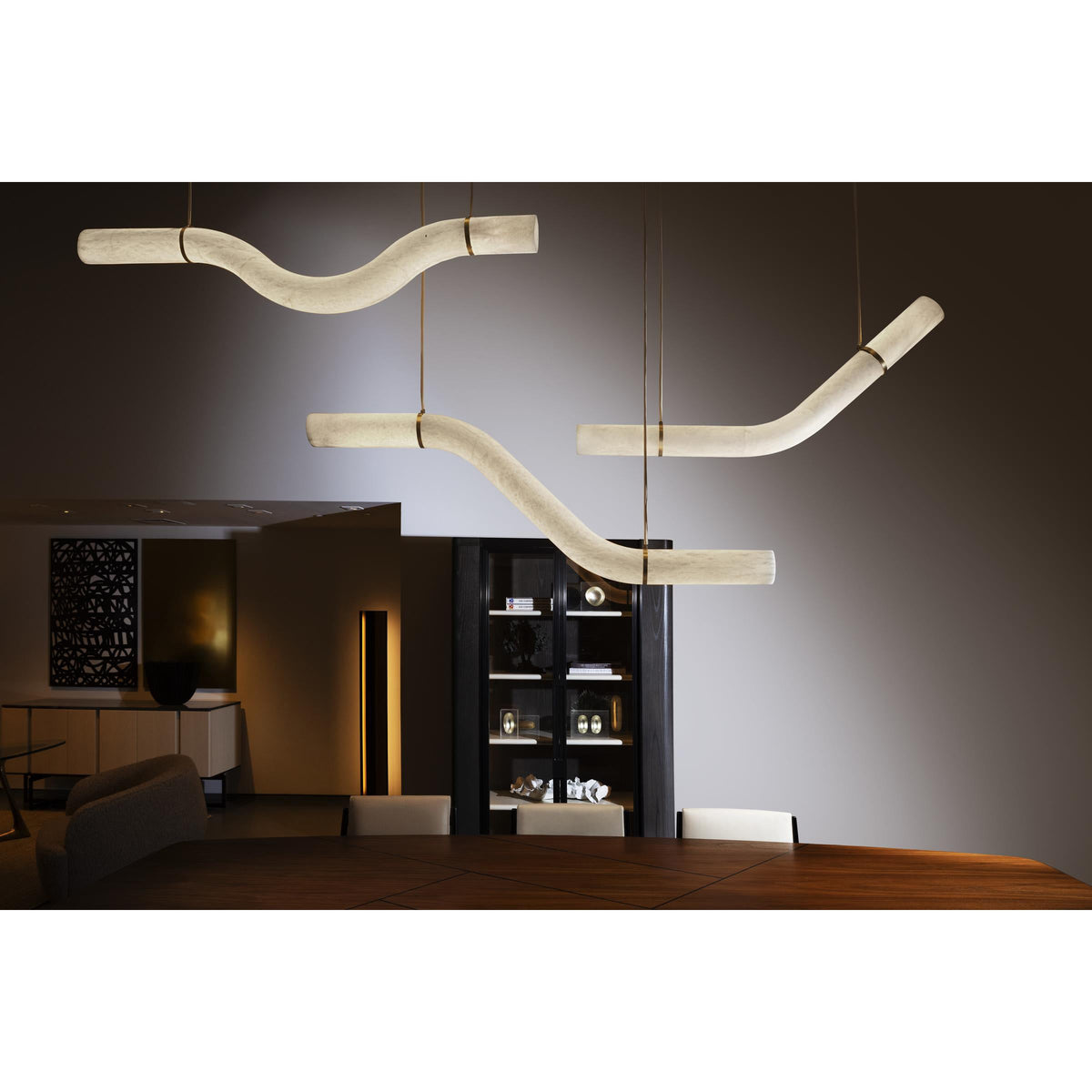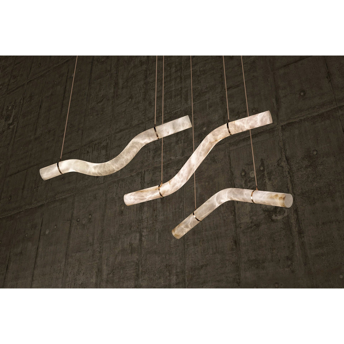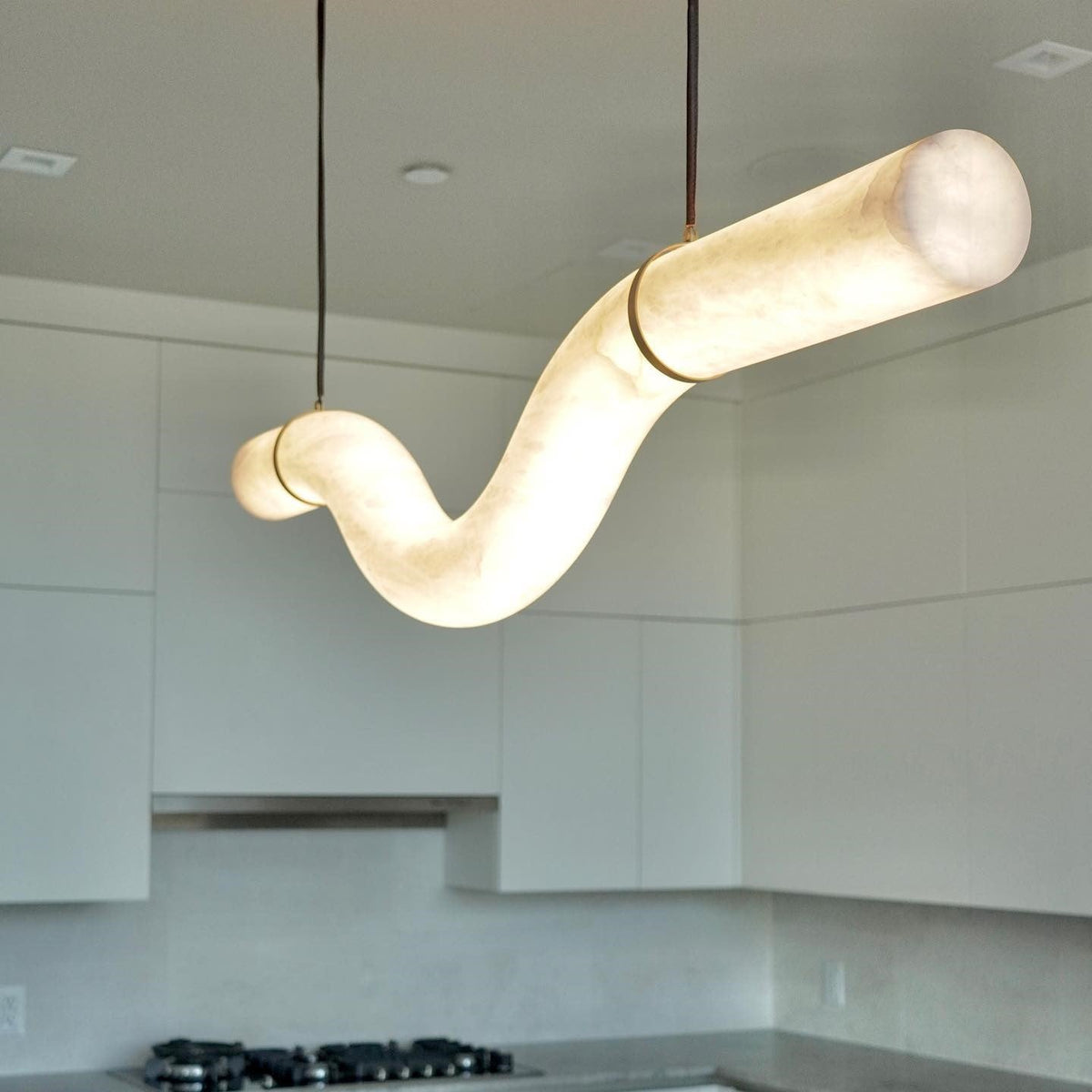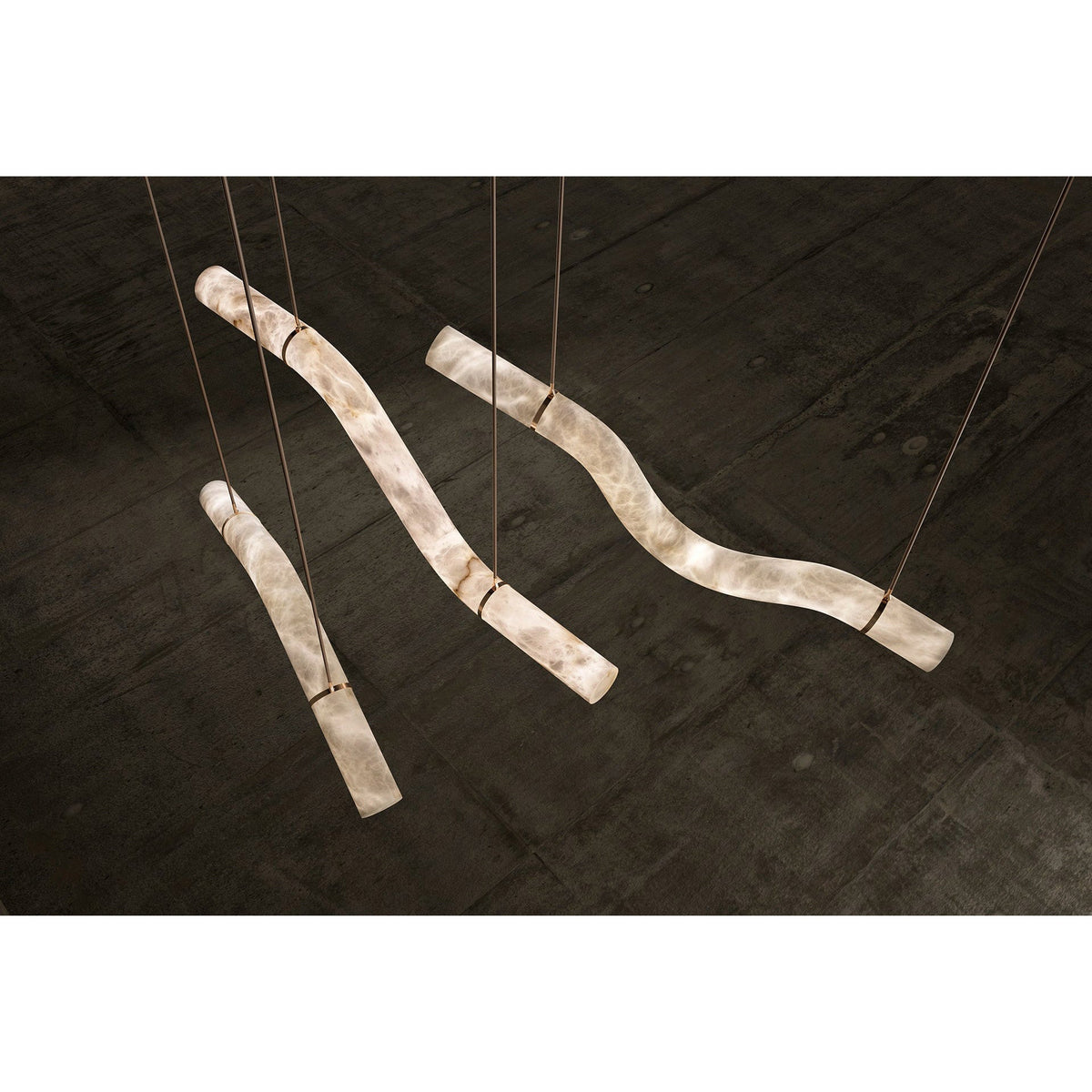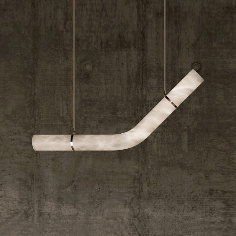 - Crafted from elegant alabaster tubes, these pendants cast a warm, inviting glow, illuminating your space with a soft, diffused light. Their powerful yet simple geometrical contours invite you to assemble, compose, and combine them to create stunning light sculptures that reflect your unique style.