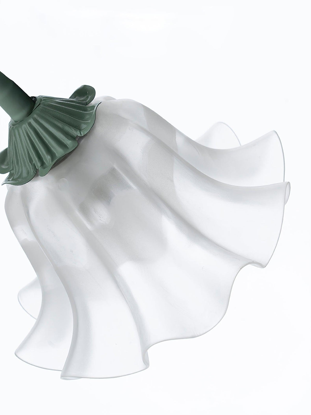 - A small, fresh style pairing that is currently sought after by many, the body of Lily of the Valley Chandelier is coated in matte green with a white acrylic shade that exudes a natural feel.