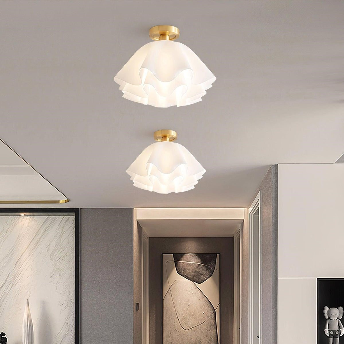 - Ideal for hallways, living rooms, or bedrooms, the Livia Flush Mount Lighting offers versatile placement options, making it a timeless addition to your home. Its minimalist aesthetics make it an excellent choice for both modern and traditional interiors, providing a seamless complement to your existing decor.