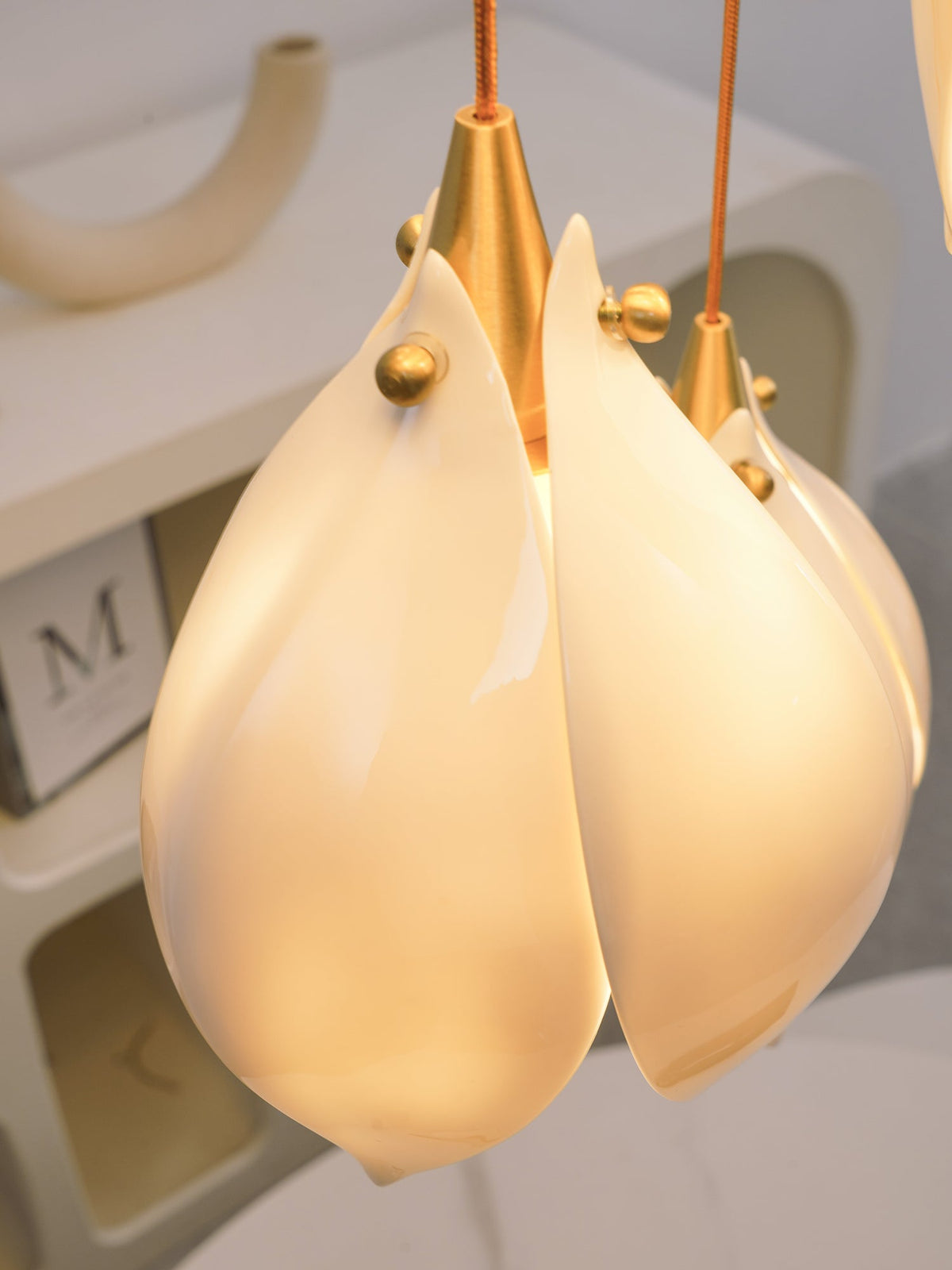 - The Lola Ceramic Pendant Lighting uses two petals as a lampshade, we eschewed the traditional crystal material to create the light effect, and instead used cream-colored ceramic.