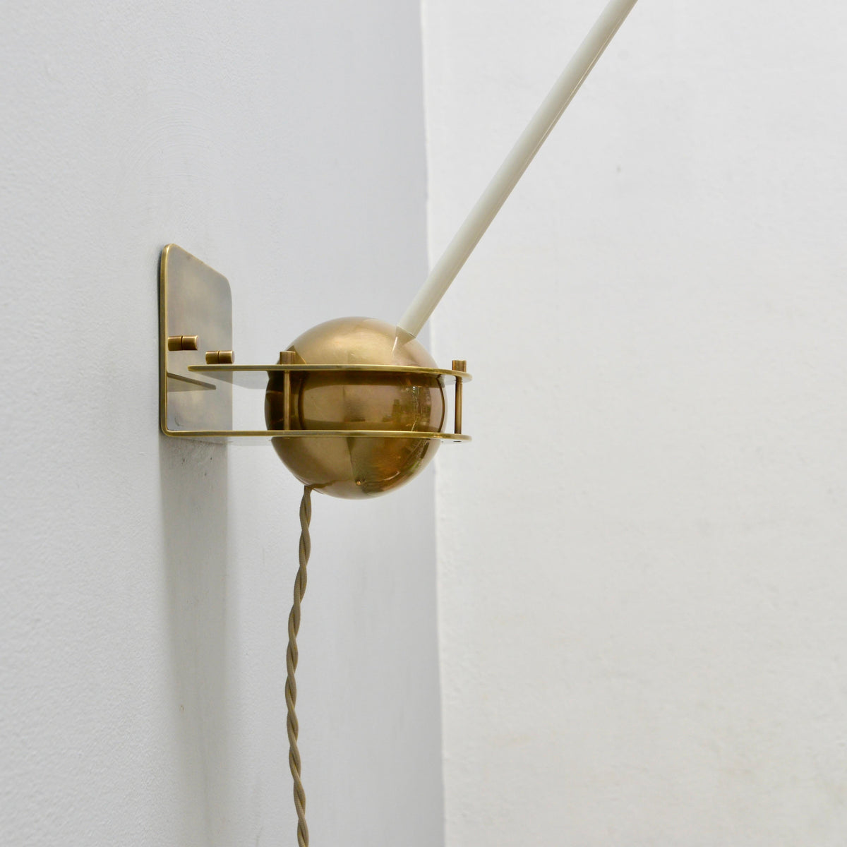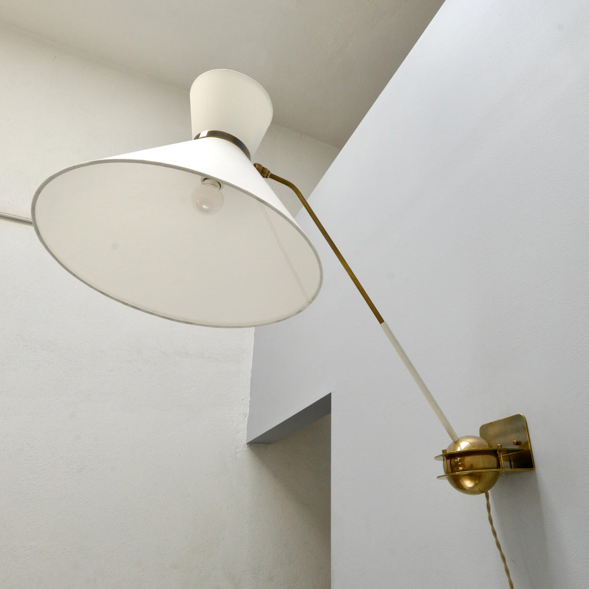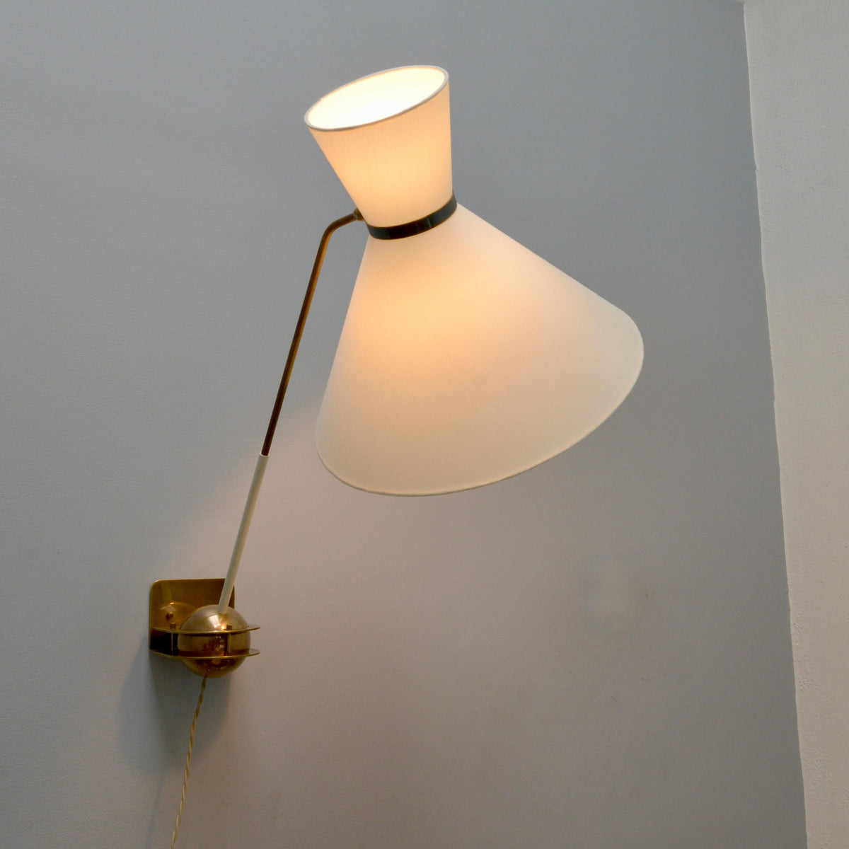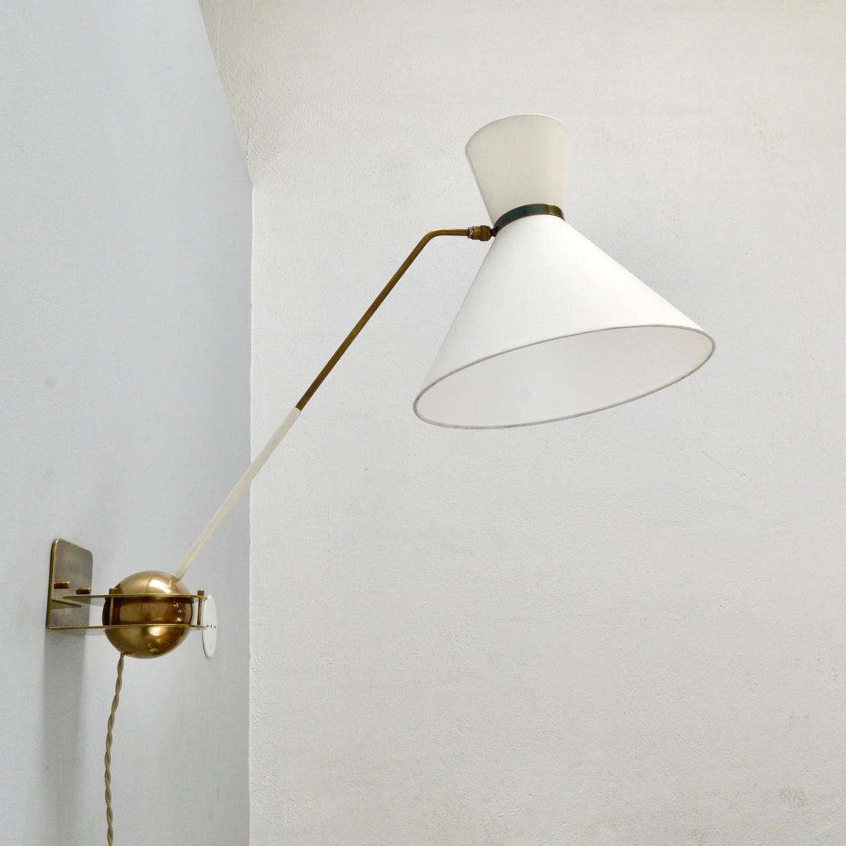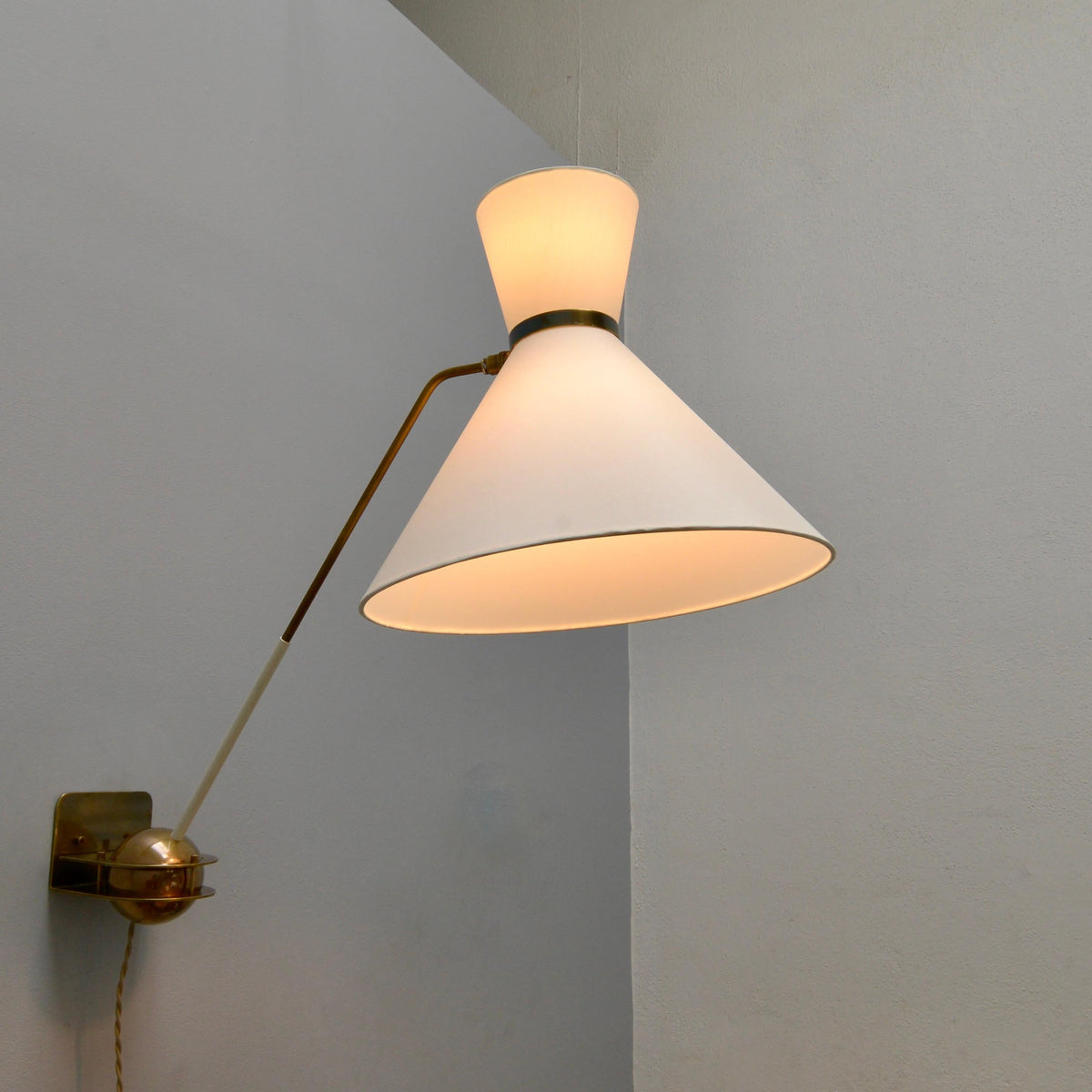 - The sconce features a generously proportioned, neutral fabric shade that creates a beautifully soft and diffused glow, perfect for crafting a warm and inviting atmosphere in any room. What truly sets it apart is its stunning articulating hardware in a rich, patinated brass finish. This versatile arm allows you to direct light exactly where you need it, adding both function and a dynamic sculptural element to your wall.