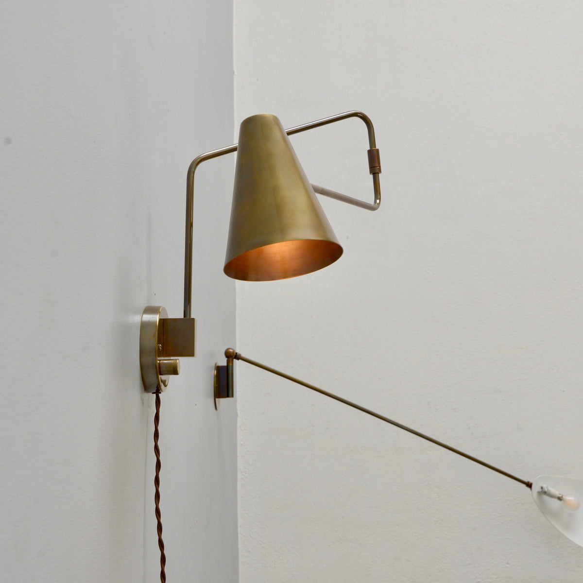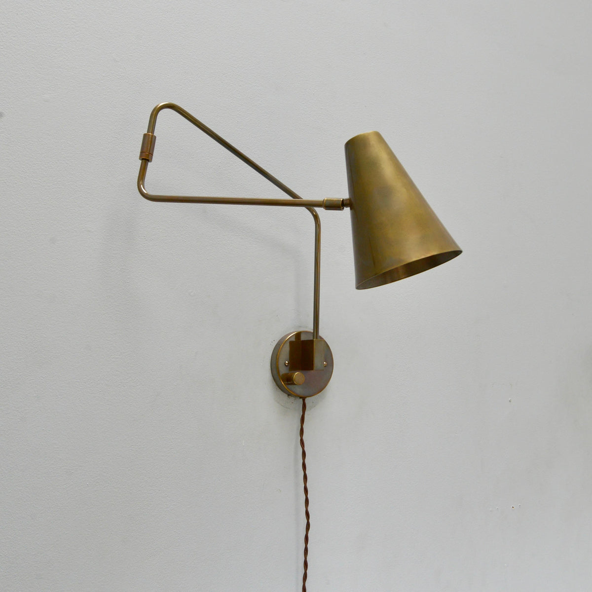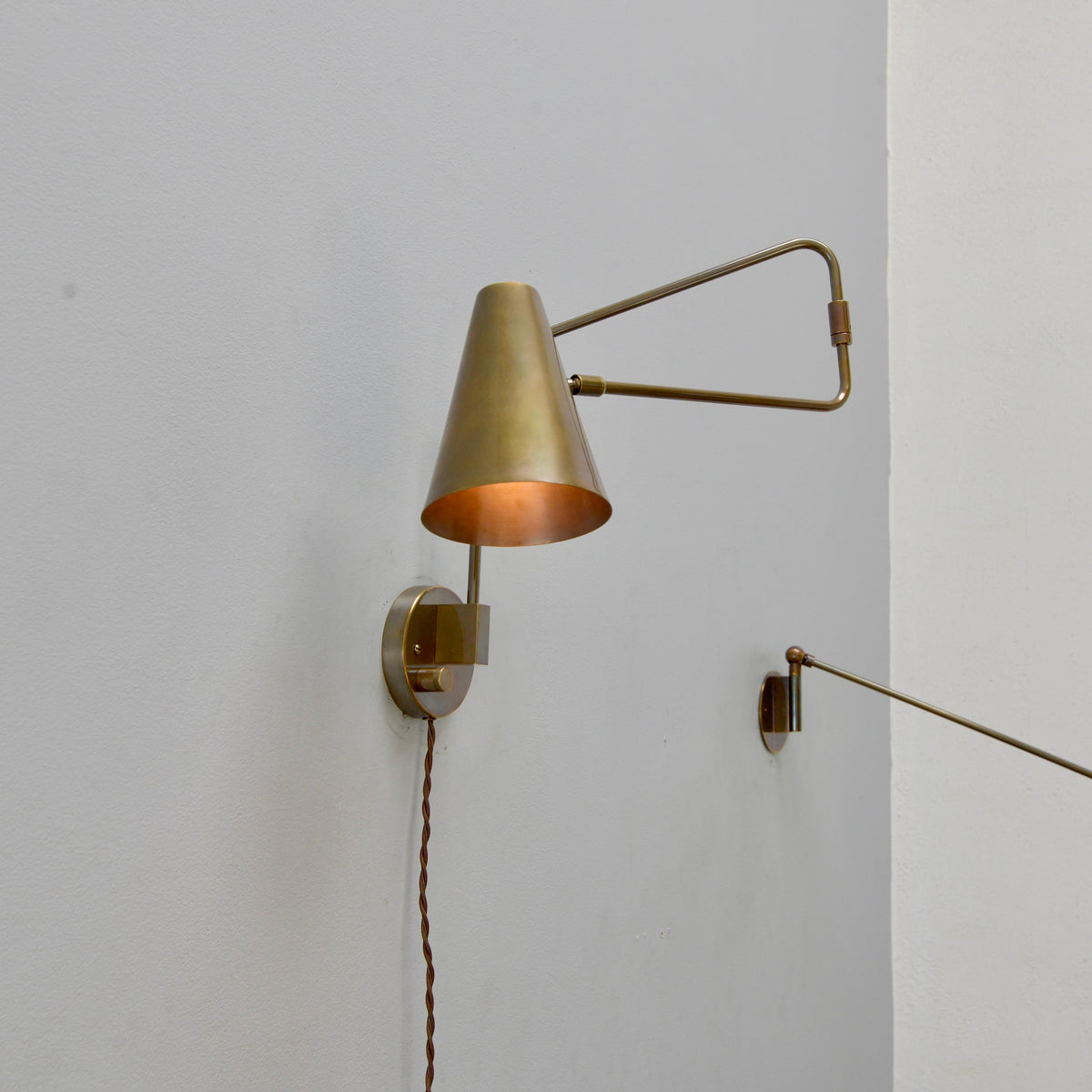 - Meet the LU Swing Sconce, where timeless art deco inspiration meets unparalleled modern functionality. Crafted in beautifully patinated brass and featuring a convenient plug-in design, this is more than a light—it’s a movable piece of art that puts you in complete control of your ambiance.