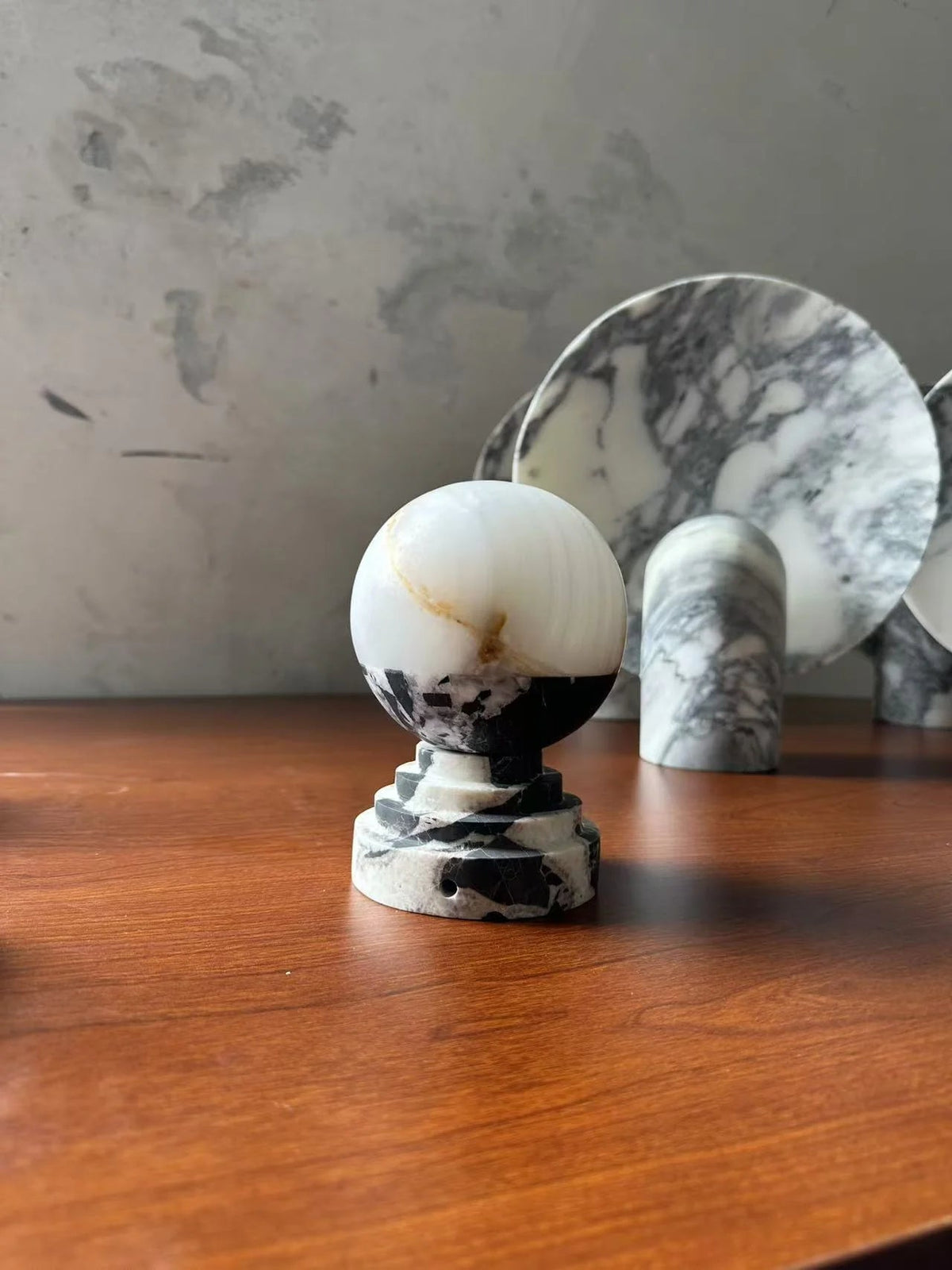 - The hand-blown white onyx spherical diffuser emits a soft, ambient glow, highlighting the stone’s delicate natural veins, while the G9 LED bulb ensures energy-efficient, warm lighting. Each piece is a unique masterpiece, available in three exquisite marble variants: