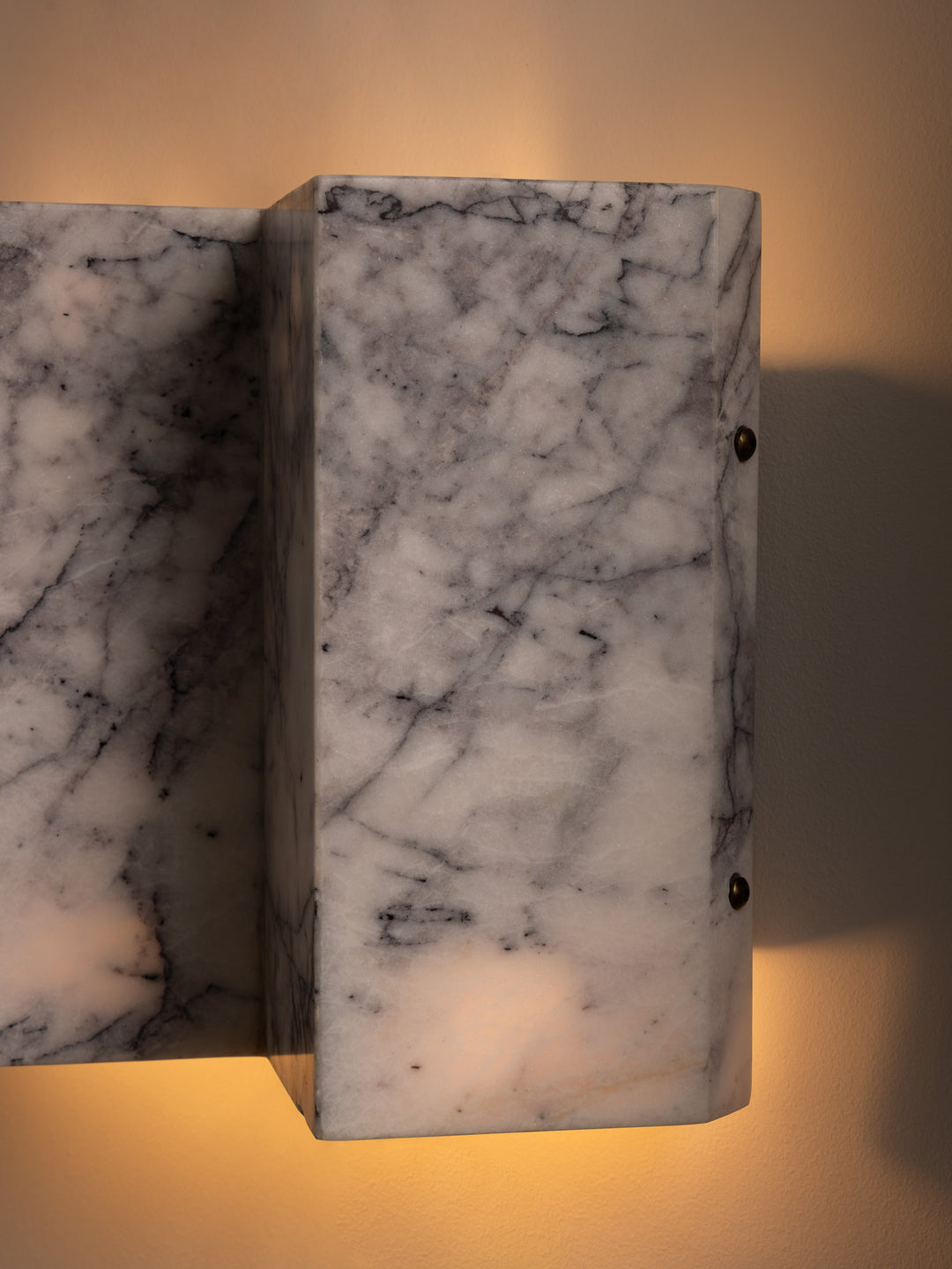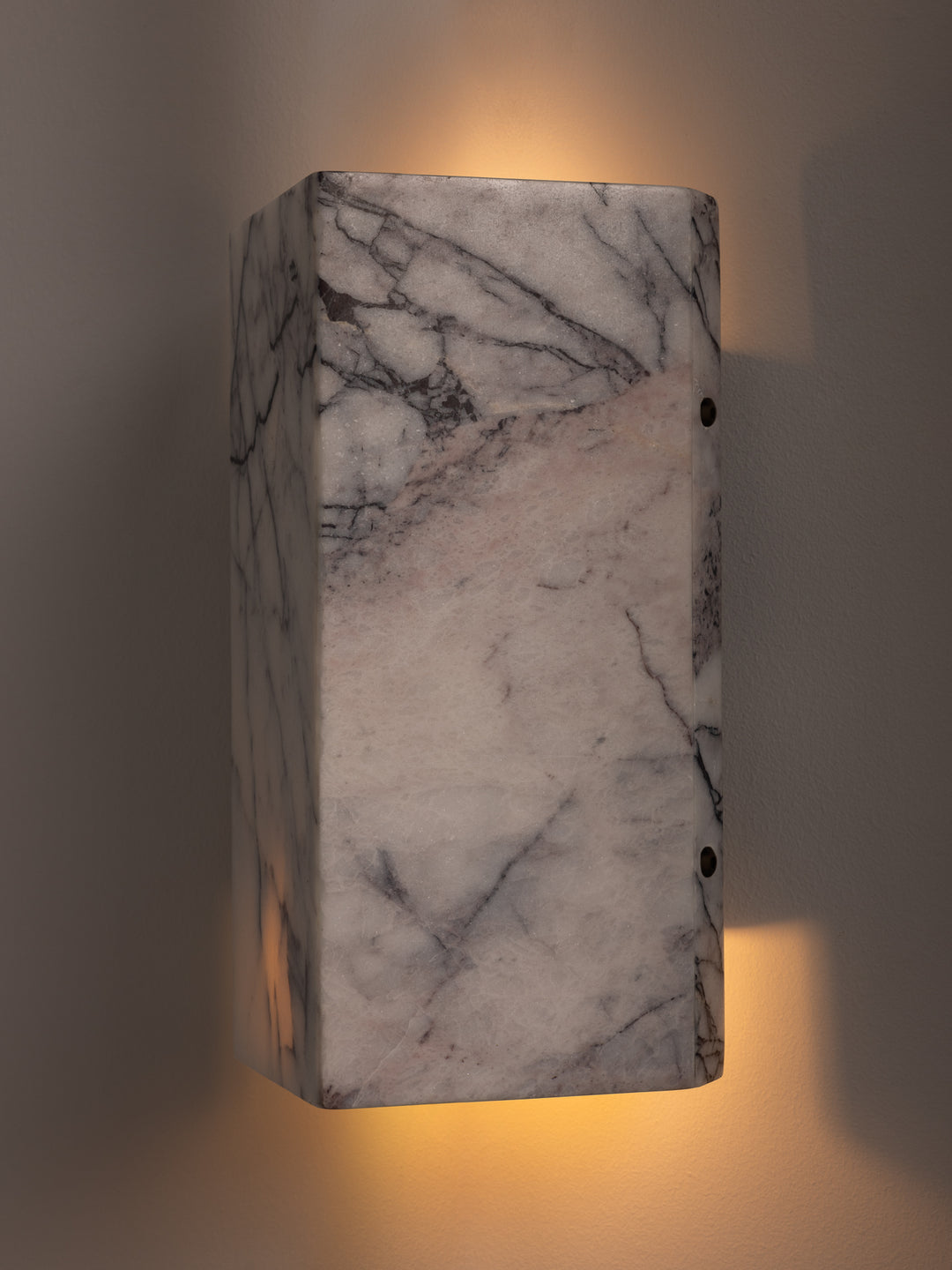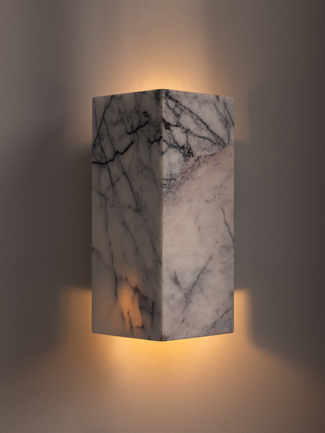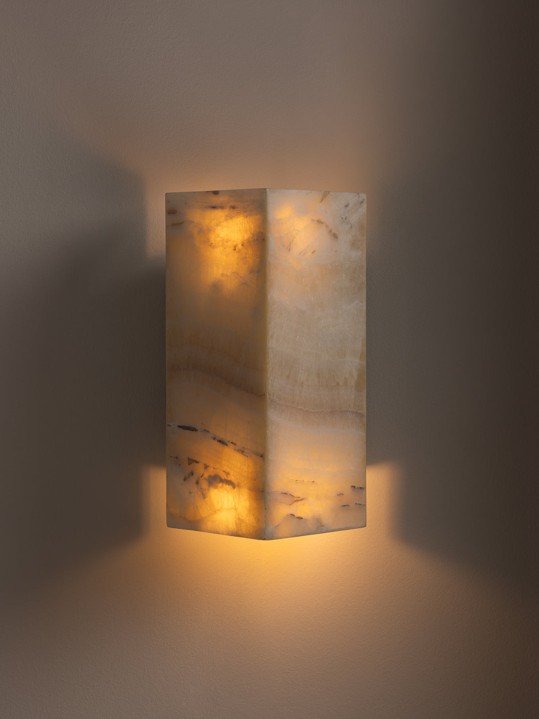 - Crafted from nature's finest art, each Maisy sconce is available in genuine Marble or Onyx. This means every piece is essentially unique, with a landscape of stone as inimitable as your own fingerprint. It’s a fusion of raw, romantic beauty and enduring, chic style that stands the test of time.