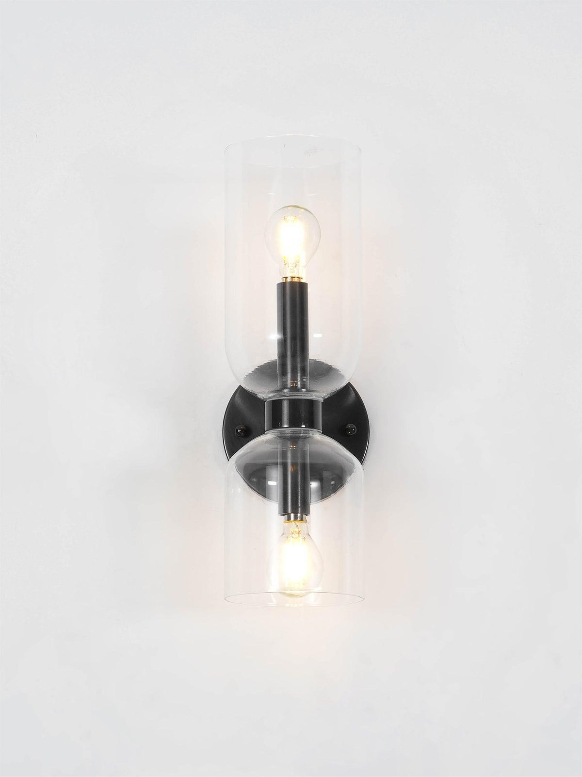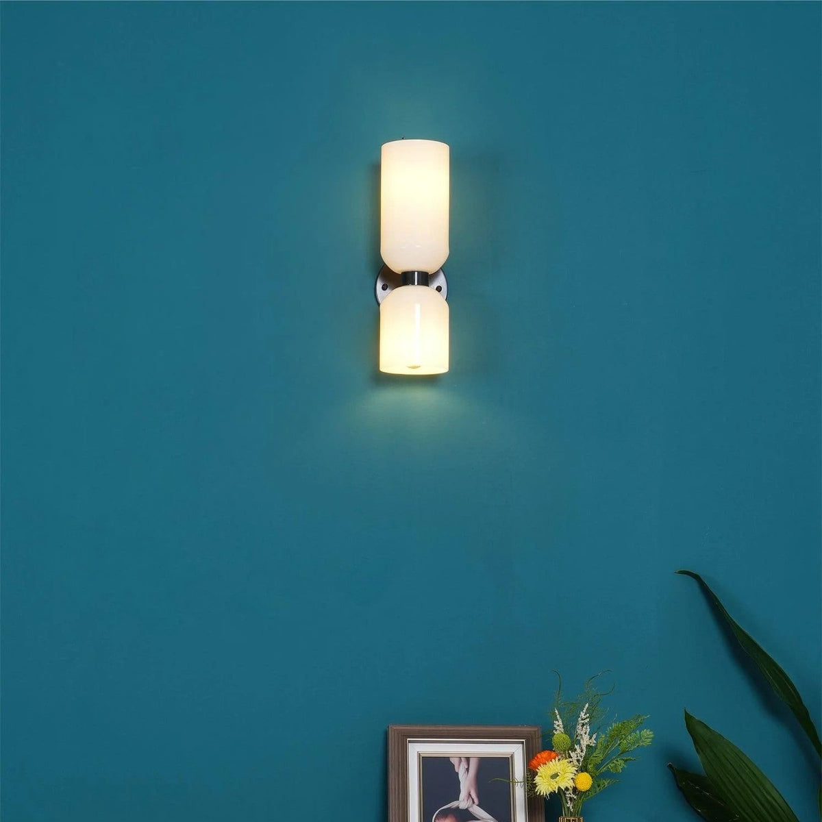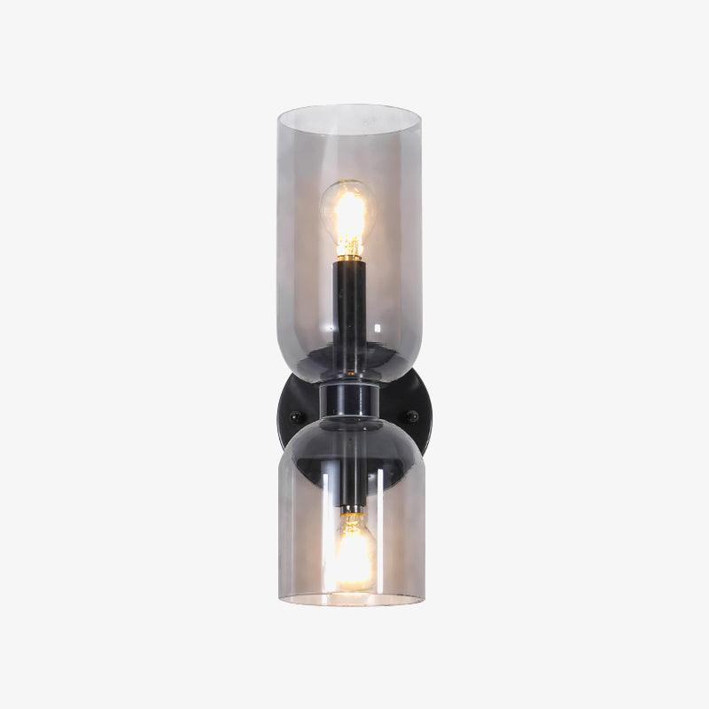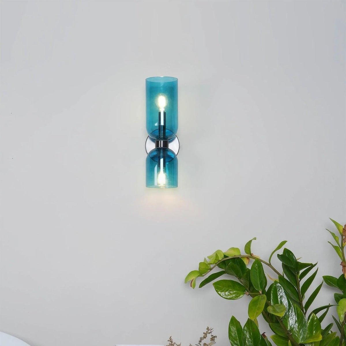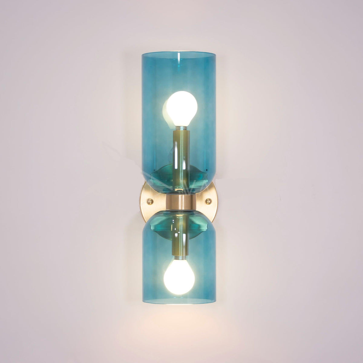 - Mccloy Wall Scone features a creative top and bottom asymmetrical cylinder, you can choose to face this lamp on the wall at your preferred angle before installation. Multiple colors of glass shades are available to match your home in different styles.