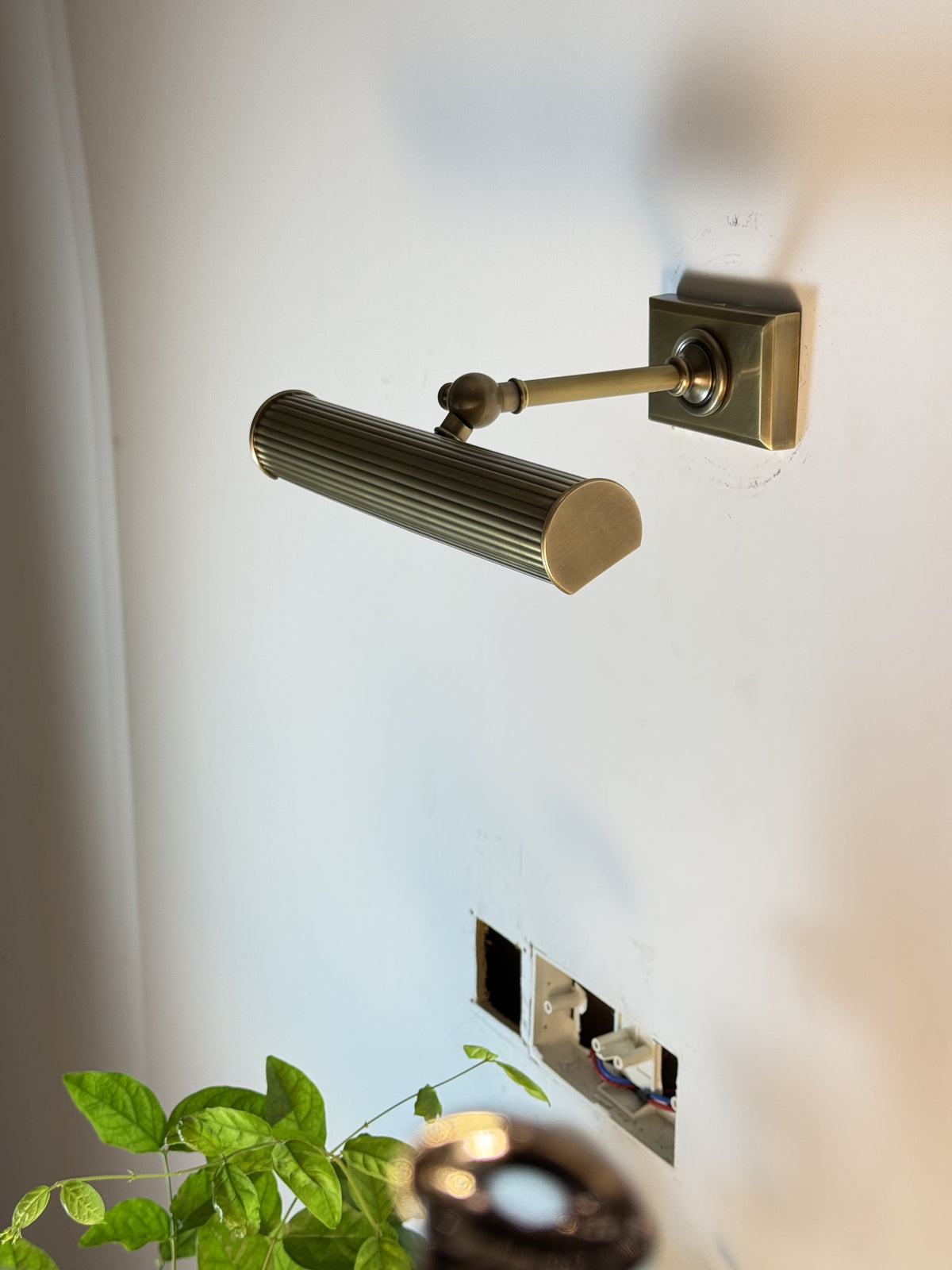 - We believe the details matter as much in the frame as they do on the canvas. That’s why the Amelia is forged from real, solid brass, hand-finished to achieve a rich, aged patina. The distinctive ribbed detailing adds a layer of texture and depth, echoing the craftsmanship of a bygone era while delivering modern, gallery-quality illumination. This is a piece designed to be admired even when switched off.