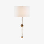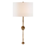 - Elevate your interior with the Carey Rail Sconce, a masterful blend of timeless materials and sophisticated design. Featuring a gracefully sculpted solid brass stem with a delicate metallic sheen, this sconce is anchored by an elegant spherical detail. The soft, natural linen shade diffuses light to create a warm and tranquil glow, perfect for relaxing spaces. Seamlessly marrying retro charm with a modern silhouette, the Carey Sconce adds a touch of refined elegance to any room.