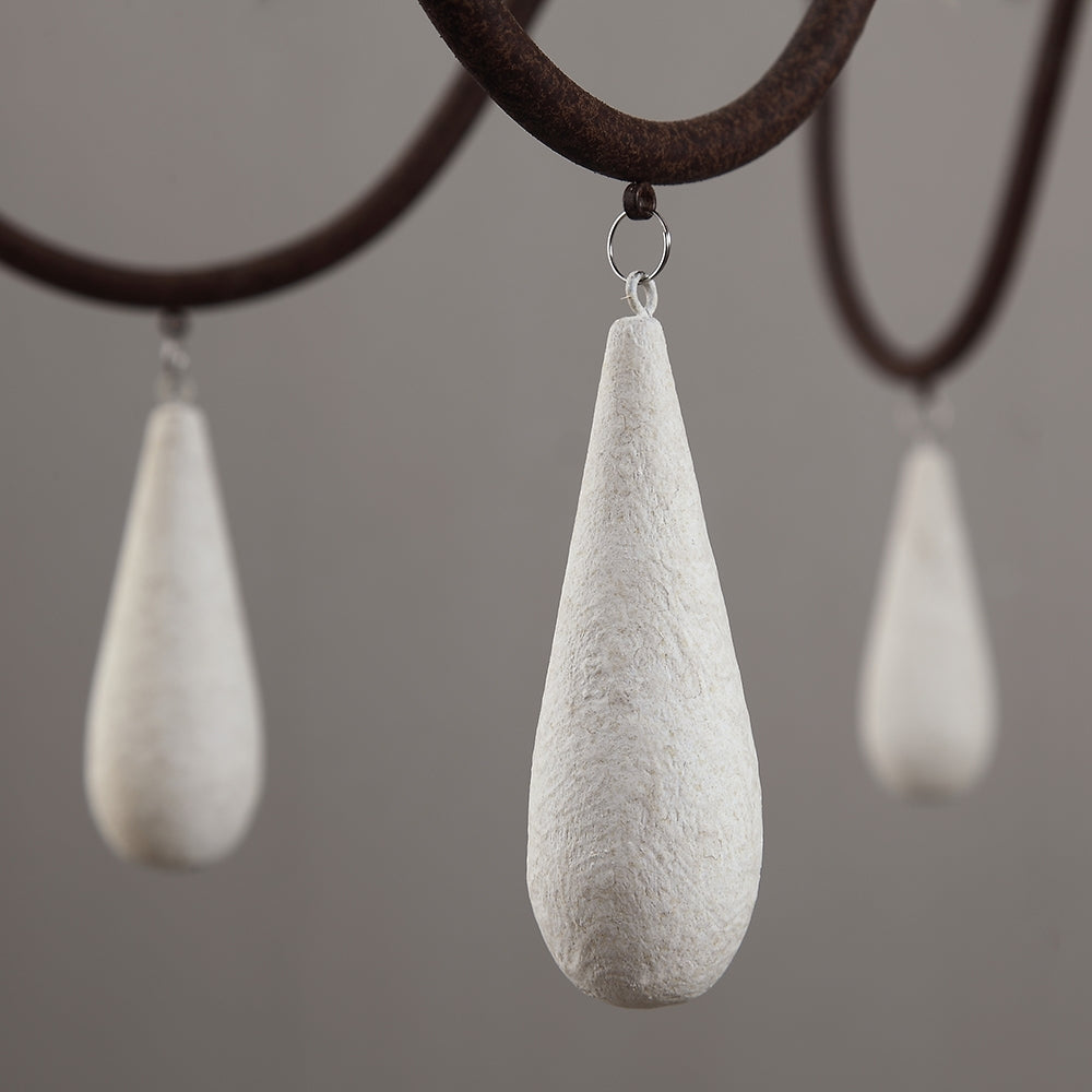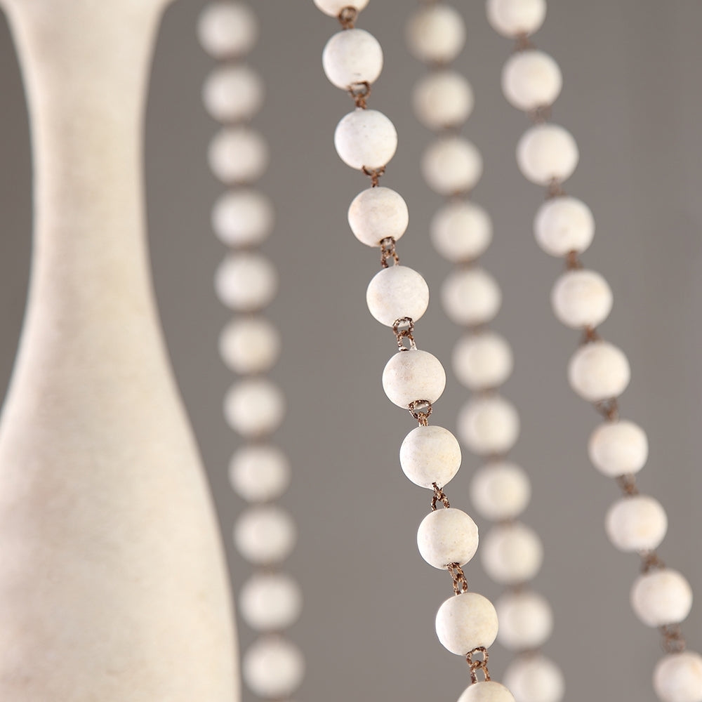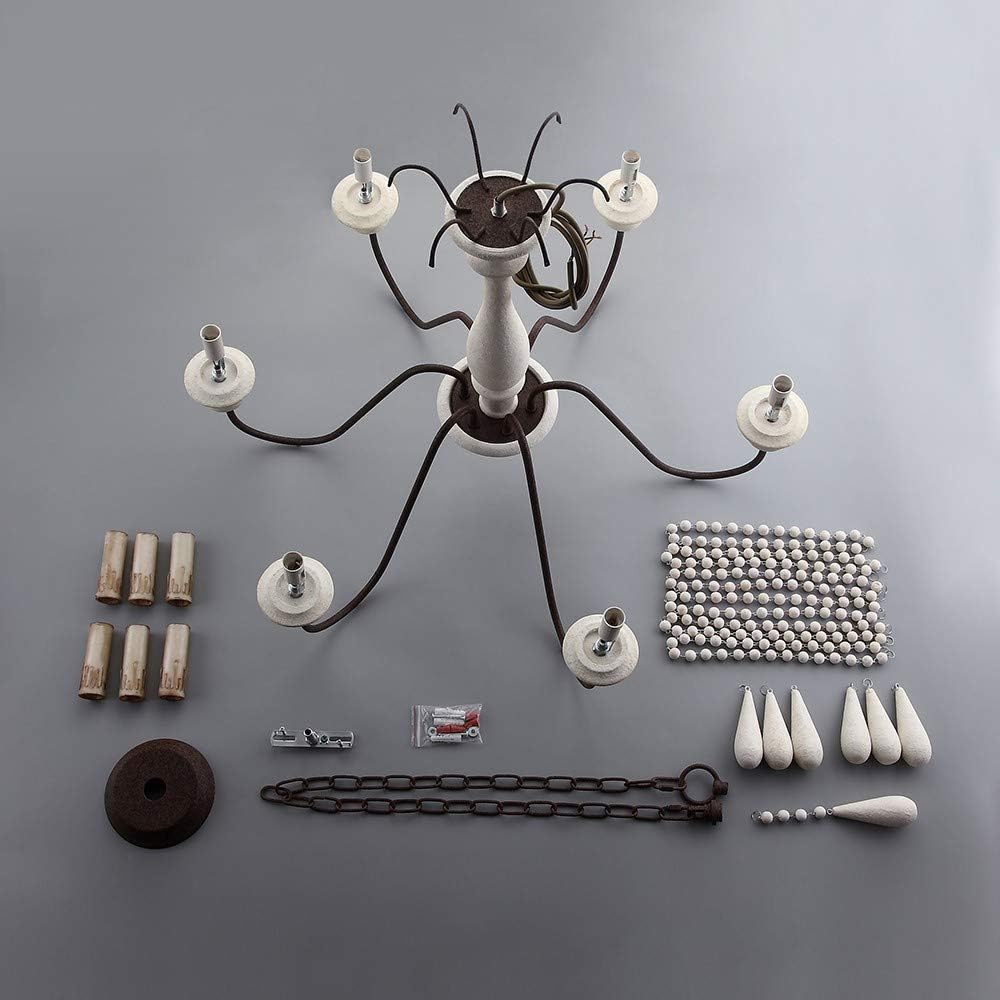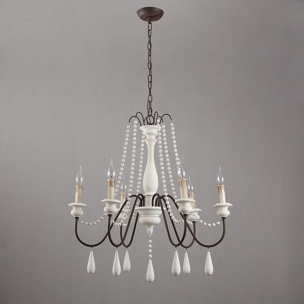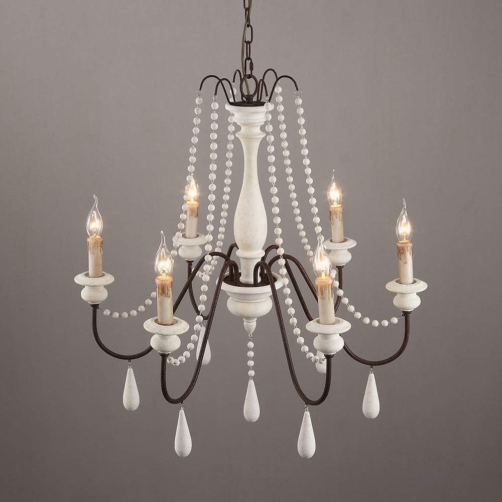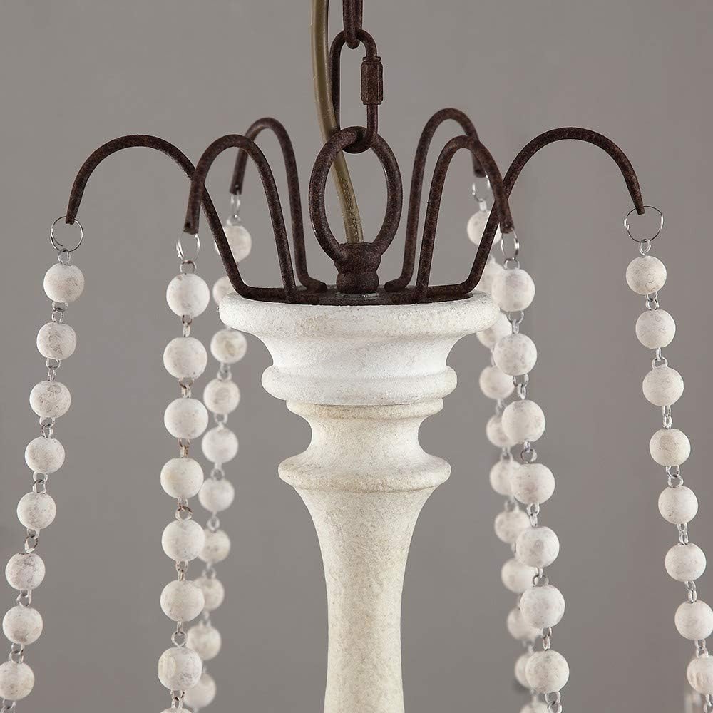 - This elegant Farmhouse Beaded Chandelier adds a touch of timeless charm to any space. Featuring gracefully scrolling arms adorned with strands of wooden beads, this chandelier creates a captivating and inviting atmosphere. Dangling teardrop ornaments echo the natural theme, completing the look with a touch of rustic elegance. The combination of heavy, rust-toned metal and distressed wood creates a warm and inviting contrast that perfectly complements farmhouse, rustic, and cottage-style decor.
