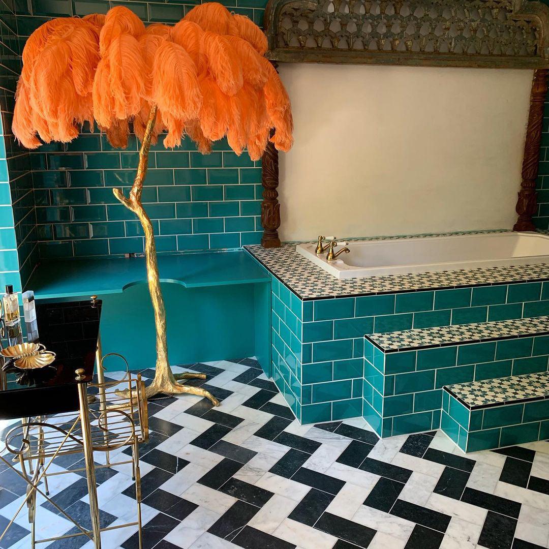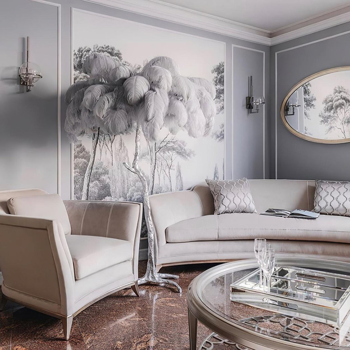 - A floor lamp made from real ostrich feathers, want to bring the flavor of the African land to your space, try Ostrich Feather Brass Floor Lamp! We hand color each ostrich feather, when the light hits the feathers is extremely fascinating.