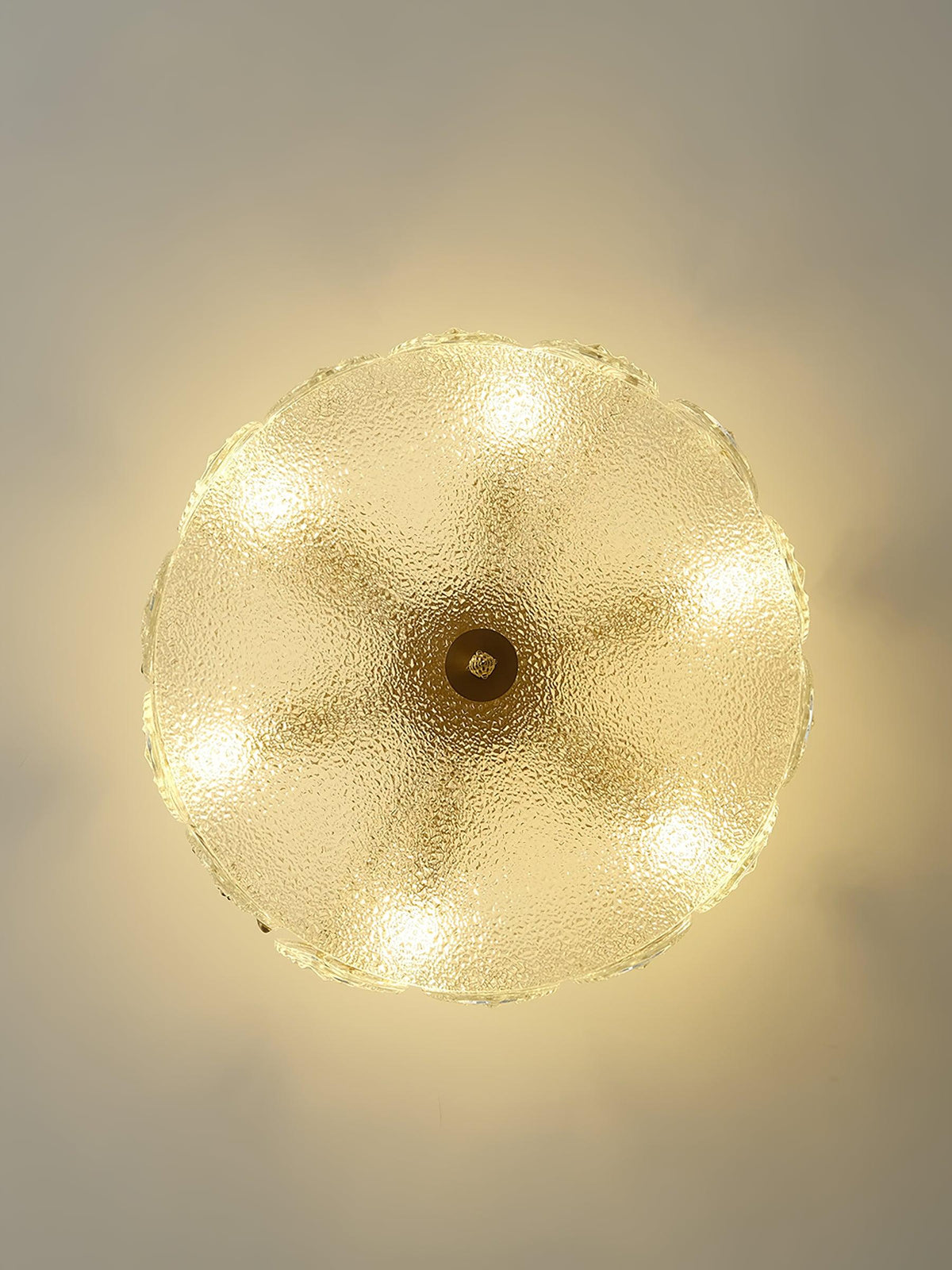 - Fickle Chandelier is surrounded by multiple shades made of hand-forged glass. A large round glass at the bottom gives the light a crystal light effect.