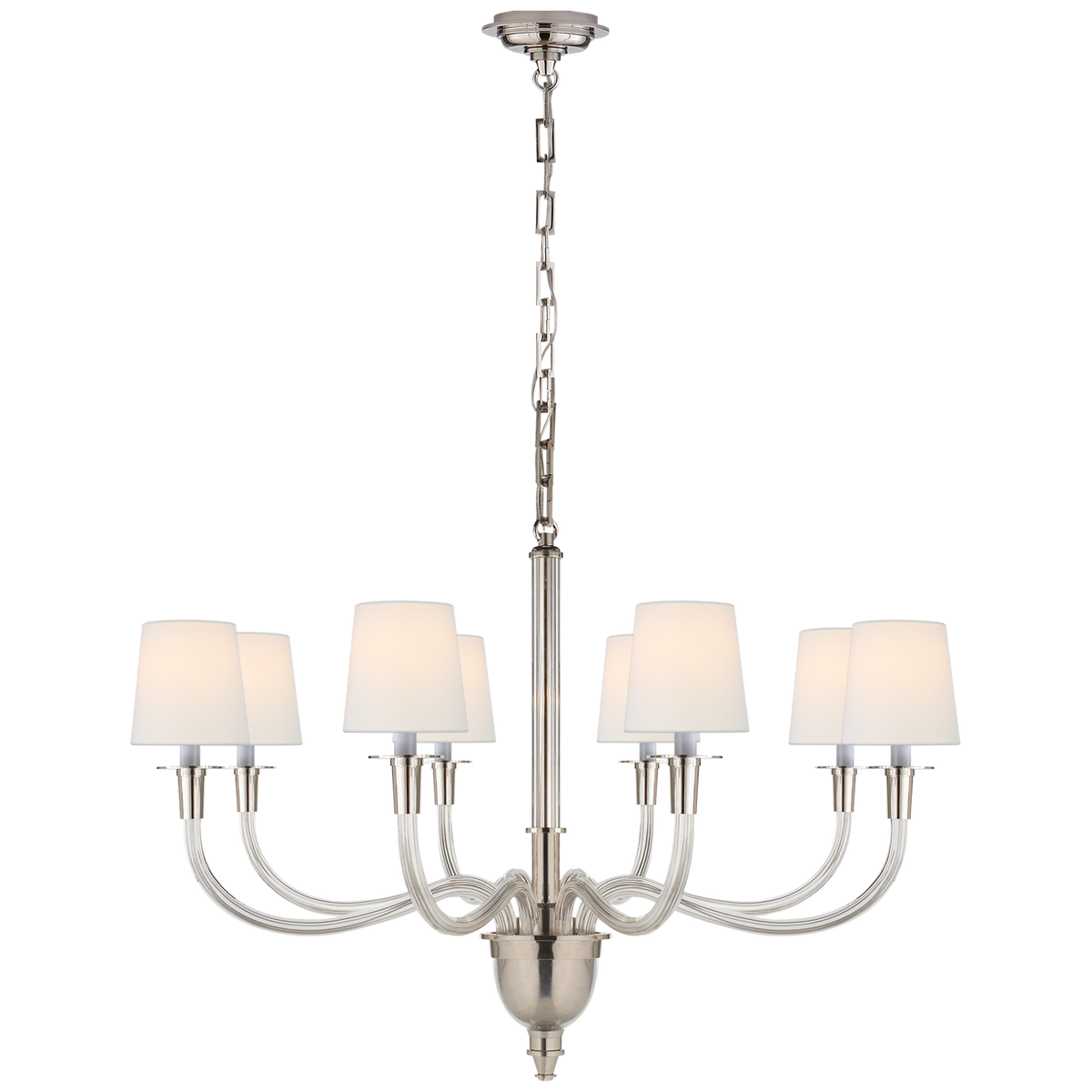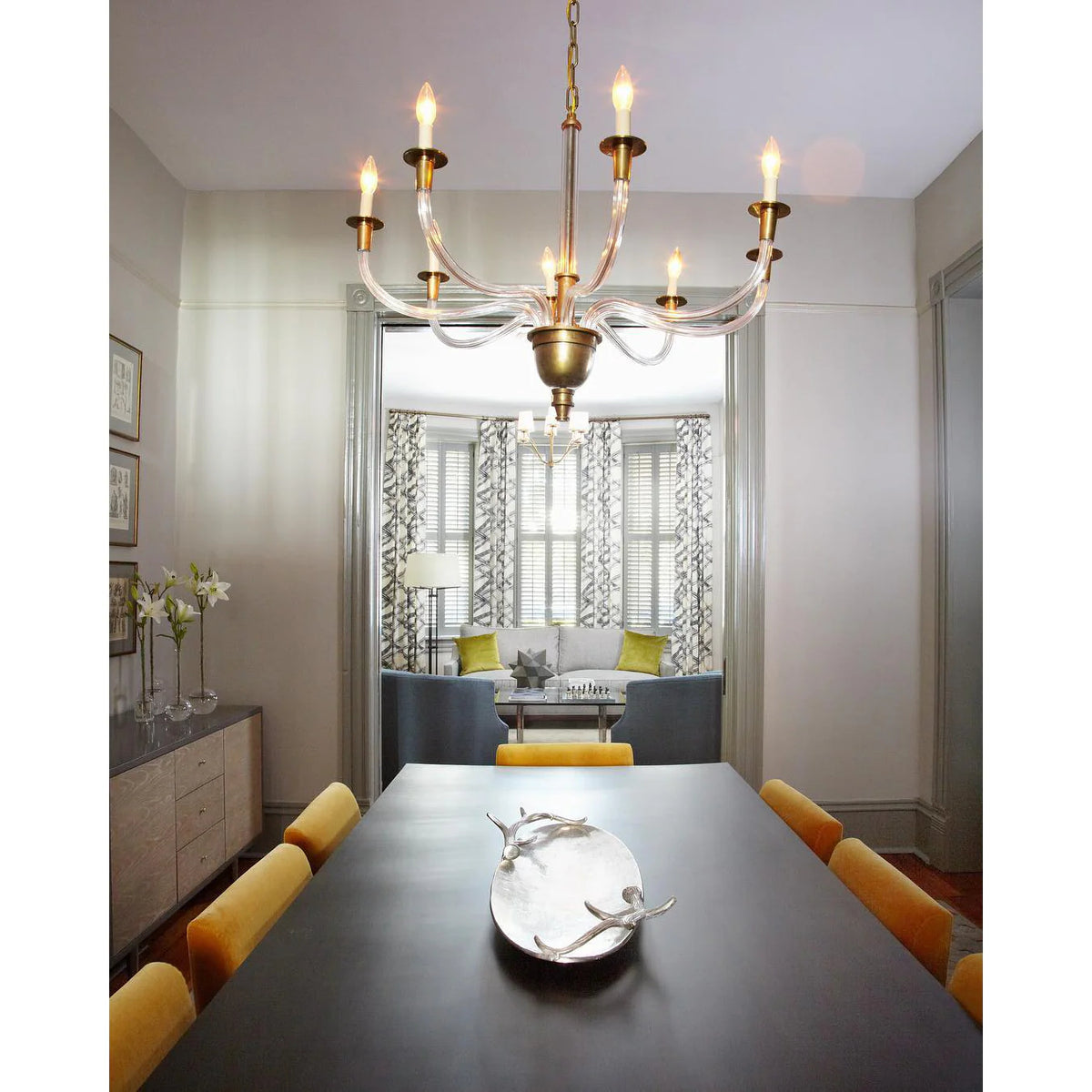 - Elevate your space with the Getts Chandelier, a stunning fusion of curved crystal and sleek metal that exudes effortless sophistication. This exquisite fixture features sinuous lines and a refined silhouette, creating a harmonious balance of modern elegance and timeless charm. The interplay of light through the delicate crystal accents adds a captivating glow, while the polished metal frame ensures a chic, contemporary statement.