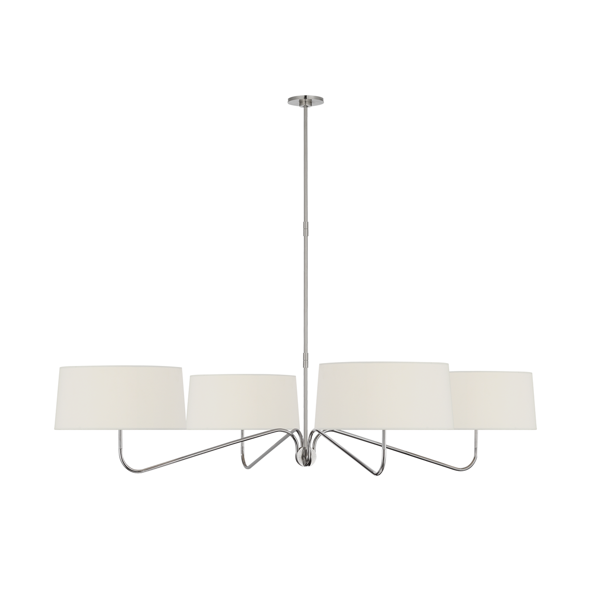 - The Loyce Chandelier brings a clean simplicity to your interior space. Its smooth, curved arms gracefully hold slightly tapered round shades, creating a visually striking and elegant silhouette.