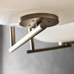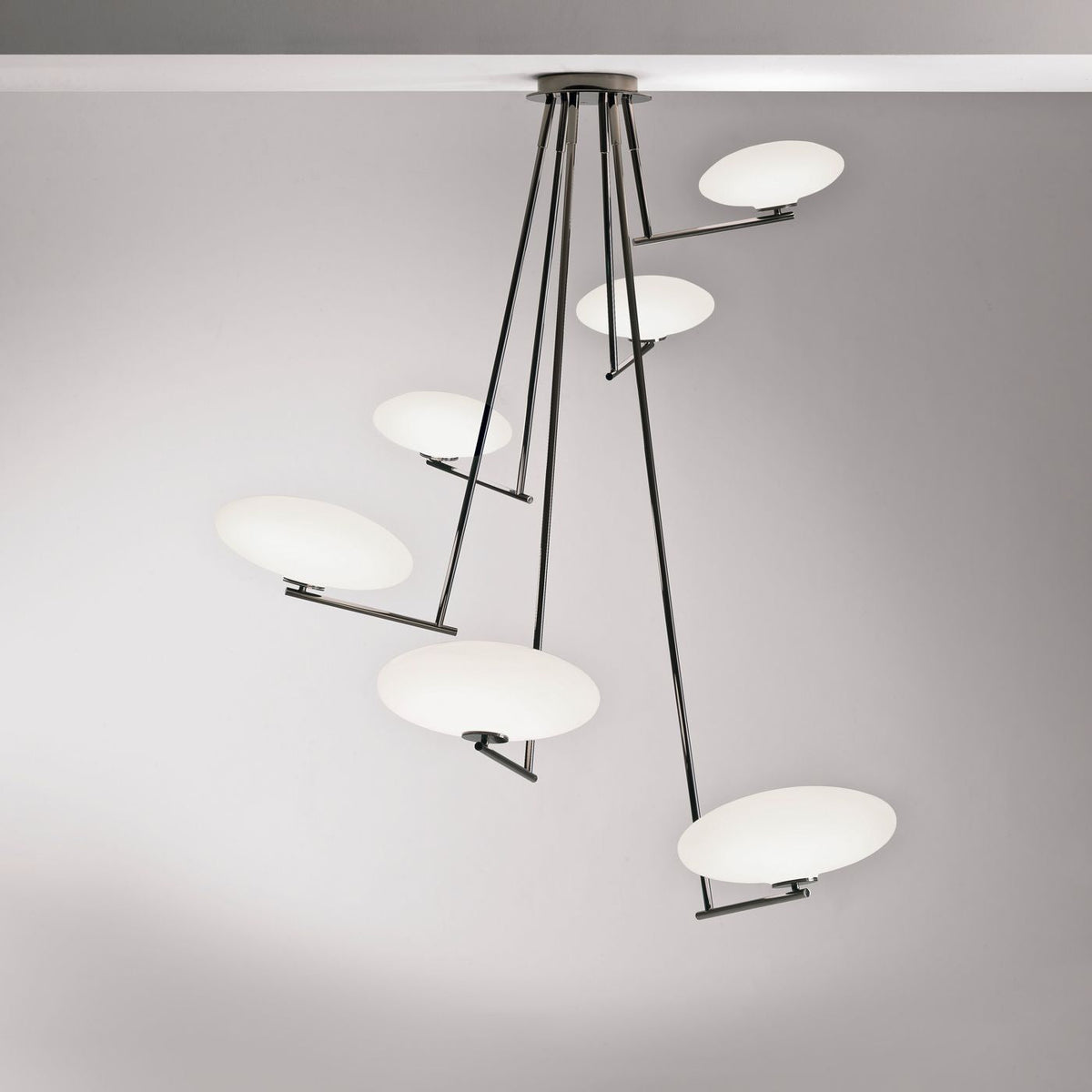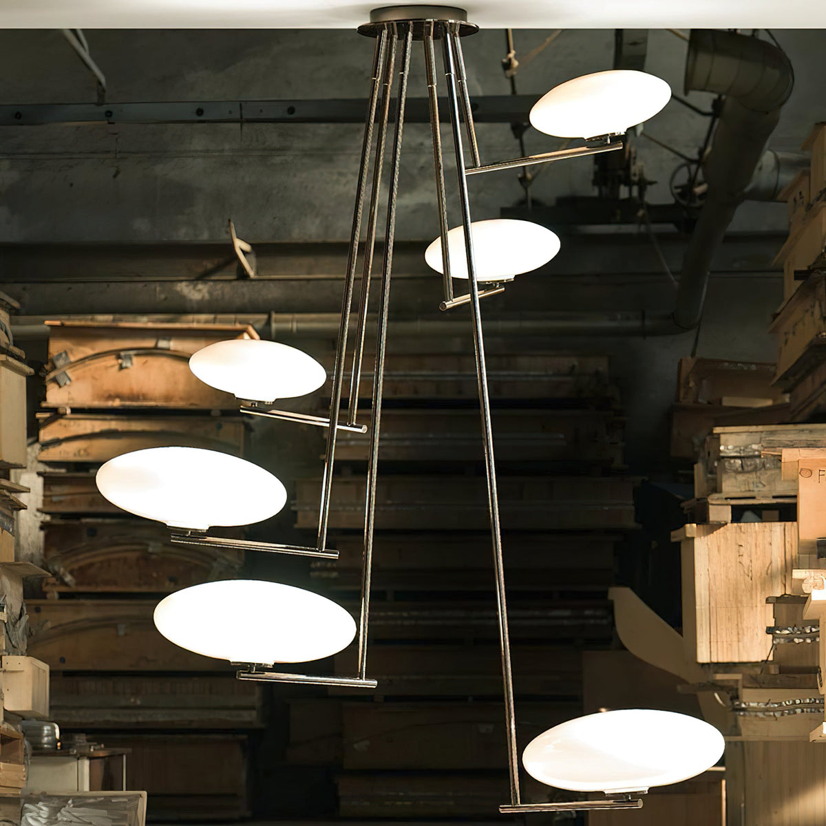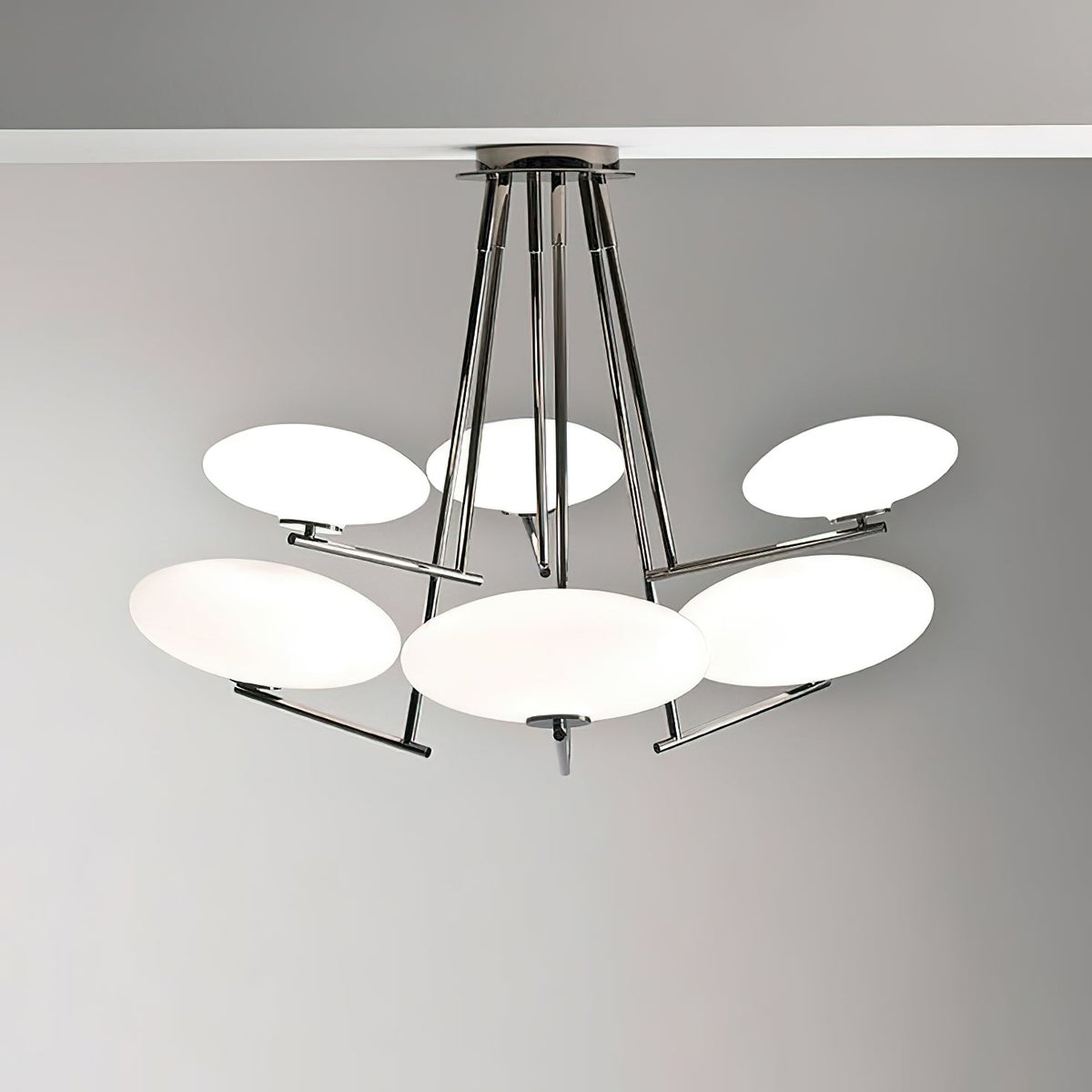 - Blurring the line between functional lighting and sculptural art, the Nanci Ceiling Lamp captivates with its refined simplicity and modernist charm. Its gracefully curved white oval glass body diffuses a soft, inviting glow, while its clean, linear silhouette brings understated sophistication to any space.