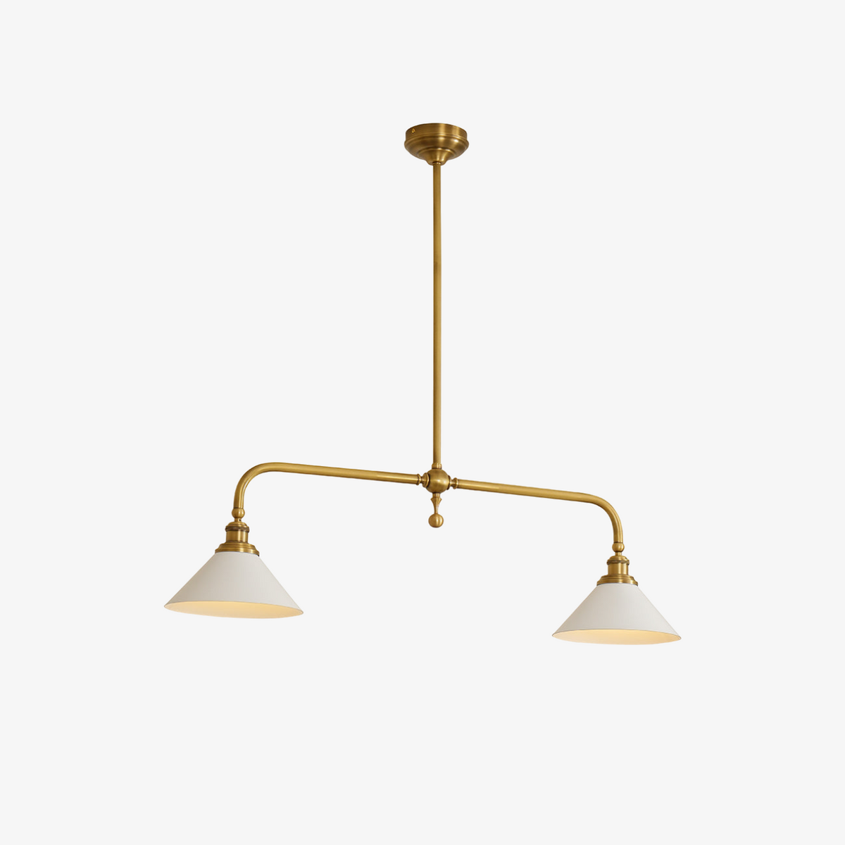 Specifications1. Fixture Type: Pendant Lighting2. Style: Vintage 3. Body Finishes: Brass 4. Shade Finishes: White 5. Main Material: Ceramic (Shade) | Brass (Body) 6. Scenes to be Used: Indoor Only (IP20) 7. Light Source Base: E26 / E27 8. Bulb Included: Yes 9. Number of Bulbs Required: 2 10. Kelvin Range: 3000K 11. Dimmable: No 12. Remote Control: No 13. Voltage: AC 110V-240V 14. Warranty: Two Years 15. Assembly Required: Yes 16. Installation Required: Yes 17. Sloped Ceiling Compatible: No 18. Adjustable Length: Yes 19. Wiring: Hardwired 20. Product Care: Wipe clean with damp cloth |