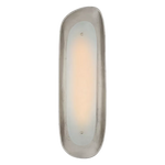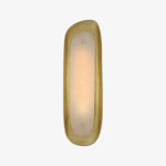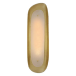 - The Samos Tall Sculpted Sconce's sculptural form introduces an elegant, organic element to contemporary interiors. The design features softly rounded edges on both the metallic base and the seamless alabaster shade, creating a harmonious and fluid silhouette. When illuminated, the alabaster glows warmly, casting a soft, ambient light that enhances the atmosphere of any room.