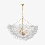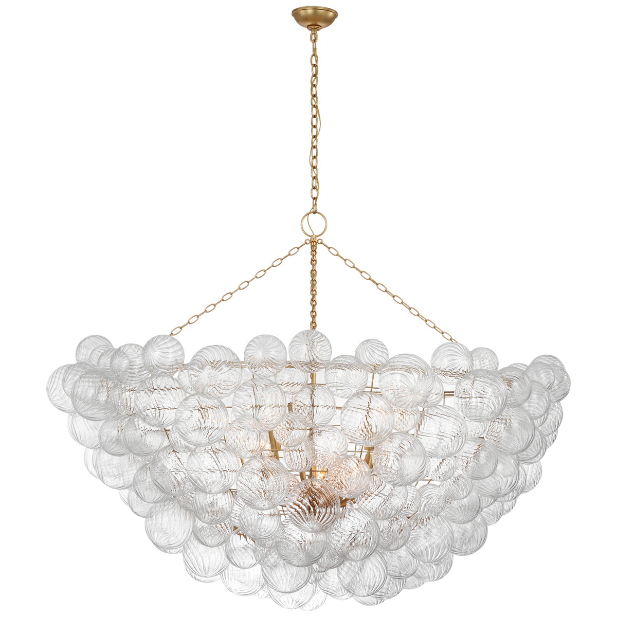 - Elevate your space from ordinary to extraordinary with the Talia 66-Inch Chandelier. This piece reimagines the classic globe light, transforming it into a stunning sculptural statement. Artisanal, swirled glass orbs are nestled within sleek metal baskets, creating a captivating play of light and texture. As the light dances and shimmers through each unique glass sphere, it casts a warm, inviting glow, perfect for setting a sophisticated yet playful mood.