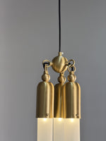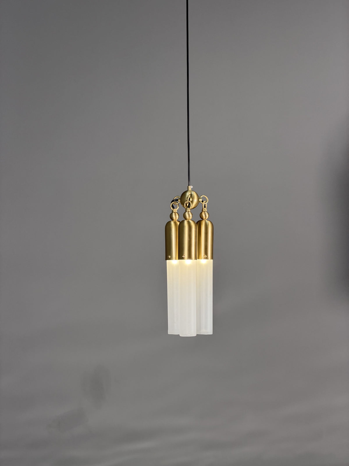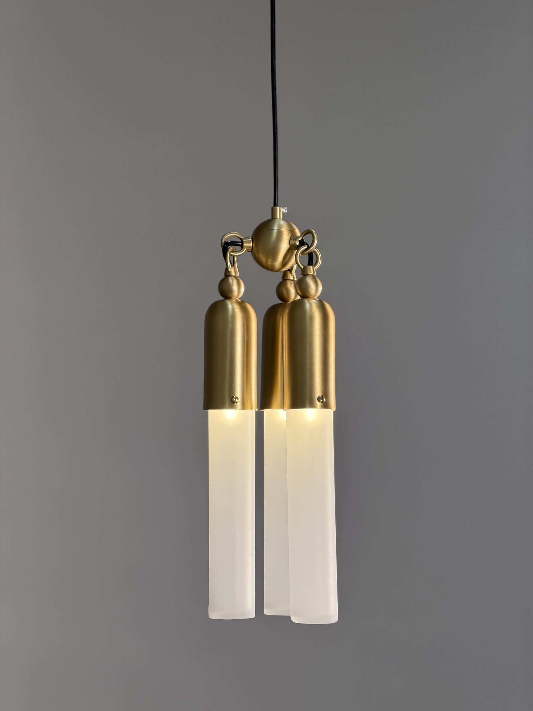 - Elevate your space with the Tassel Pendant Lamp, a stunning lighting fixture that blends artistic design with premium materials. Crafted from copper aluminum, its sleek structure features spherical and beaded accents, along with three elegant columns topped with acrylic shades for a layered, sophisticated look.