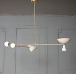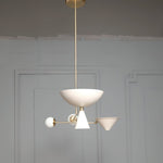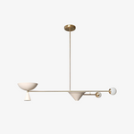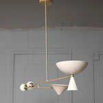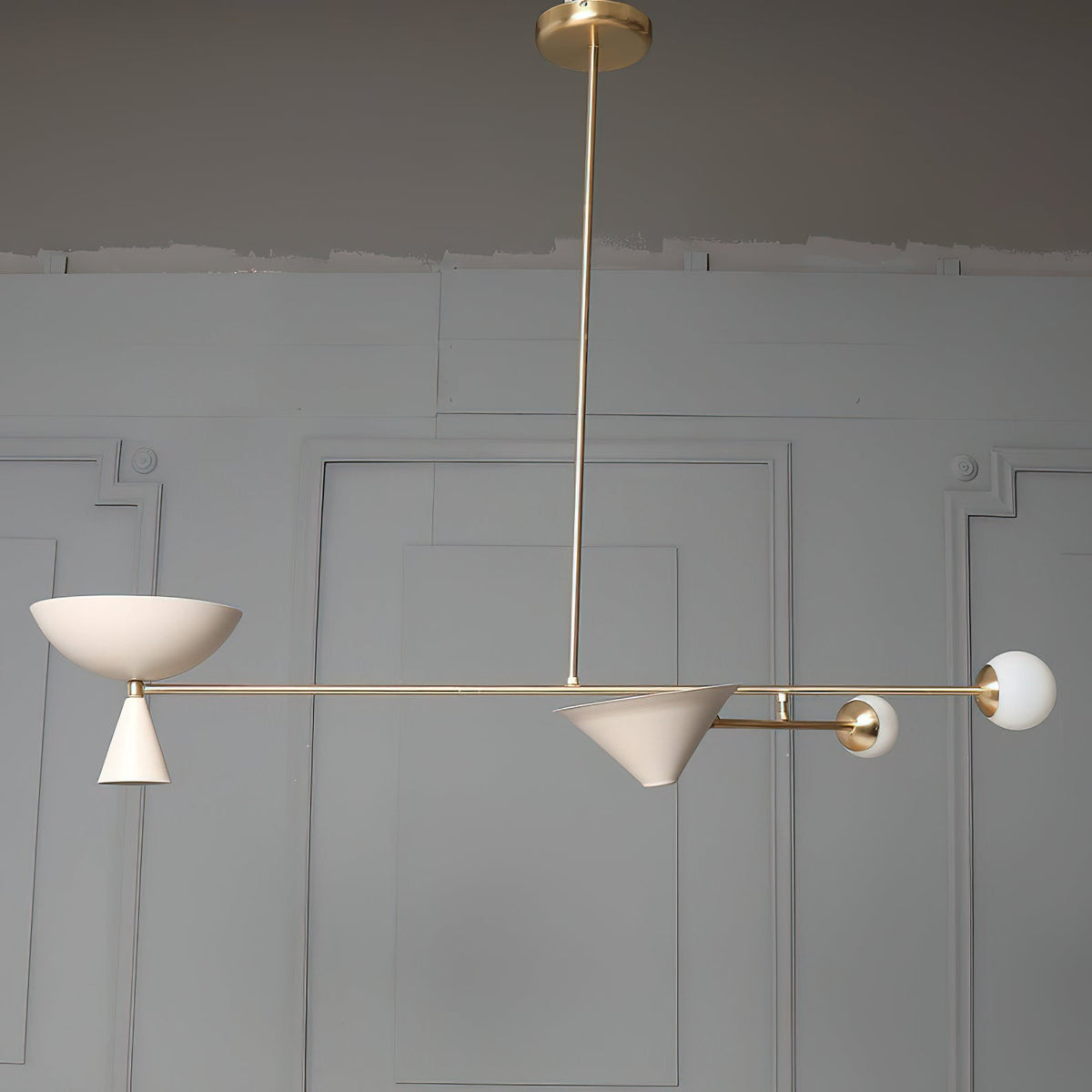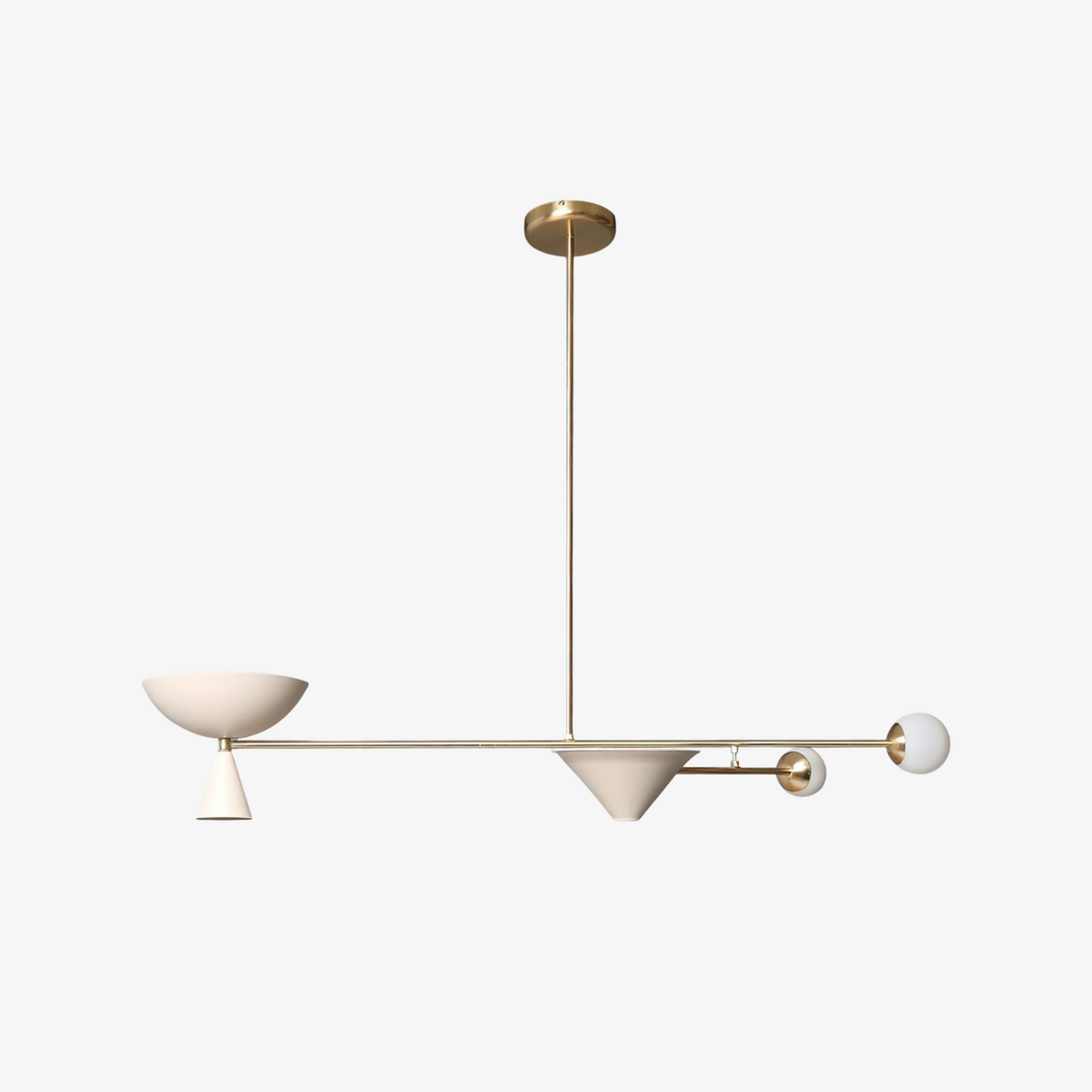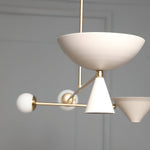 - Elevate your space with the Belva Chandelier, a stunning fusion of artistic design and functional lighting. Combining geometric forms with clean, sleek lines, this chandelier features a captivating mix of spherical, conical, and bowl-shaped elements, creating a modern and sophisticated aesthetic.