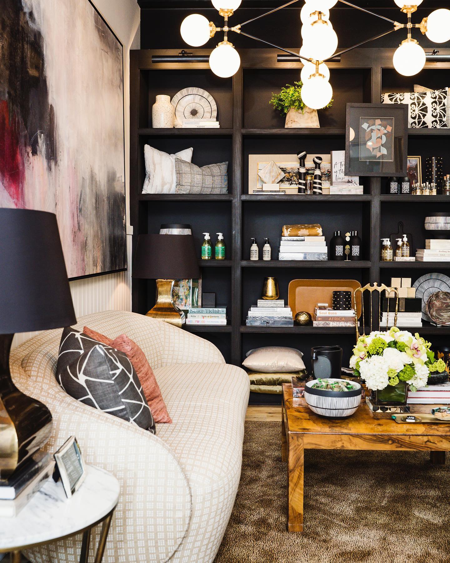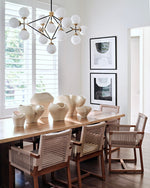 - Crafted with precision, its slender metal arms curve into elegant, graceful shapes, creating a chic and airy silhouette that feels both light and substantial. Each arm is crowned with a refined glass globe, designed to diffuse a soft, inviting light that enhances any atmosphere.