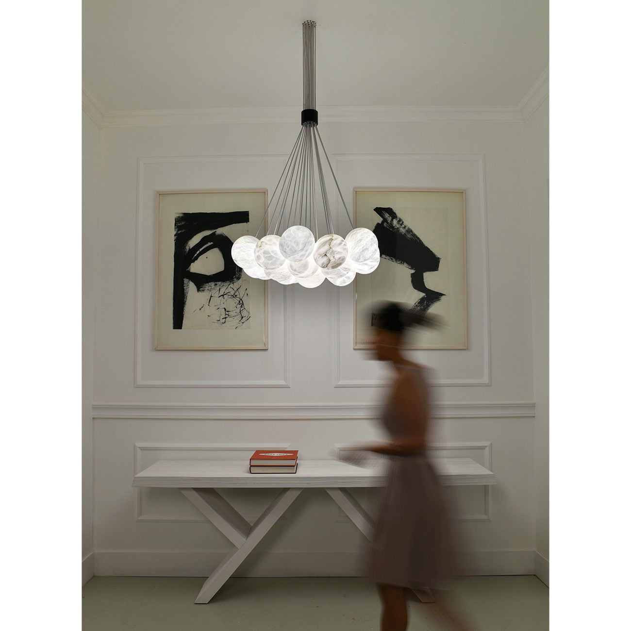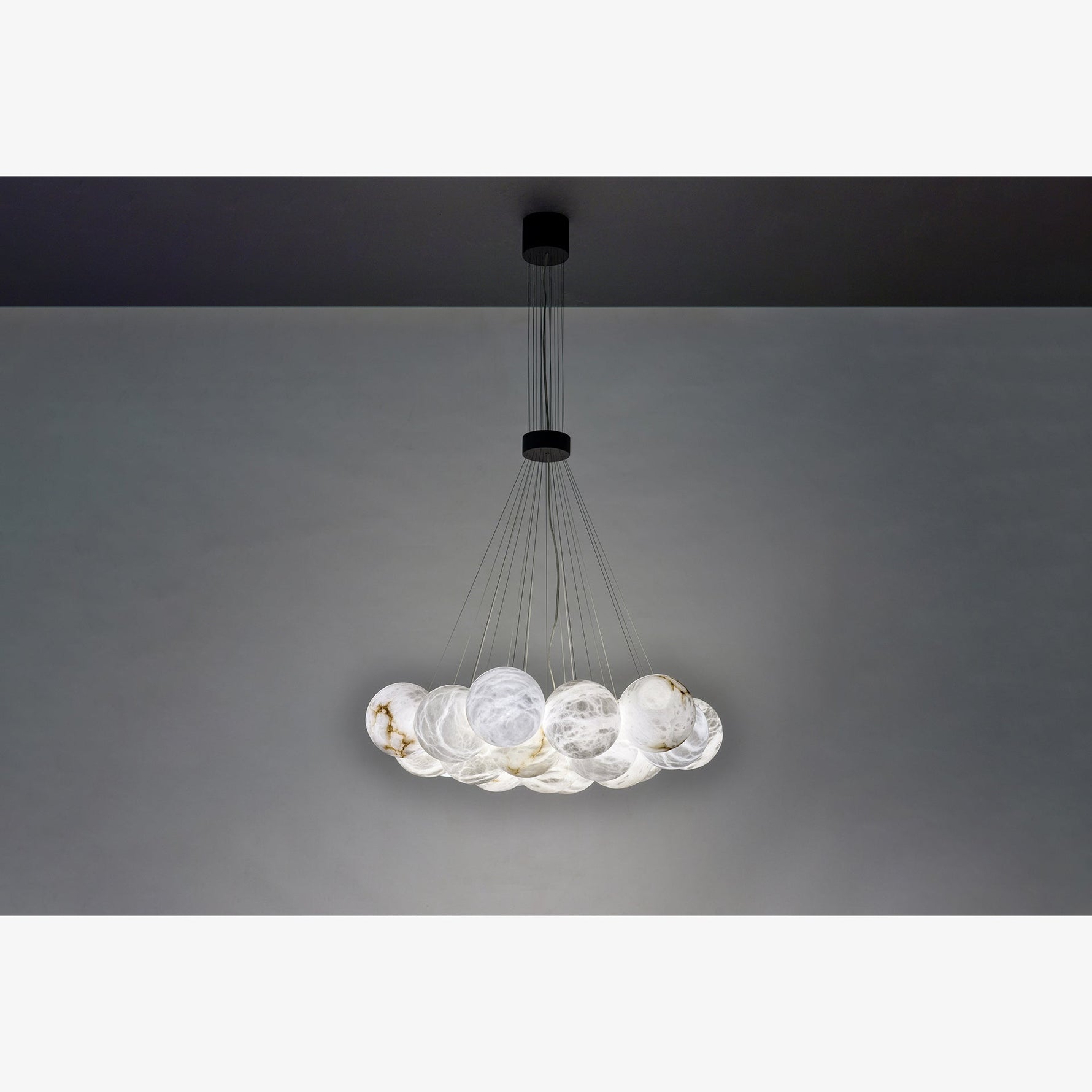 - The Bolky Up Chandelier is a striking display of sculptural form. Strong, satisfied bunches of spheres can be grouped into clusters of seven, thirteen or nineteen, creating a bold and dynamic presence in any space. Unlike its twin, the Bolky, the Bolky Up offers the flexibility of adjustable height, allowing you to customize the perfect fit for your ceiling and desired ambiance.