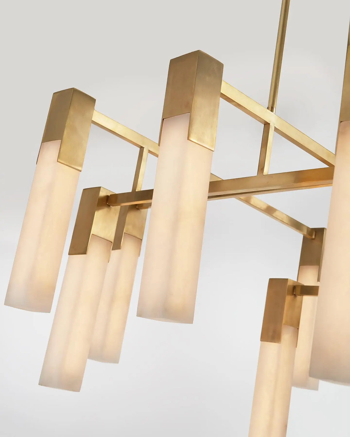 - The Covet Alabaster Chandelier is a stunning centerpiece that celebrates the timeless beauty of nature, designed to transform your space with its serene and organic elegance. This piece is part of the acclaimed Covet series, dedicated to honoring the unique character of natural alabaster.
