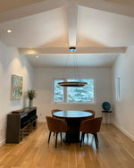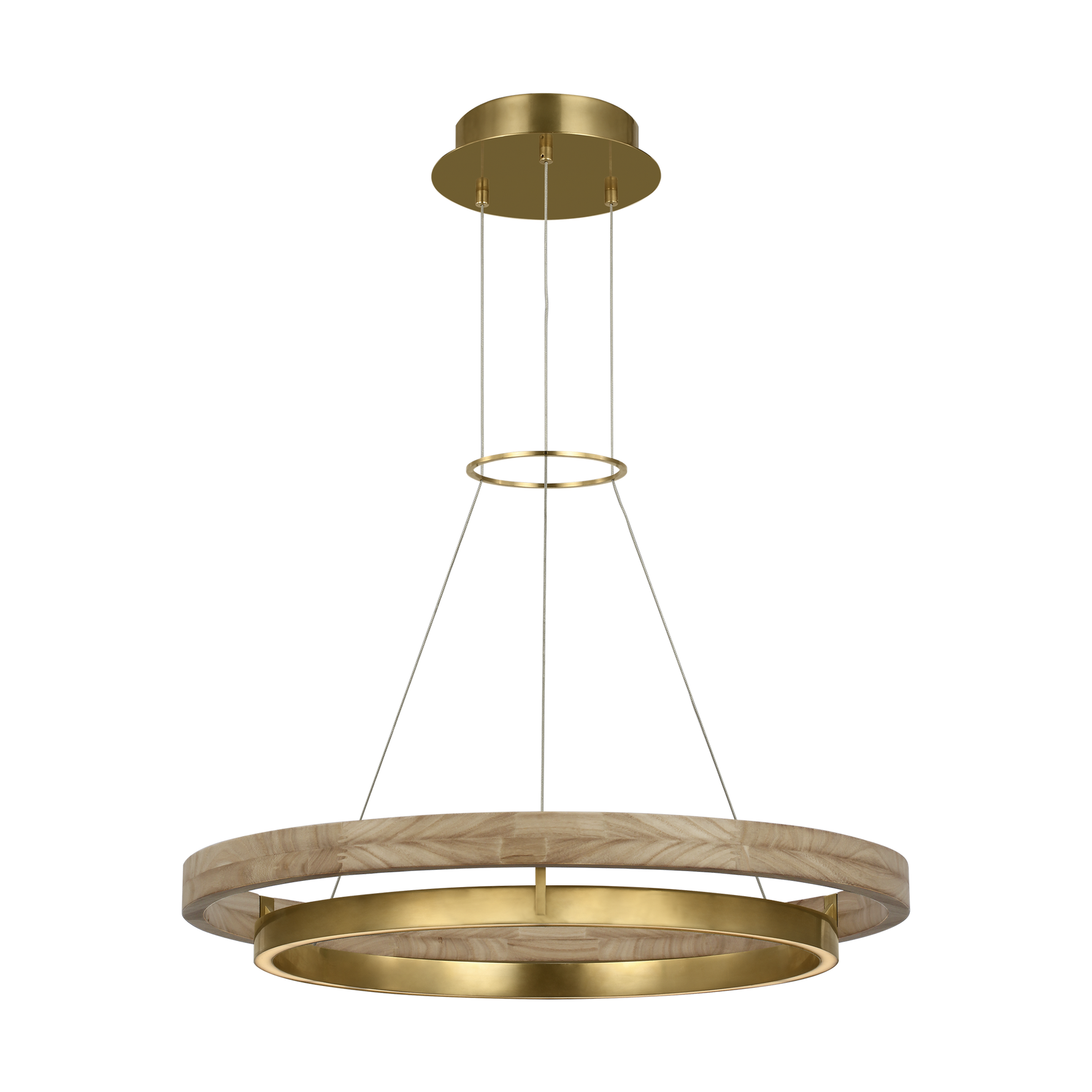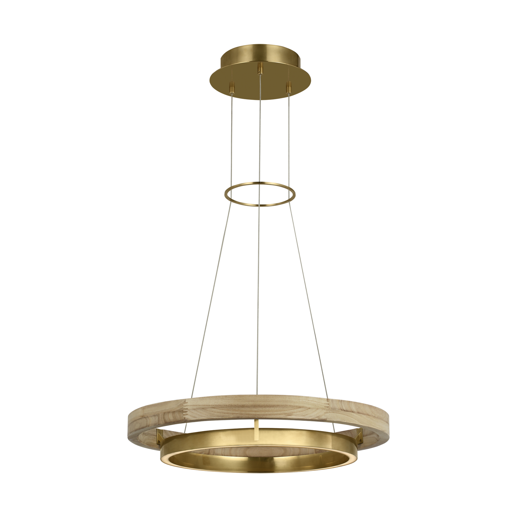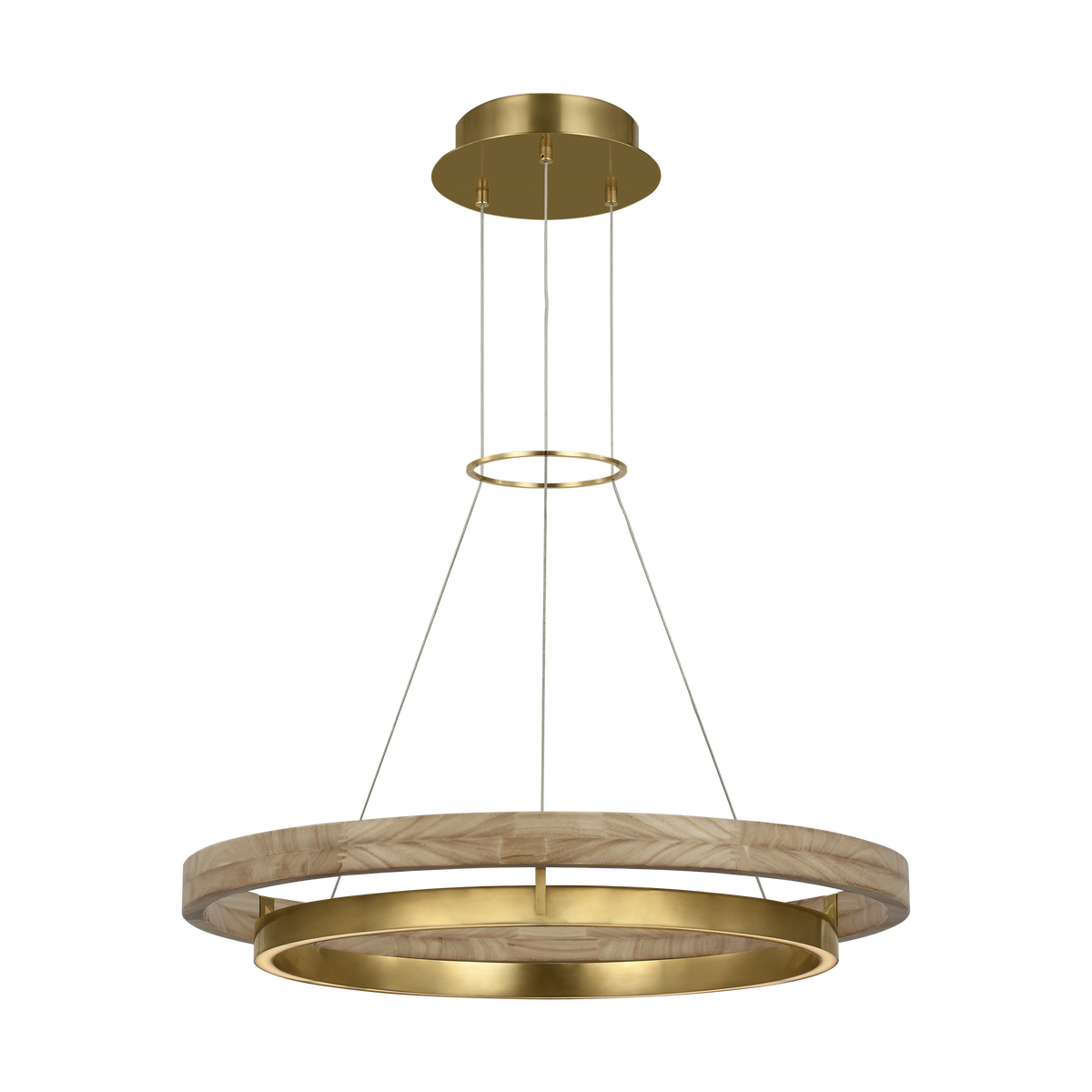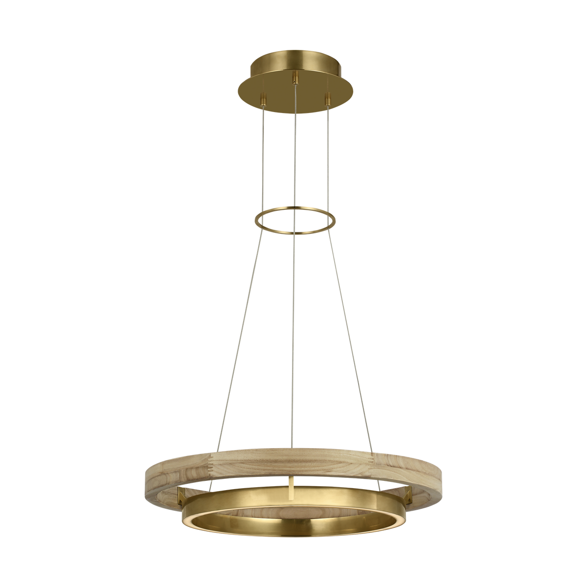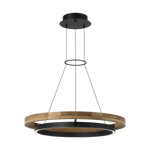 Illuminate your space with the gracefully modern Grace Chandelier. Its striking design features two distinct rings: a large, textured natural oak outer ring and a sleek inner ring. Integrated upward and downward LEDs are discreetly housed within the inner ring, casting a soft, diffused ambient glow. This fixture creates a stunning halo effect, perfect for adding a touch of contemporary elegance to your dining room, entryway, or living area.