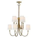 - The Harderman Chandelier is a sophisticated lighting fixture that effortlessly blends form and function. Crafted with a sleek metal frame featuring gracefully curved arms, this chandelier offers a minimalist aesthetic with a touch of personality. A distinctive decorative emblem adorns the frame, adding a touch of luxury near the soft, diffused glow of the linen shades.